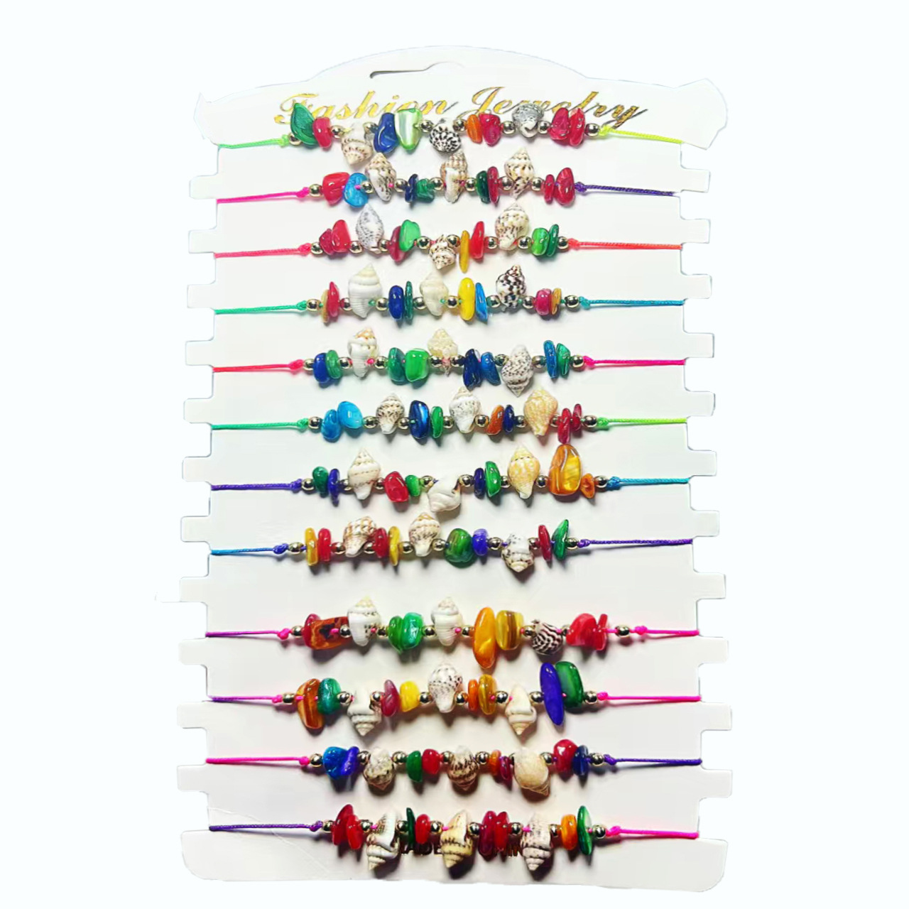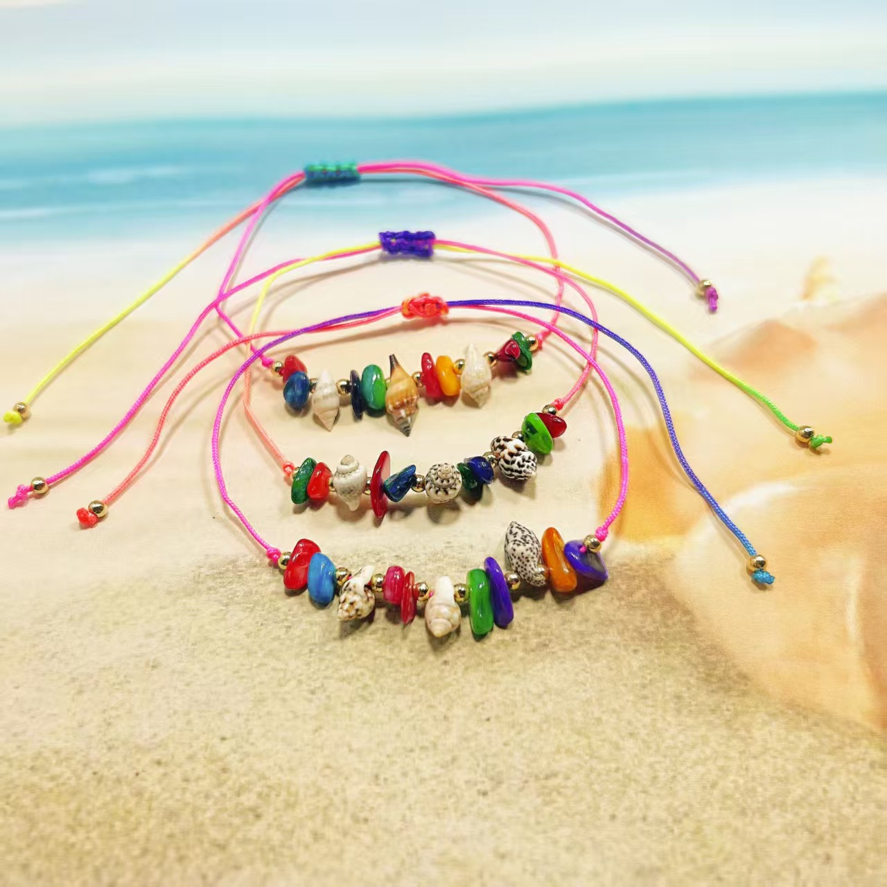 Cross-Border New Summer Beach Vacation Conch Irregular Colorful Shell Braided Bracelet Hawaiian Vacation Bracelet