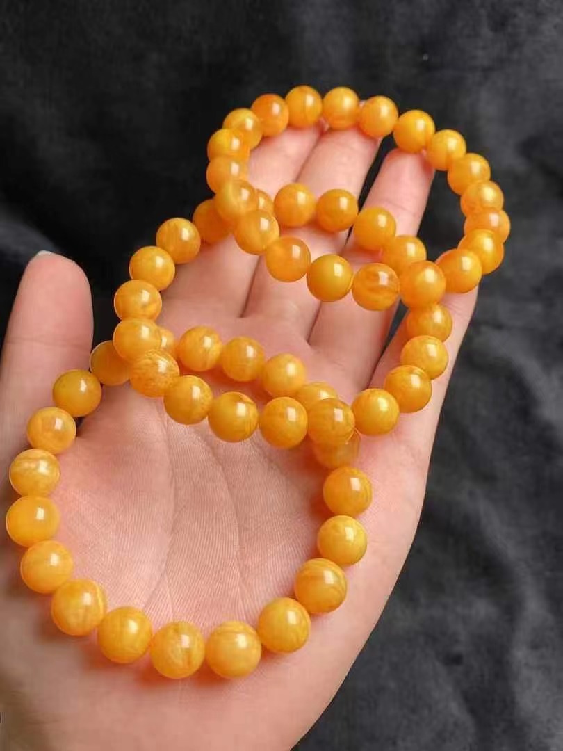 Factory Wholesale Natural Beeswax Reflux Presbyopic Wax Ring Bracelet 9mm Clear Texture Fashionable Versatile Hand Jewelry
