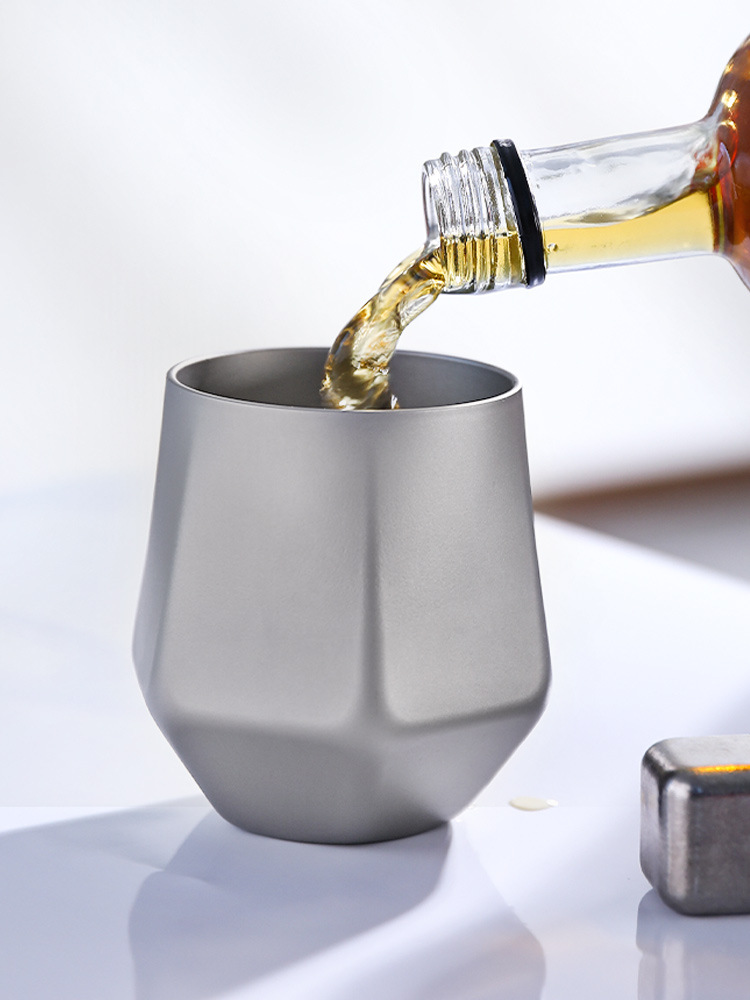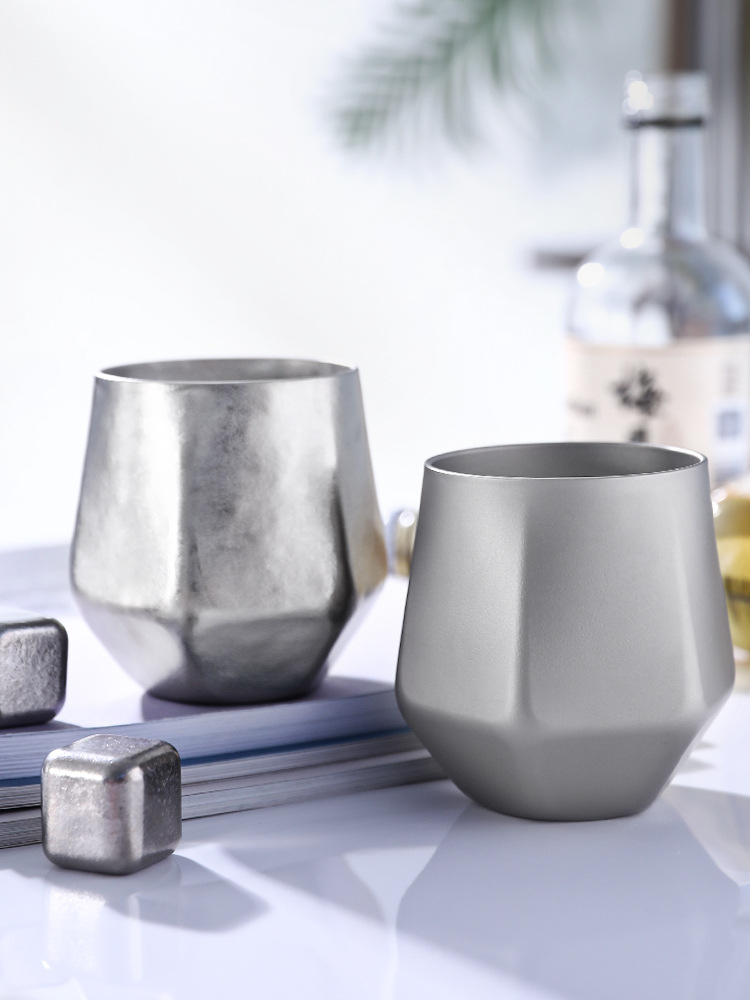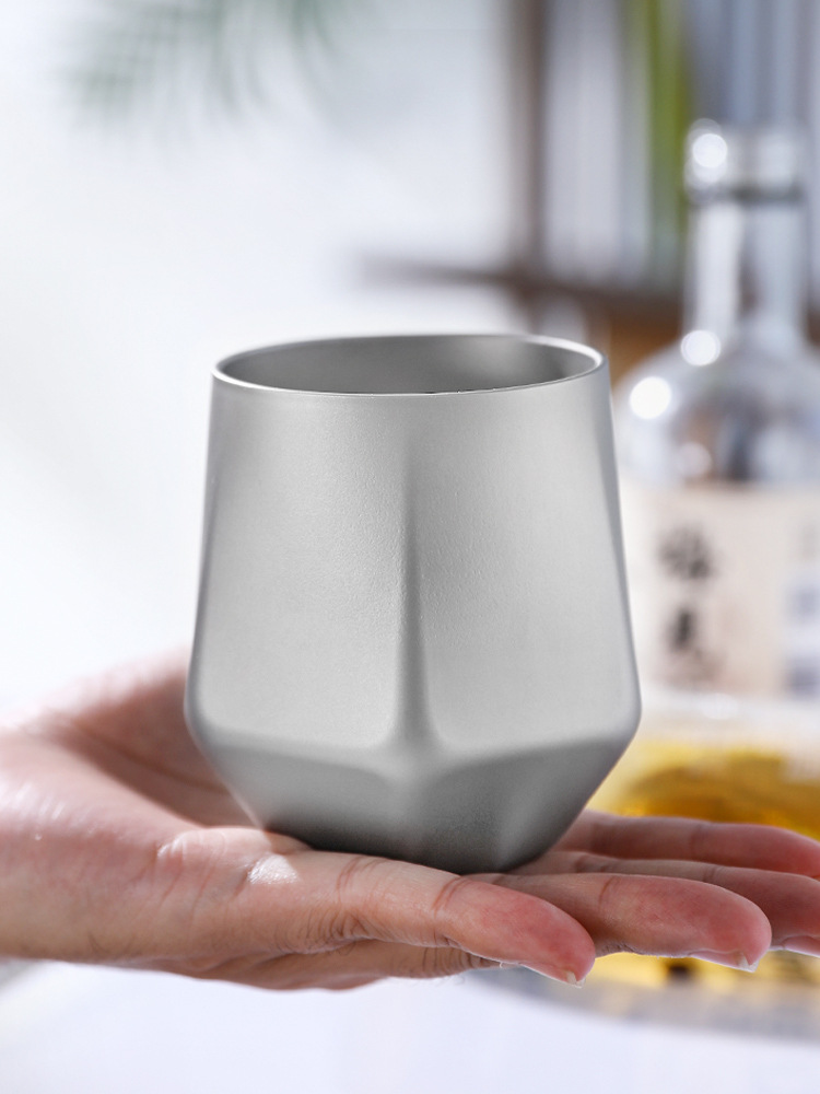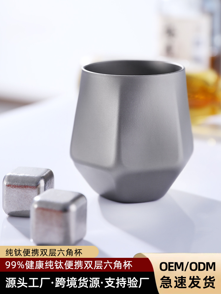 Pure Titanium Double-Layer Diamond Ice Flower Water Cup Outdoor Camping Style Anti-Scalding Coffee Cup Household Kung Fu Tea Cup Master Cup