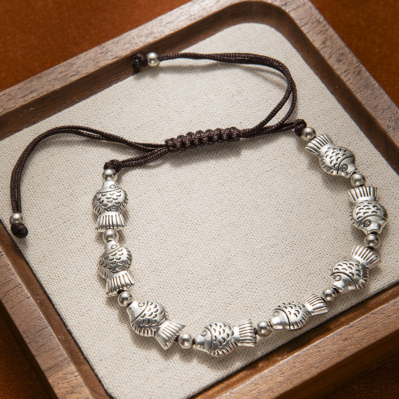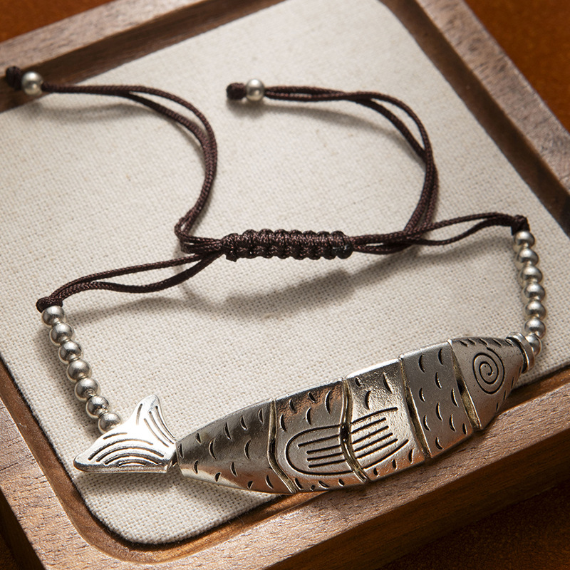 云南民族风年年有余藏式可调手链小鱼大象手串新中式手工编织手绳饰品批发货源