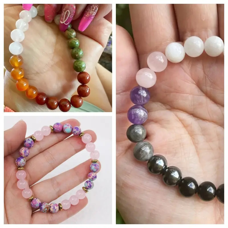TEMU HISYIN TK Cross-border Explosions 8MM Emperor Stone Powder Crystal Tiger Eye Green Peacock Bracelet Men's and Women's Fashion