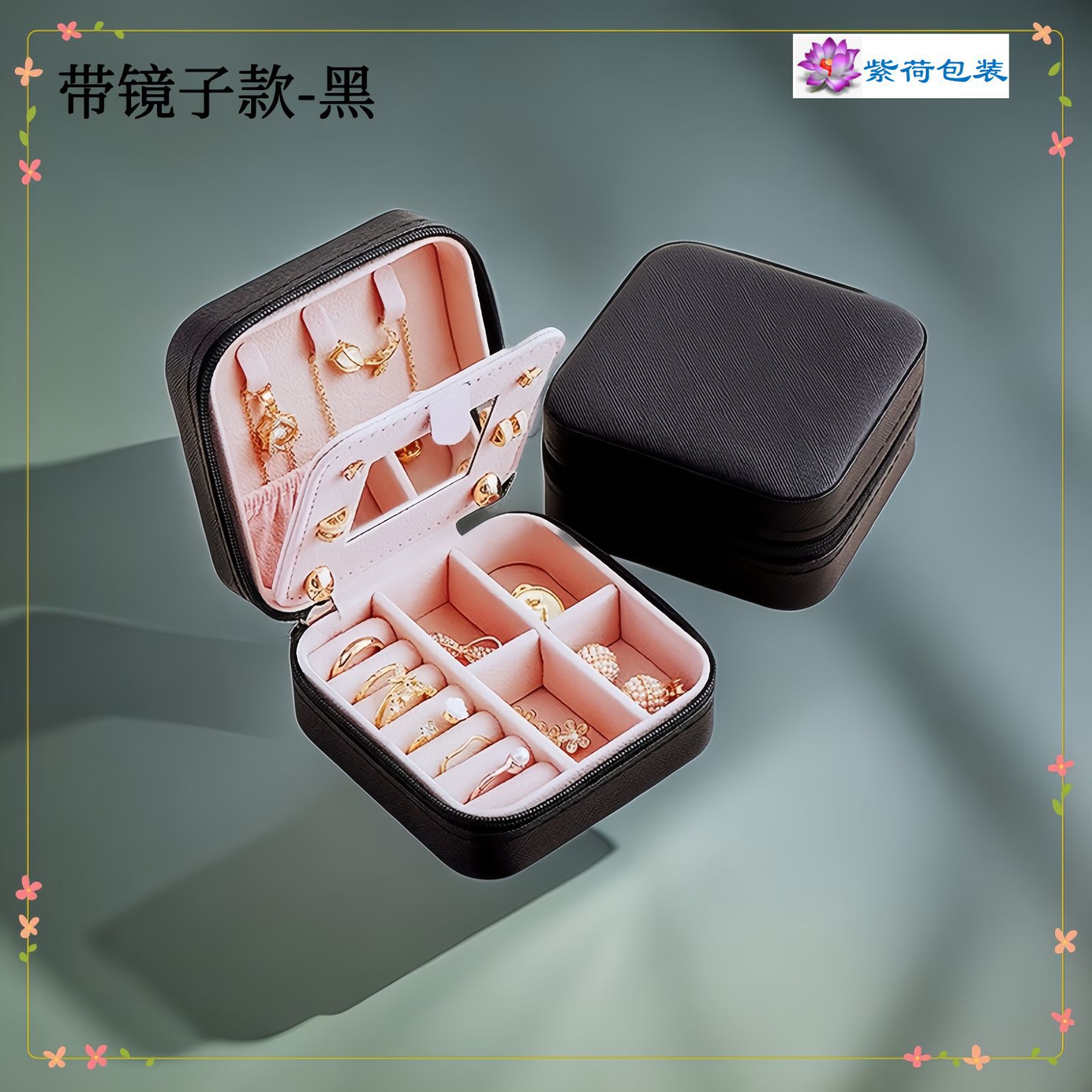 Specifications and models: Black-square jewelry box with mirror;10*10*5