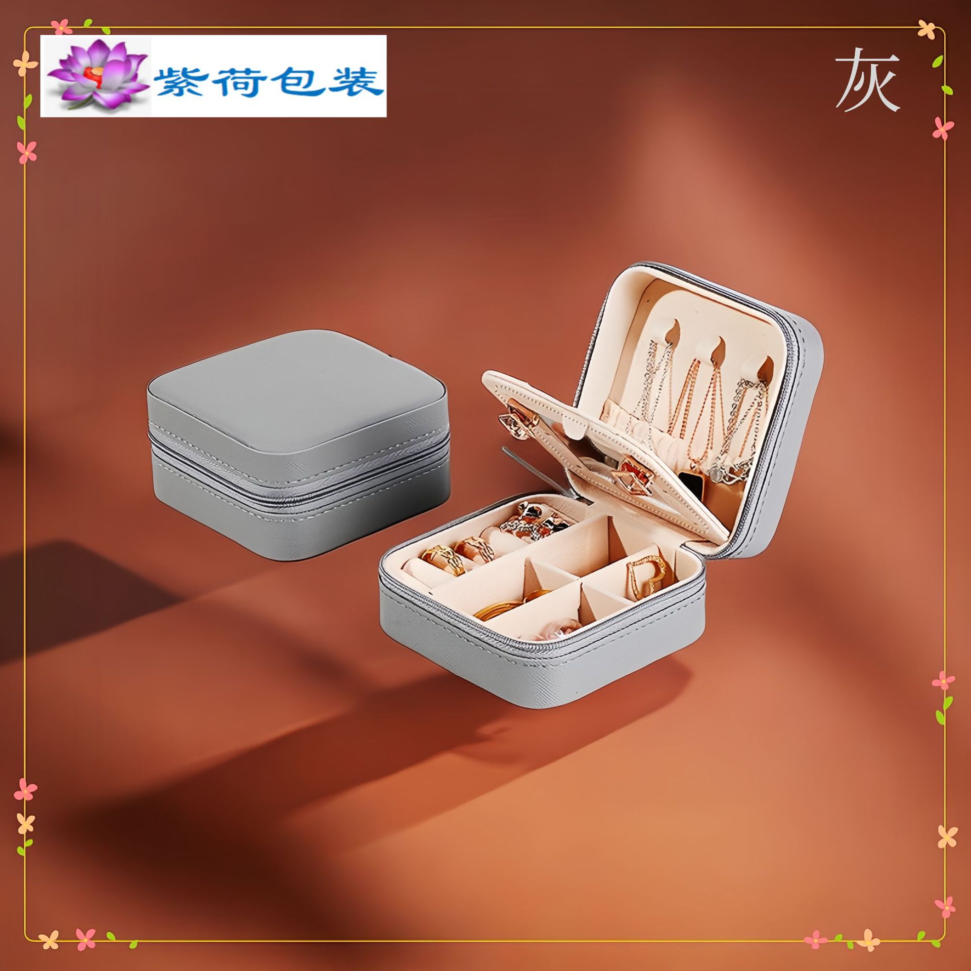 Specifications and models: Gray-square jewelry box with mirror;10*10*5