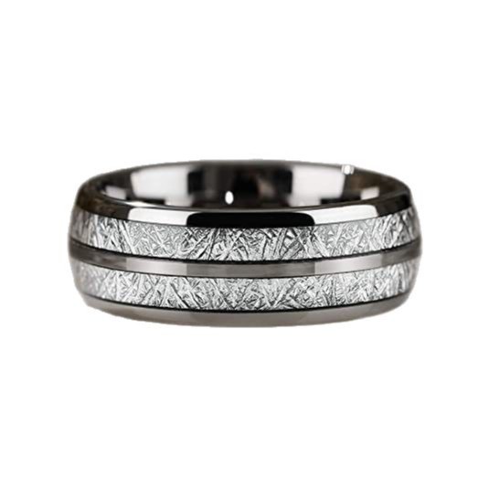 Double groove silver wire stainless steel ring