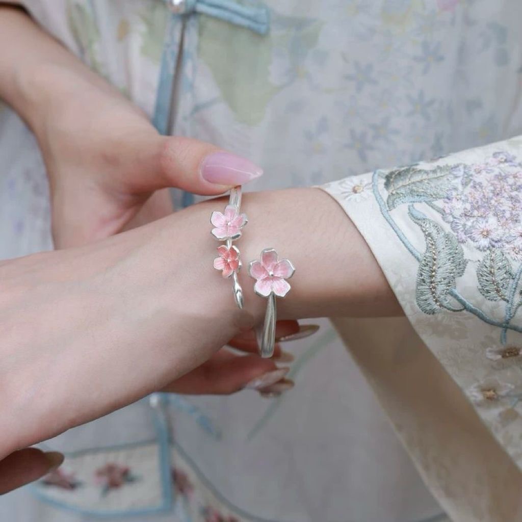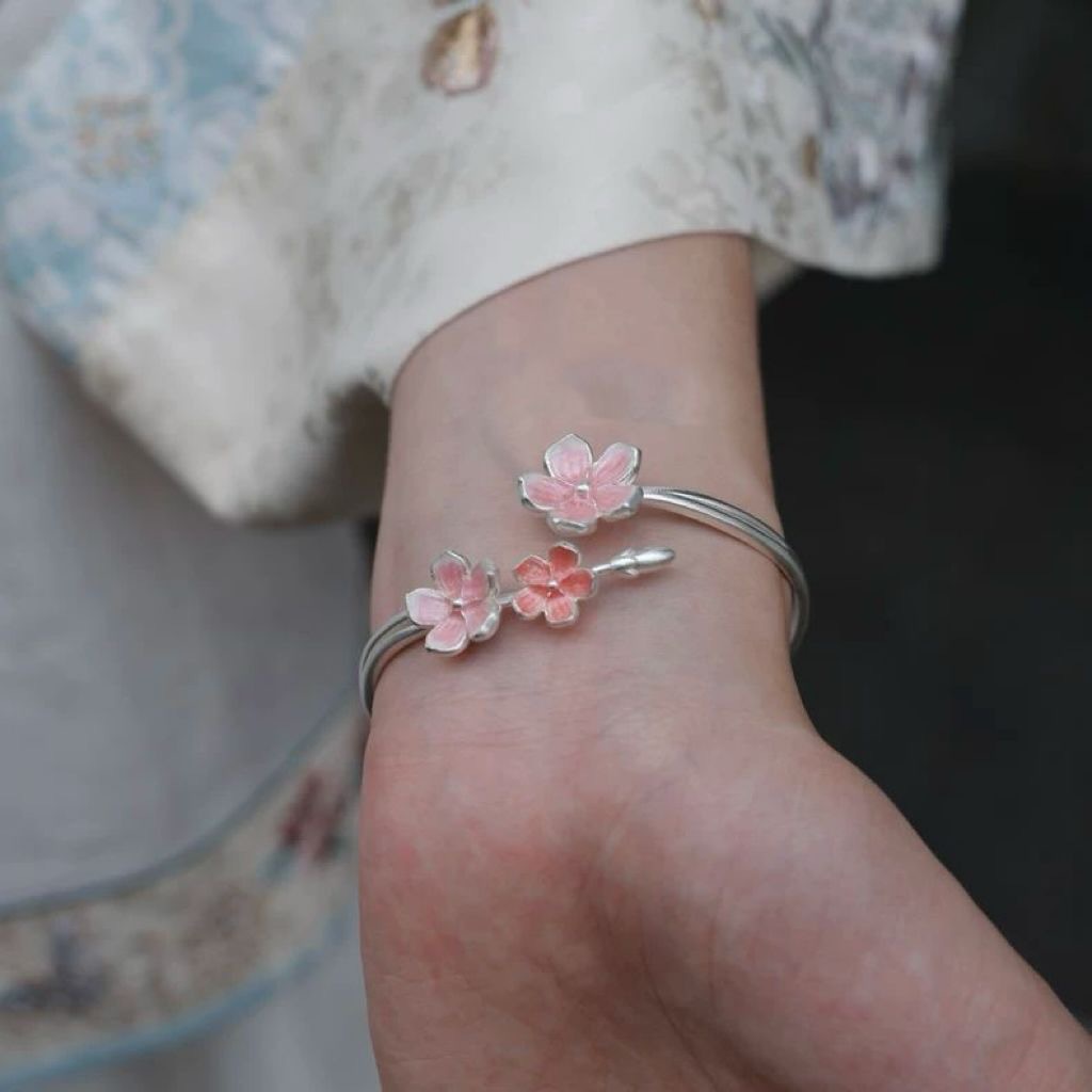 Spotted Pink Peach Blossom Bracelet Women's 2025 New Chinese Ancient Style Enamel Bracelet for Girlfriend's Birthday Gift