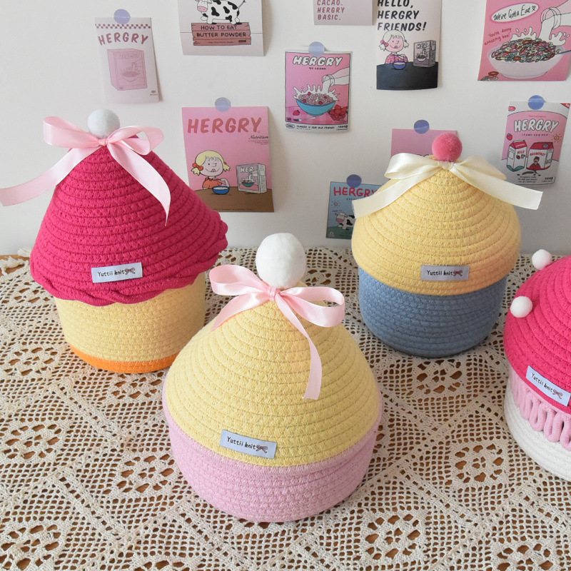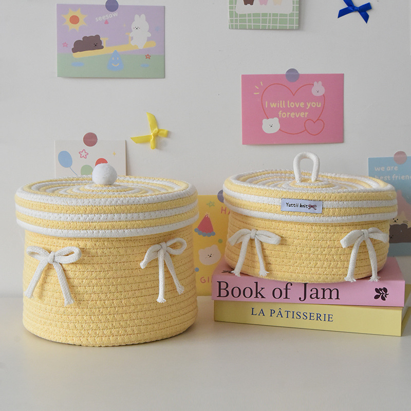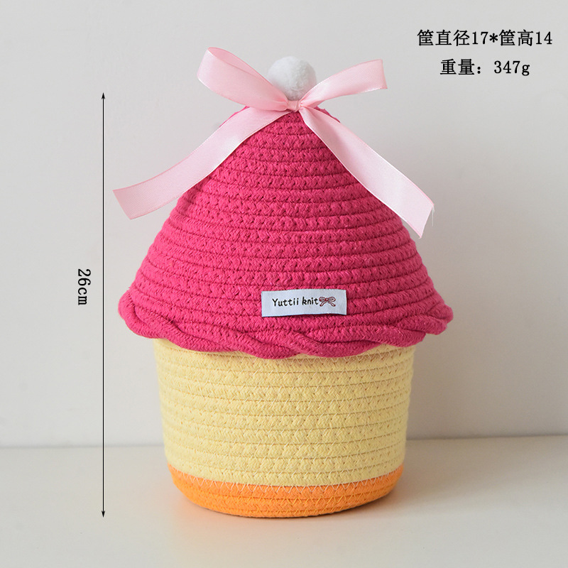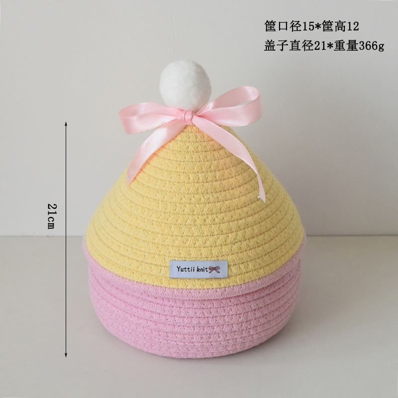 Color: Yellow and rose red lid cottage + bow, height 26cm