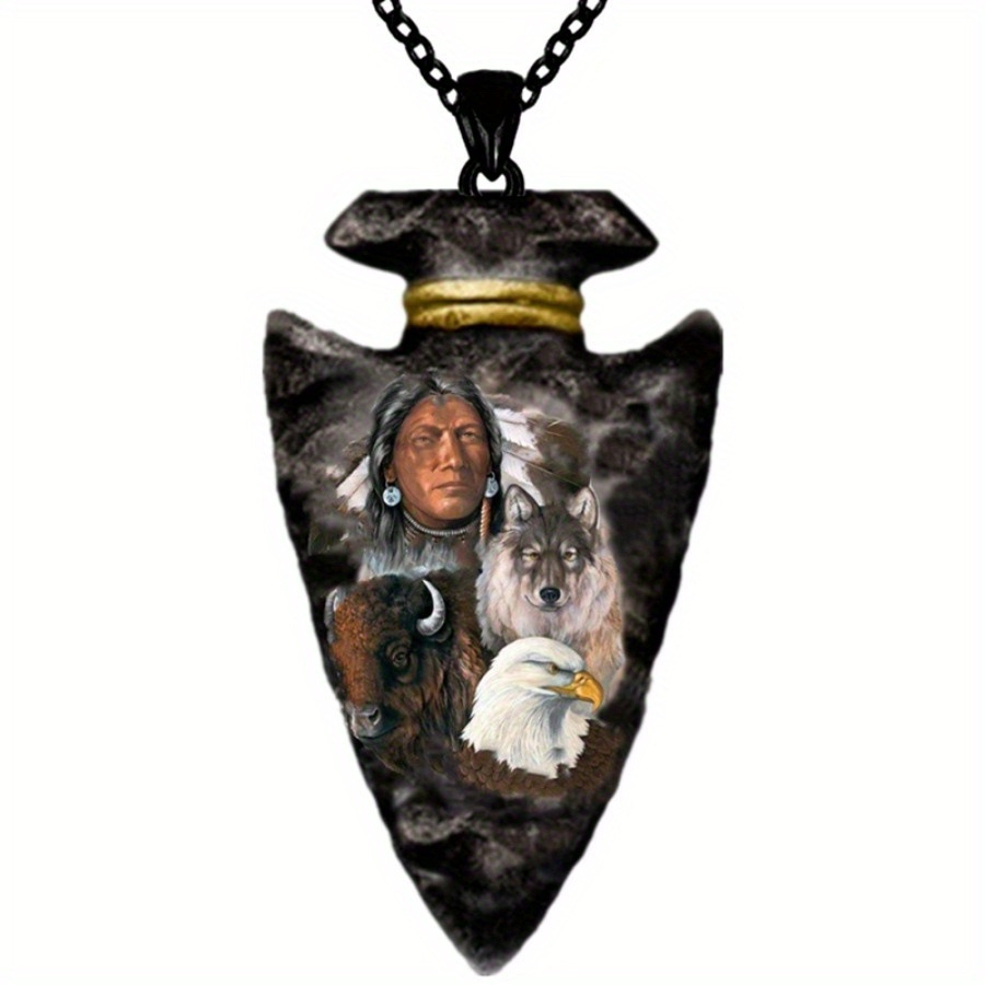 Cross-border temu explosive jewelry tribal totem animal family party black chain arrow pendant punk men's necklace