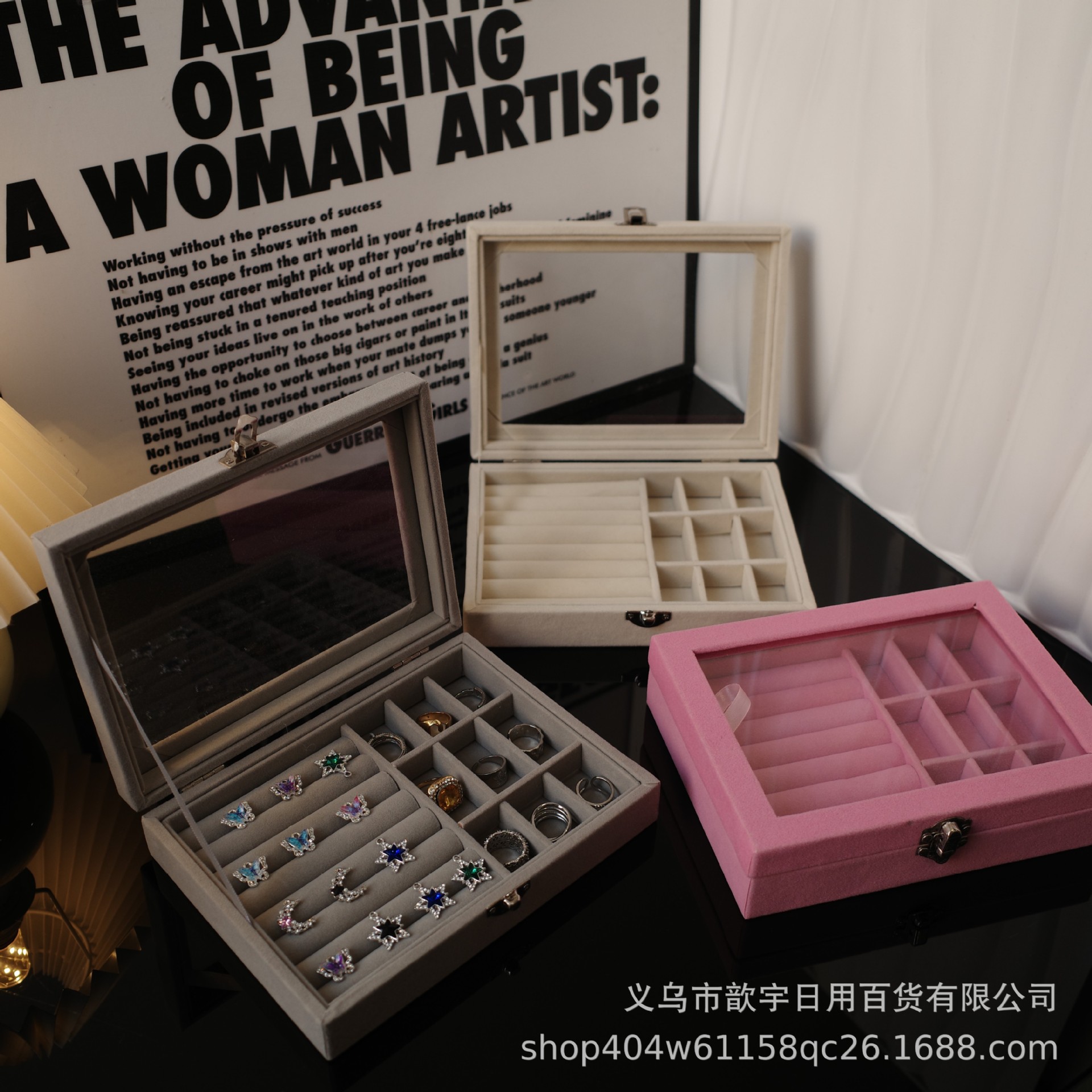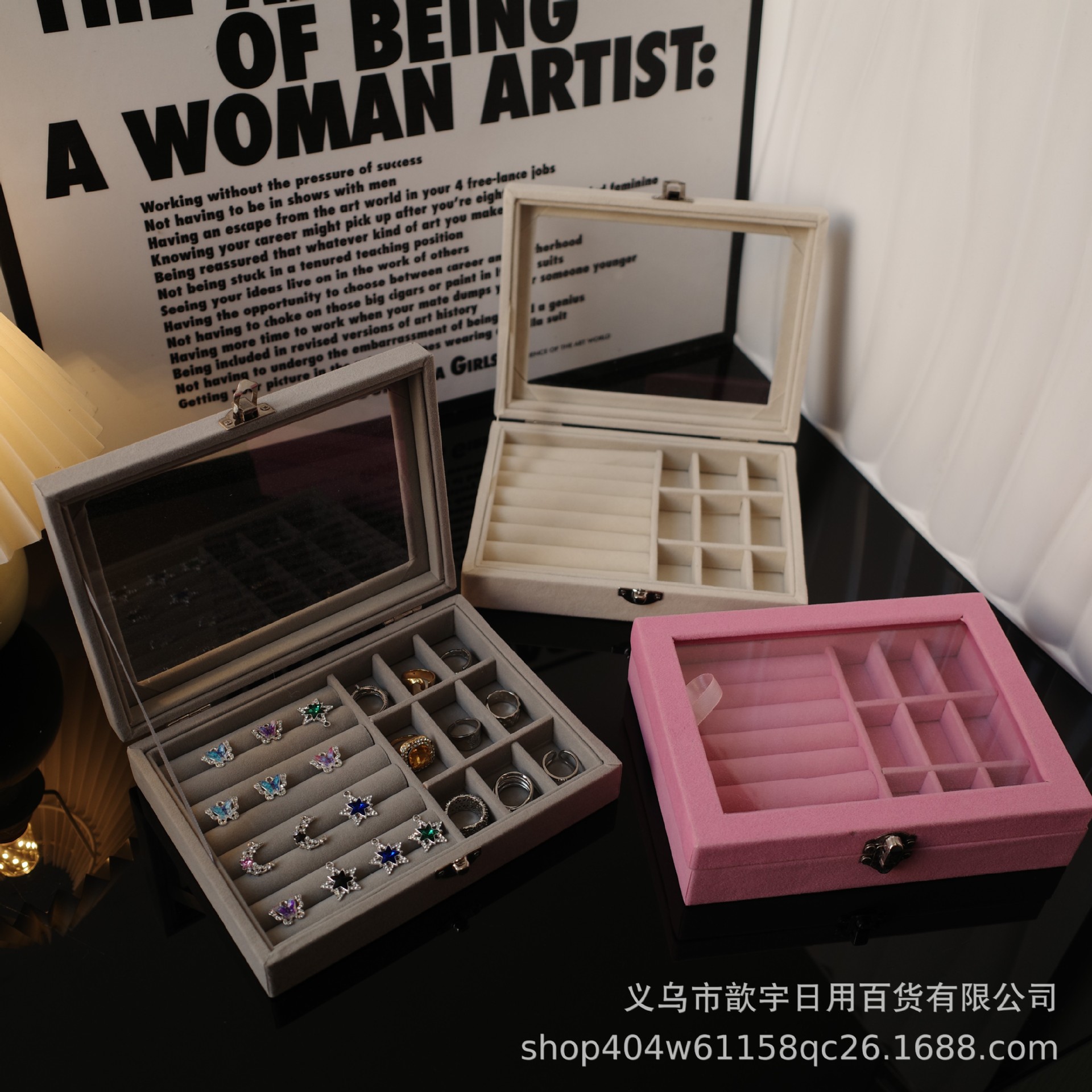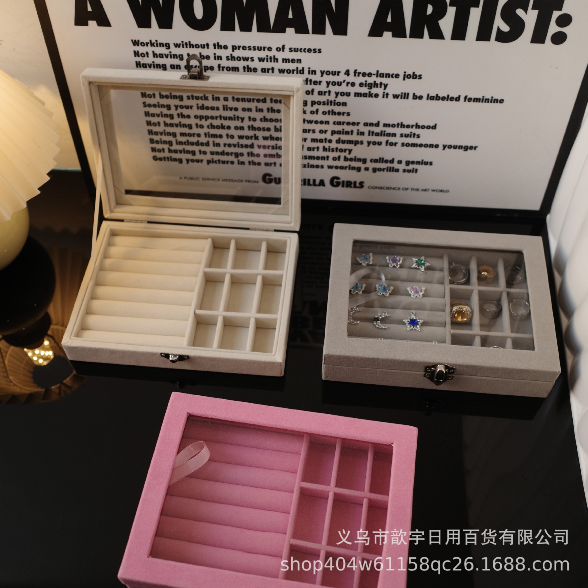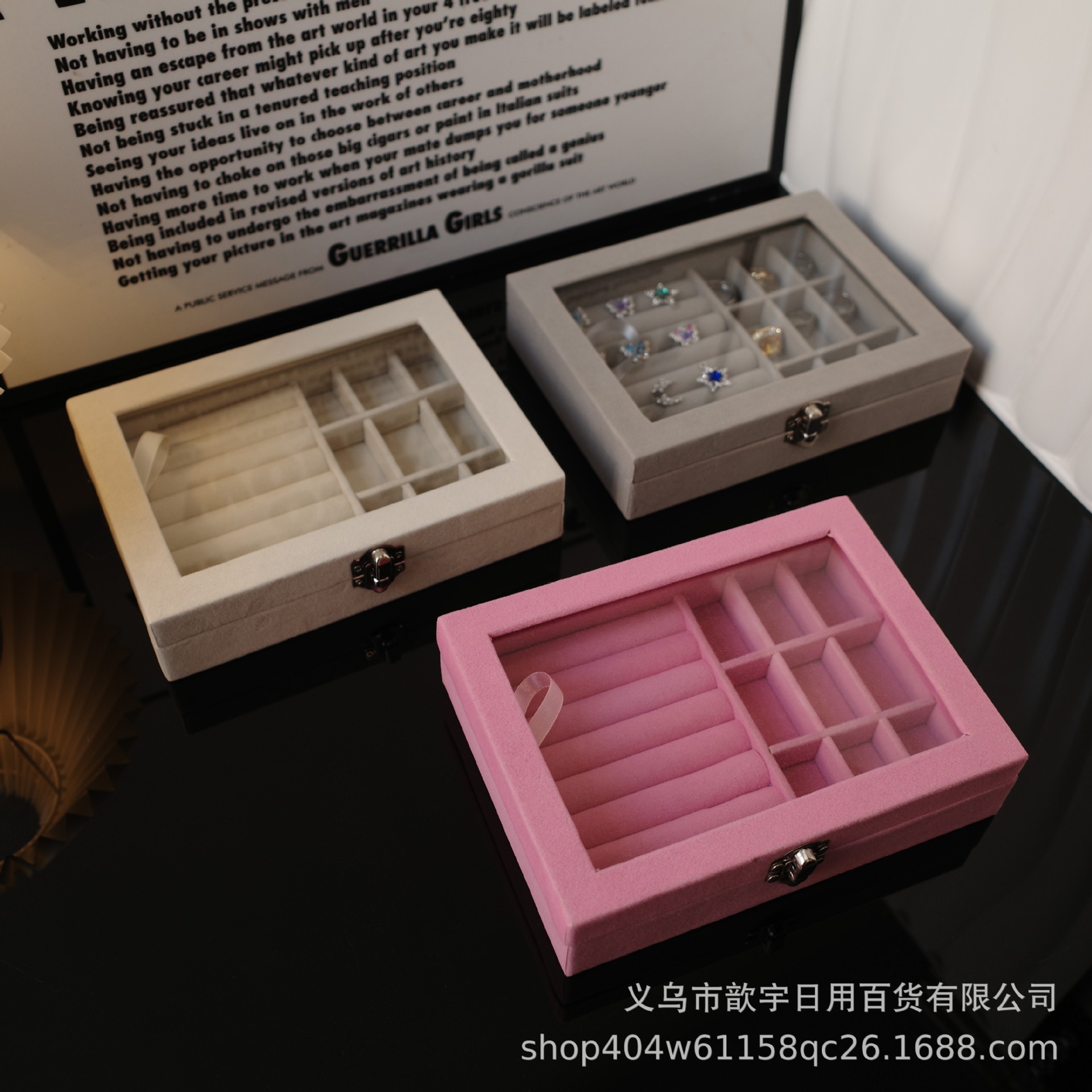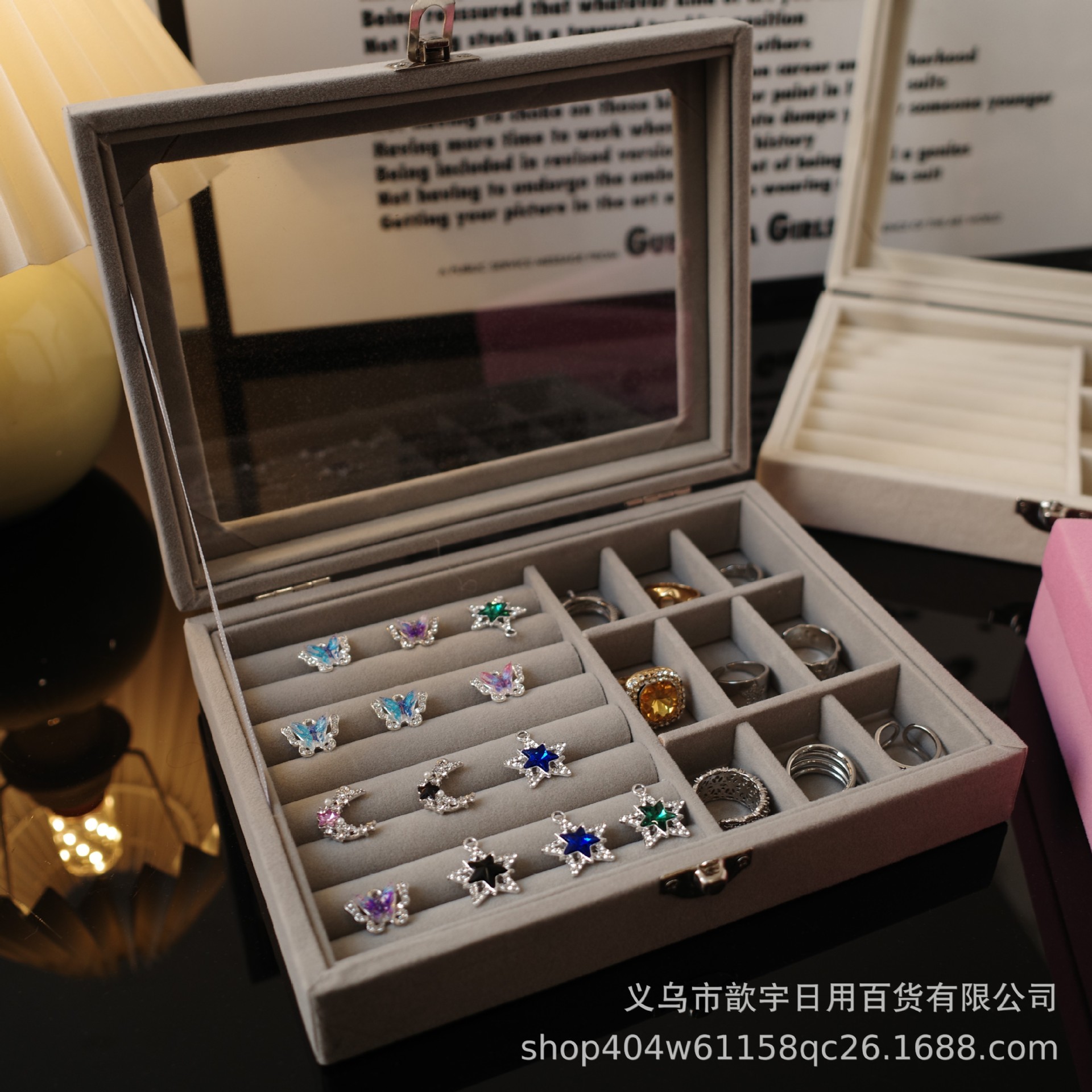 Exquisite jewelry box jewelry dustproof earrings earrings earrings necklace ring watch velvet convenient storage box new