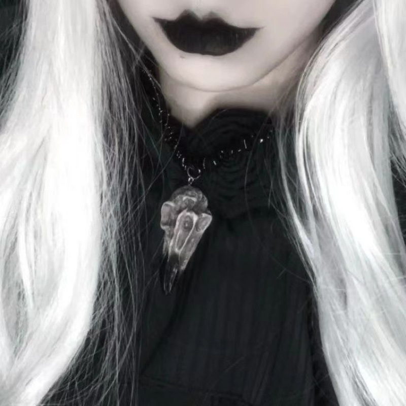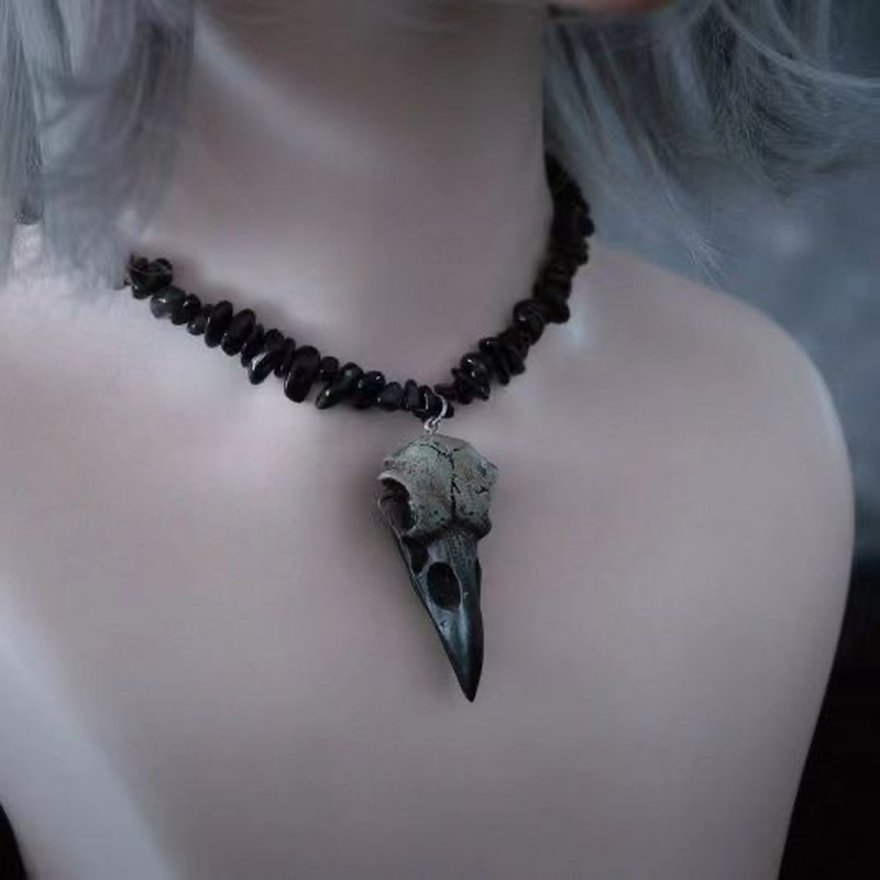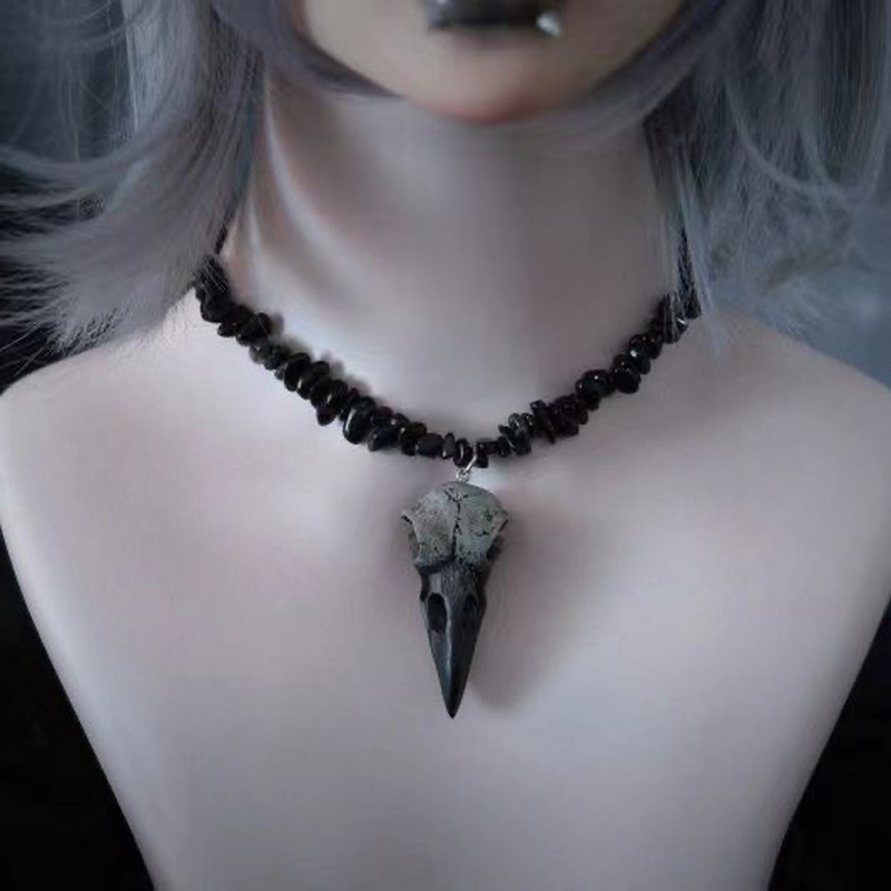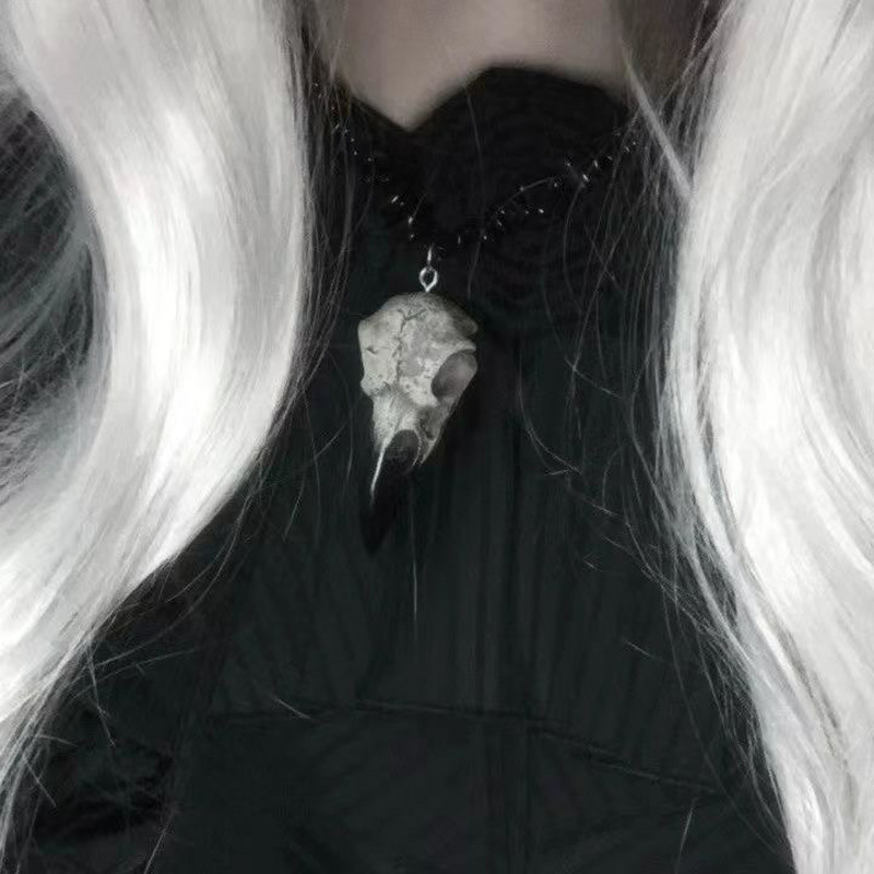 European and American Style Halloween Decoration Handmade Bird Bone Pendant Beaded Clavicle Chain Necklace Dark Subculture Black Necklace