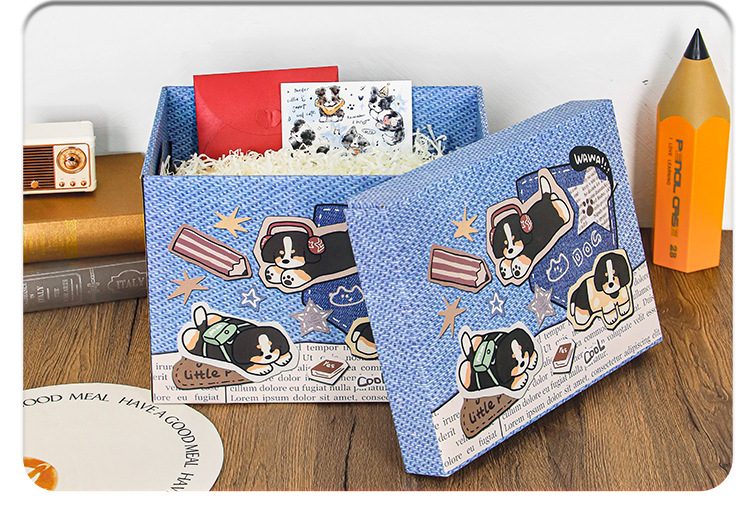 Color: Small size denim bern mountain storage box + raffia + envelope card