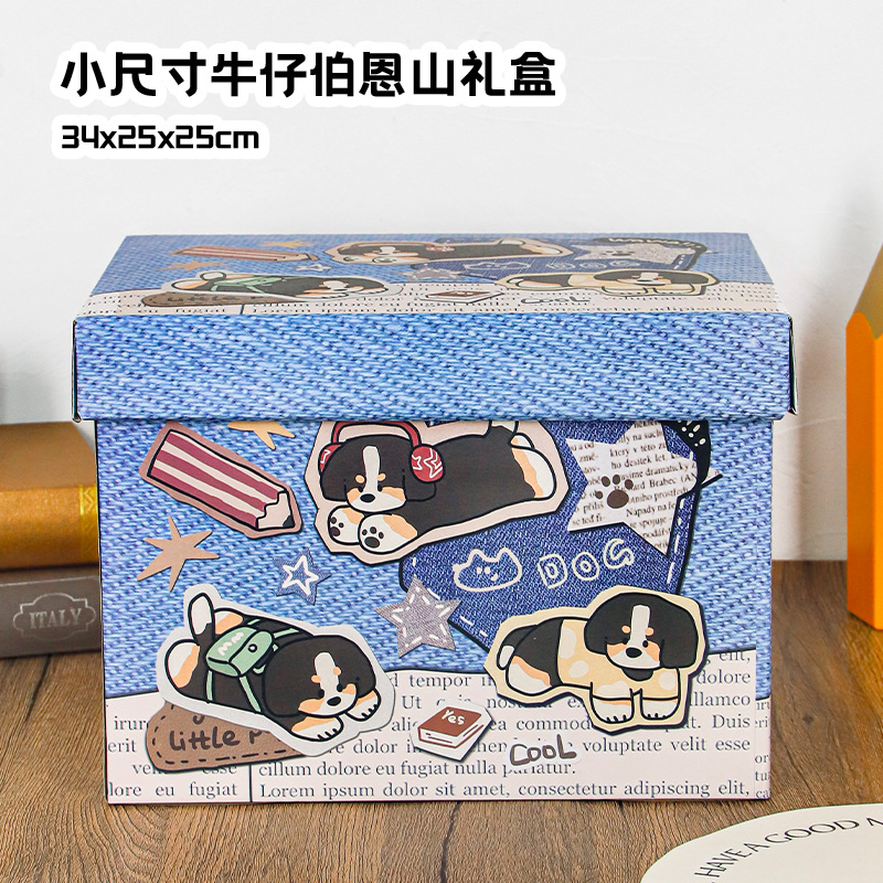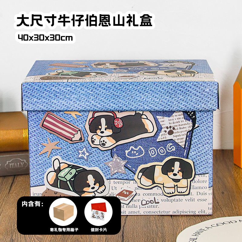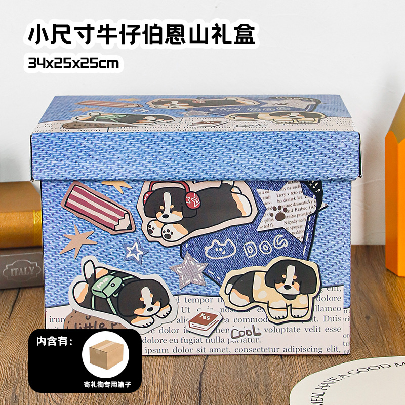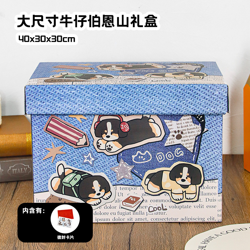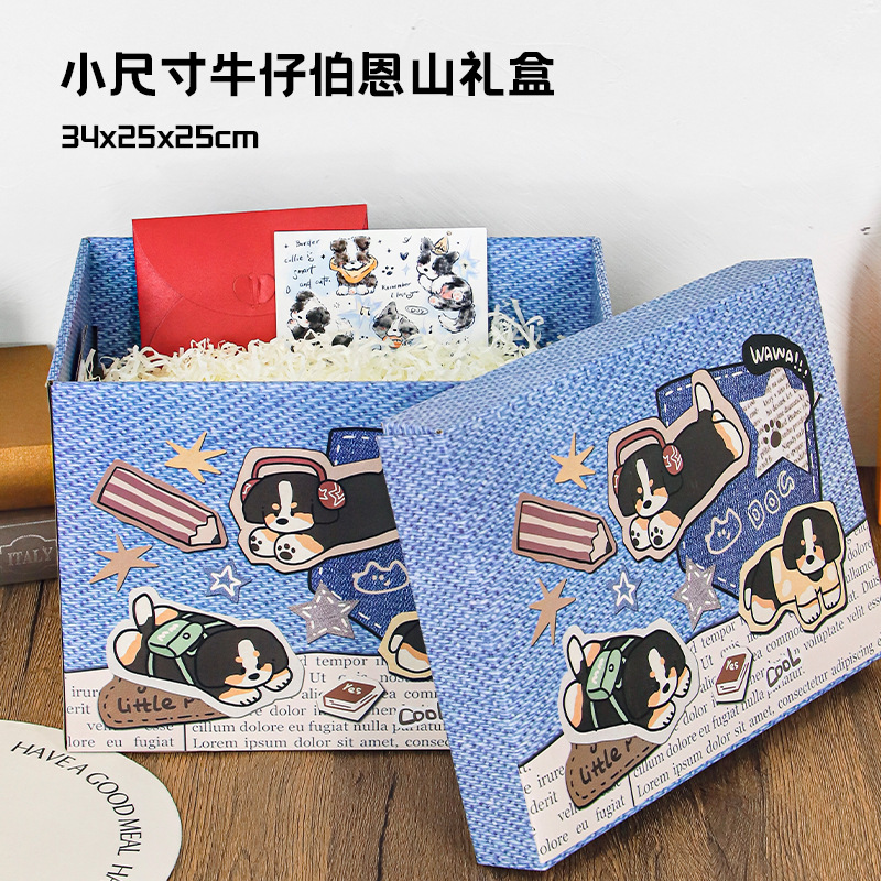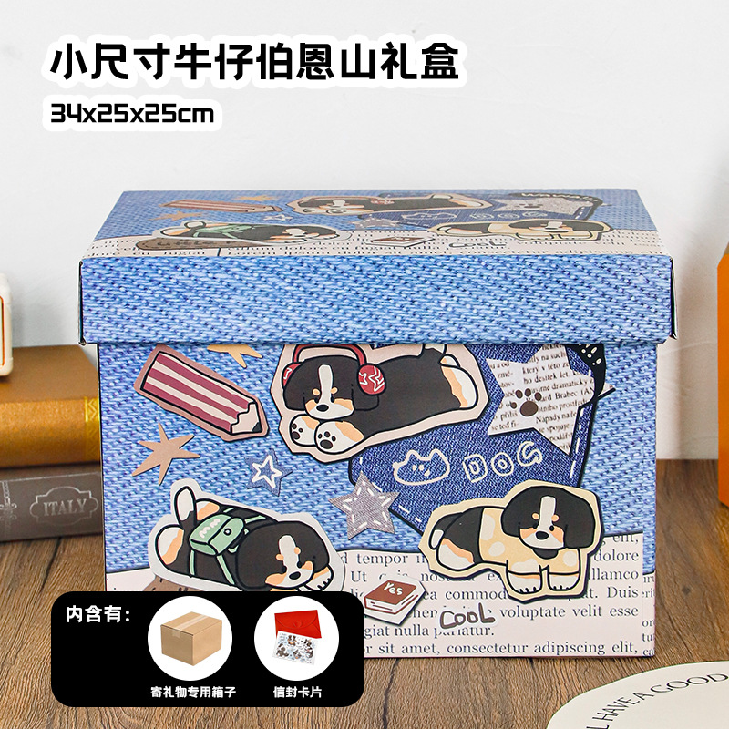 Color: Large size denim bern mountain storage box + special outer box for gift sending + envelope card