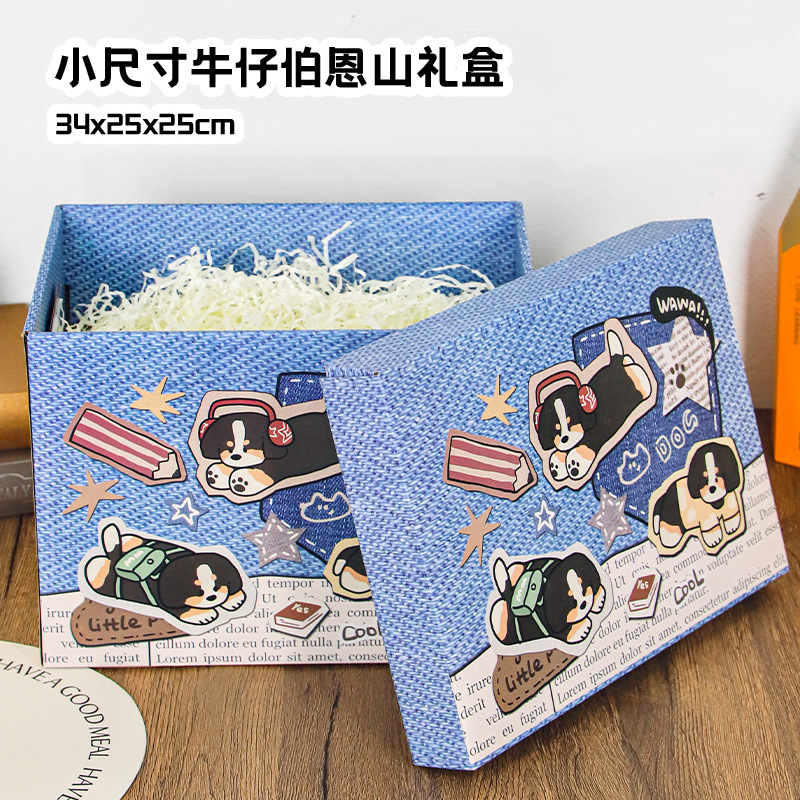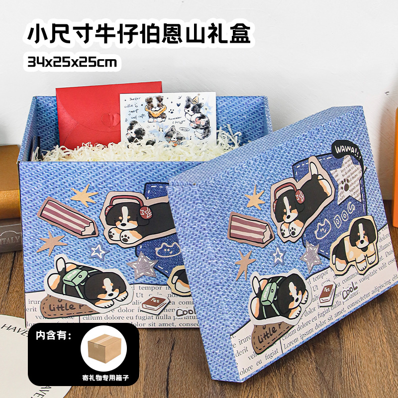 Color: Small size denim bern mountain storage box + special outer box for gift sending + envelope card