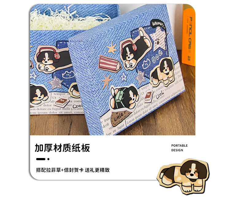 Small size denim bern mountain storage box + special outer box for gift sending + envelope card + raffia
