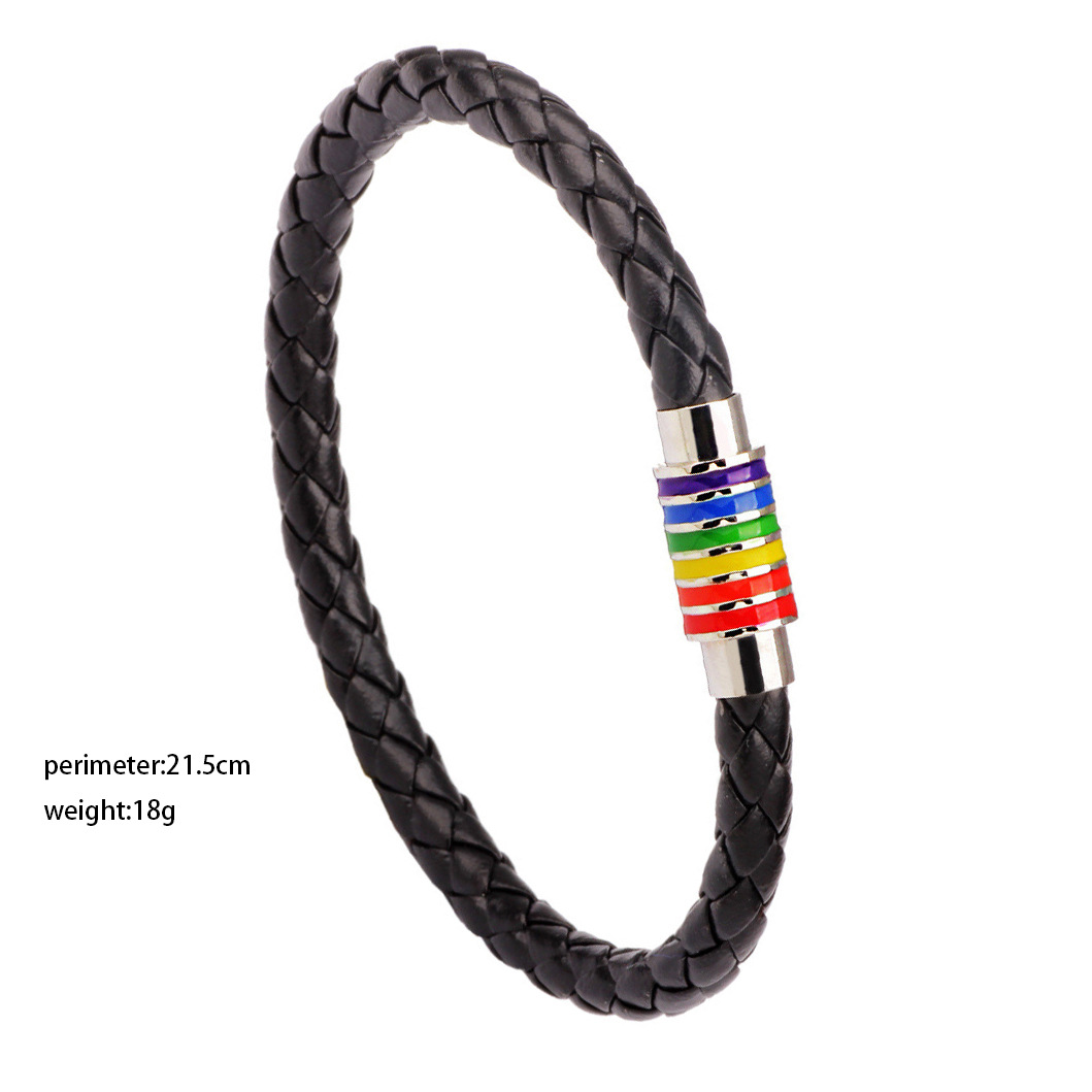 Hot sale European and American personality simple woven leather bracelet bracelet rainbow colorful fashion magnetic buckle jewelry foreign trade cross-border