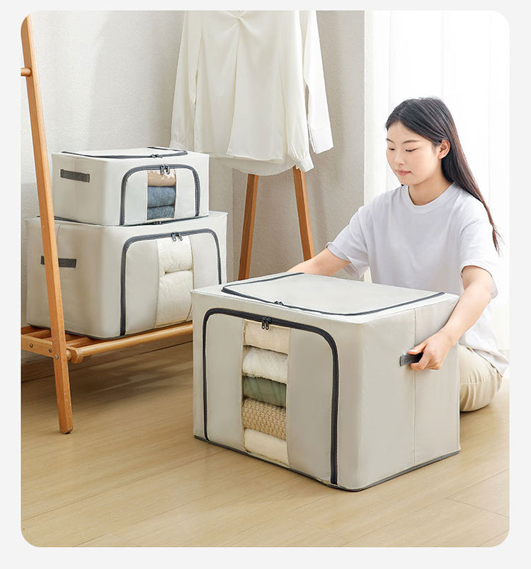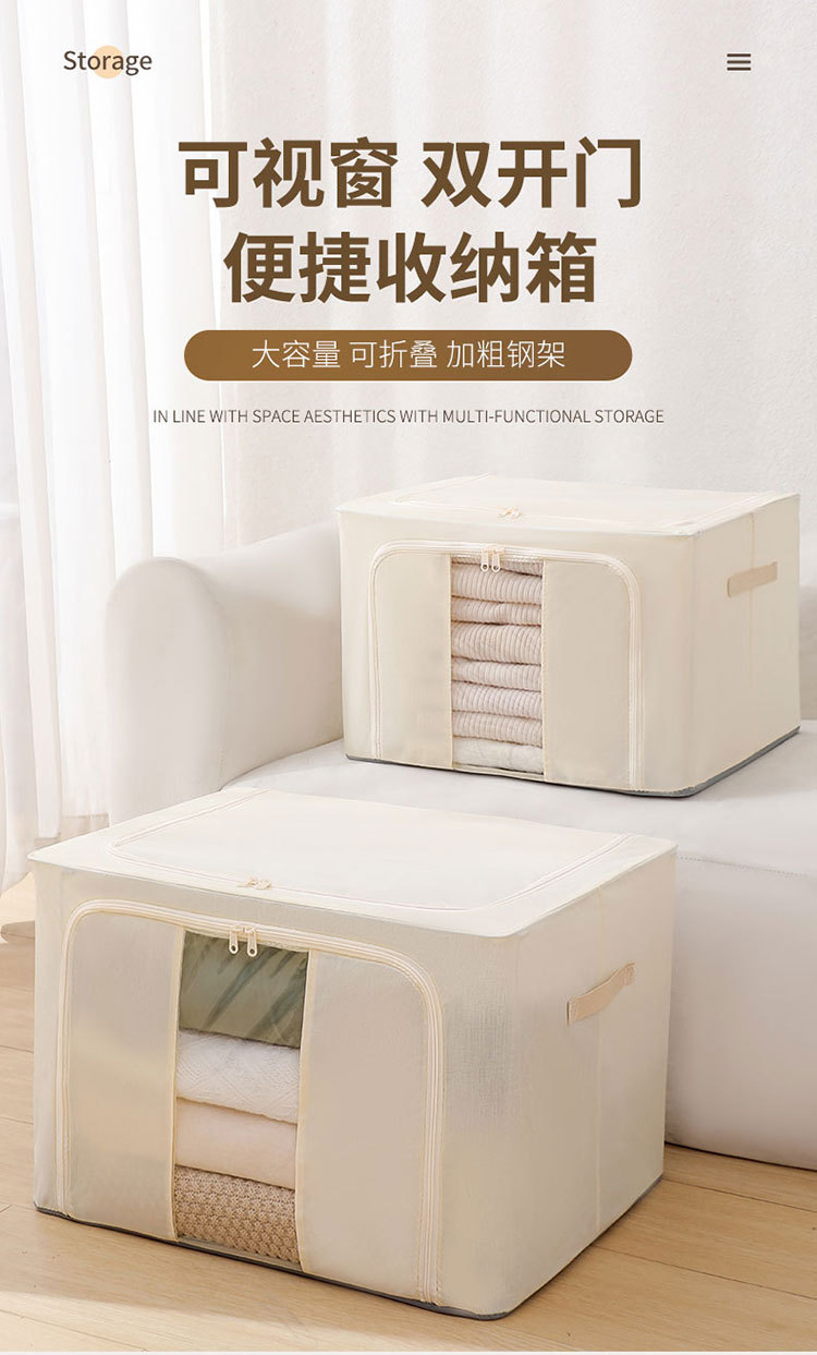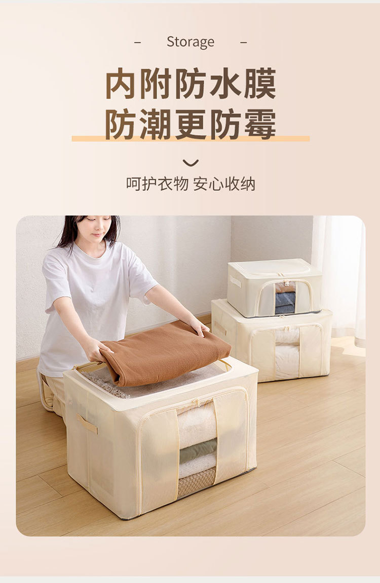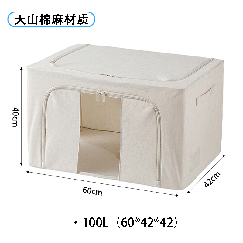 Color: Tianshan cotton and linen storage box [beige 100l (5.0 thick steel frame)]