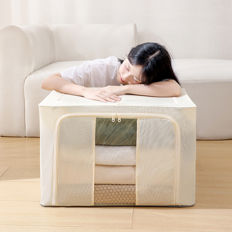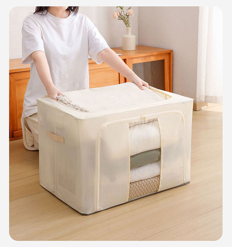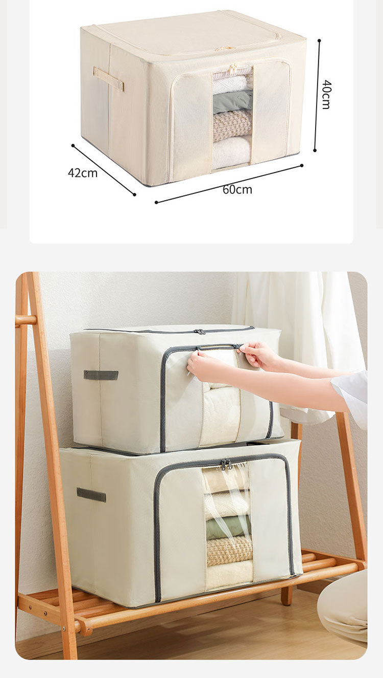 Color: Tianshan cotton and linen storage box [beige 66l (5.0 thick steel frame)]