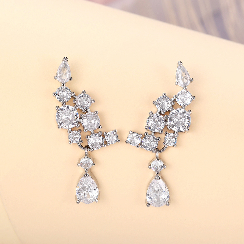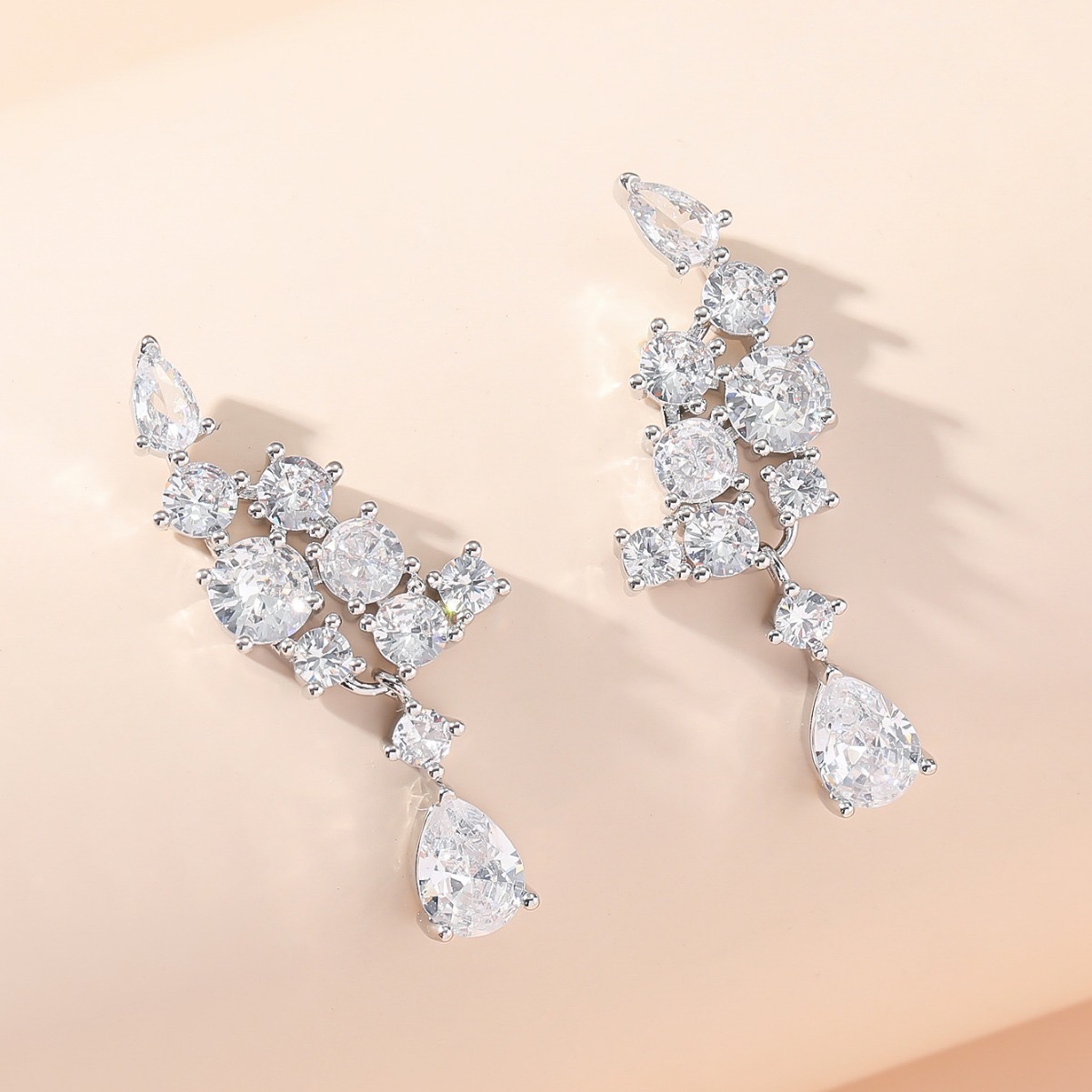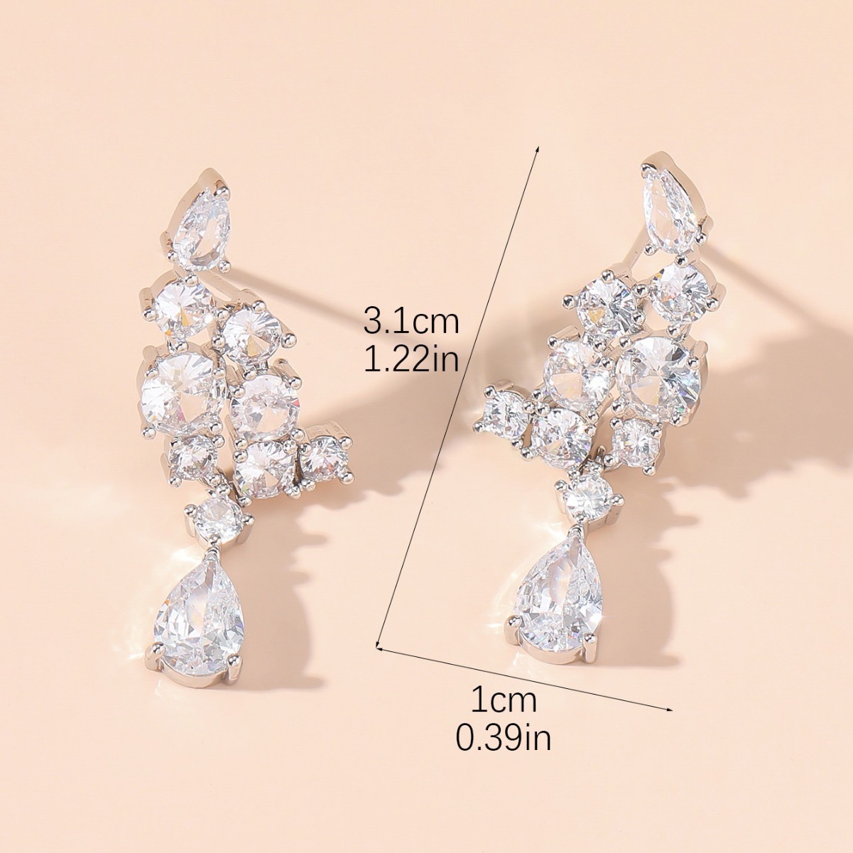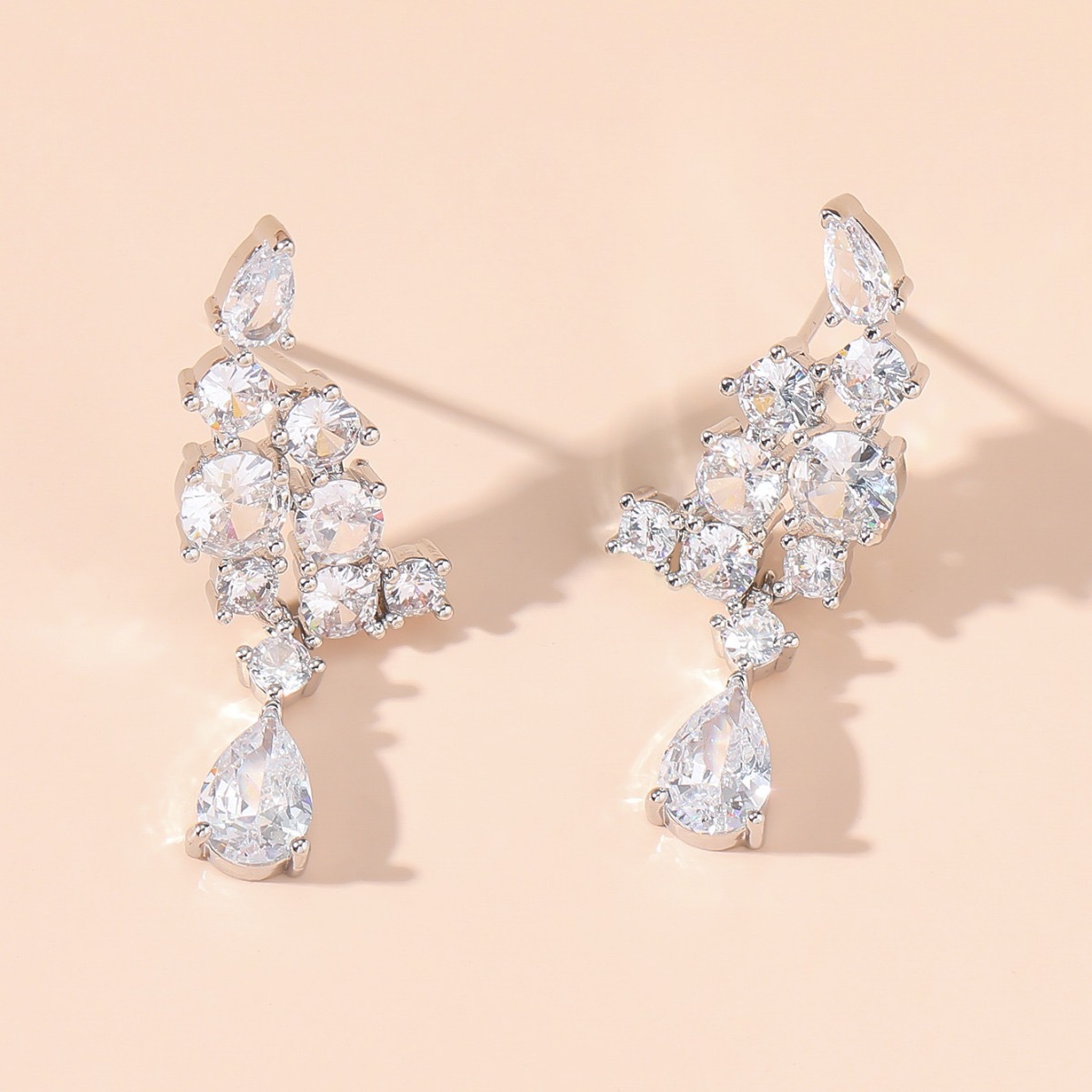 Cross-border supply of ultra-flash zircon platinum wings water drop earrings women's dinner luxury full diamond European and American earrings wholesale