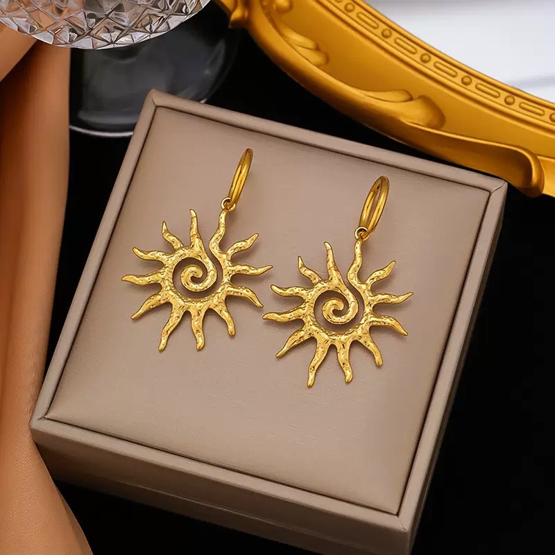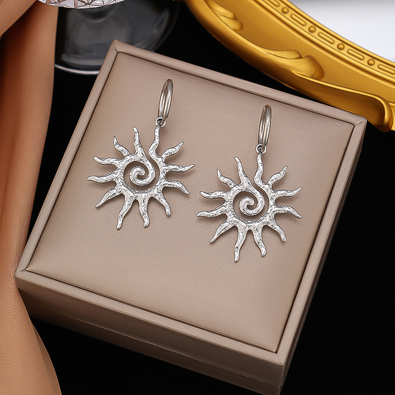 Color: 【g152】sun earrings【steel color】