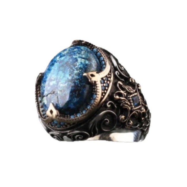 Cross-Border European and American Alloy Carved Ring Craftsman Diamond Blue Amazon Retro Men's Manufacturer Wholesale Gold-Plated