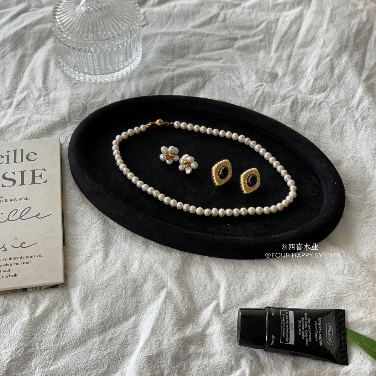 Ins Style Fabric Wooden Jewelry Plate Tray Vintage Display Shot Props Ring Necklace Earrings Earrings