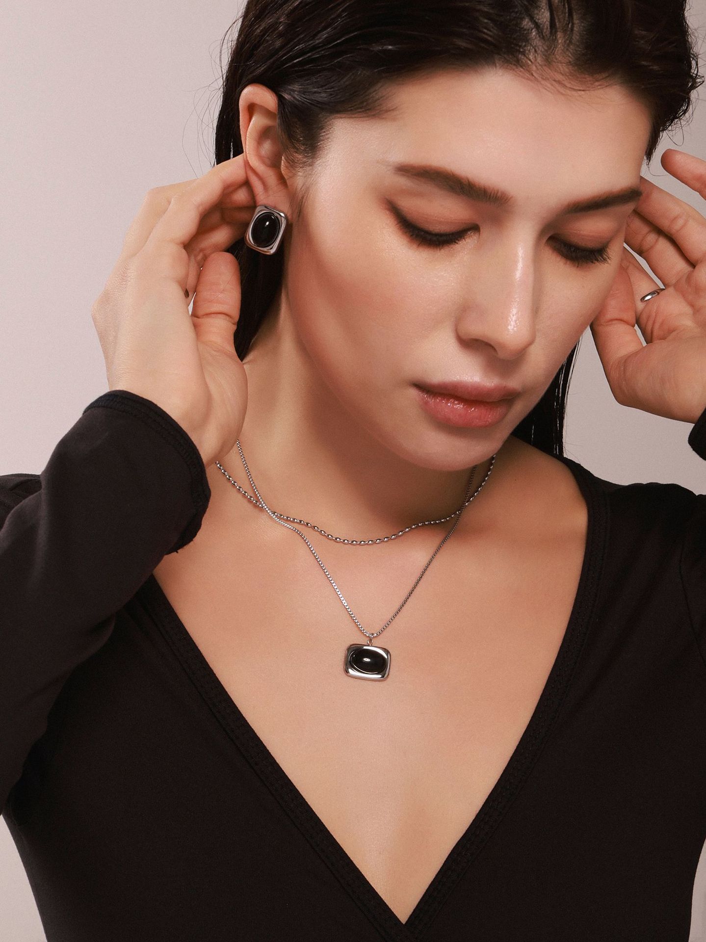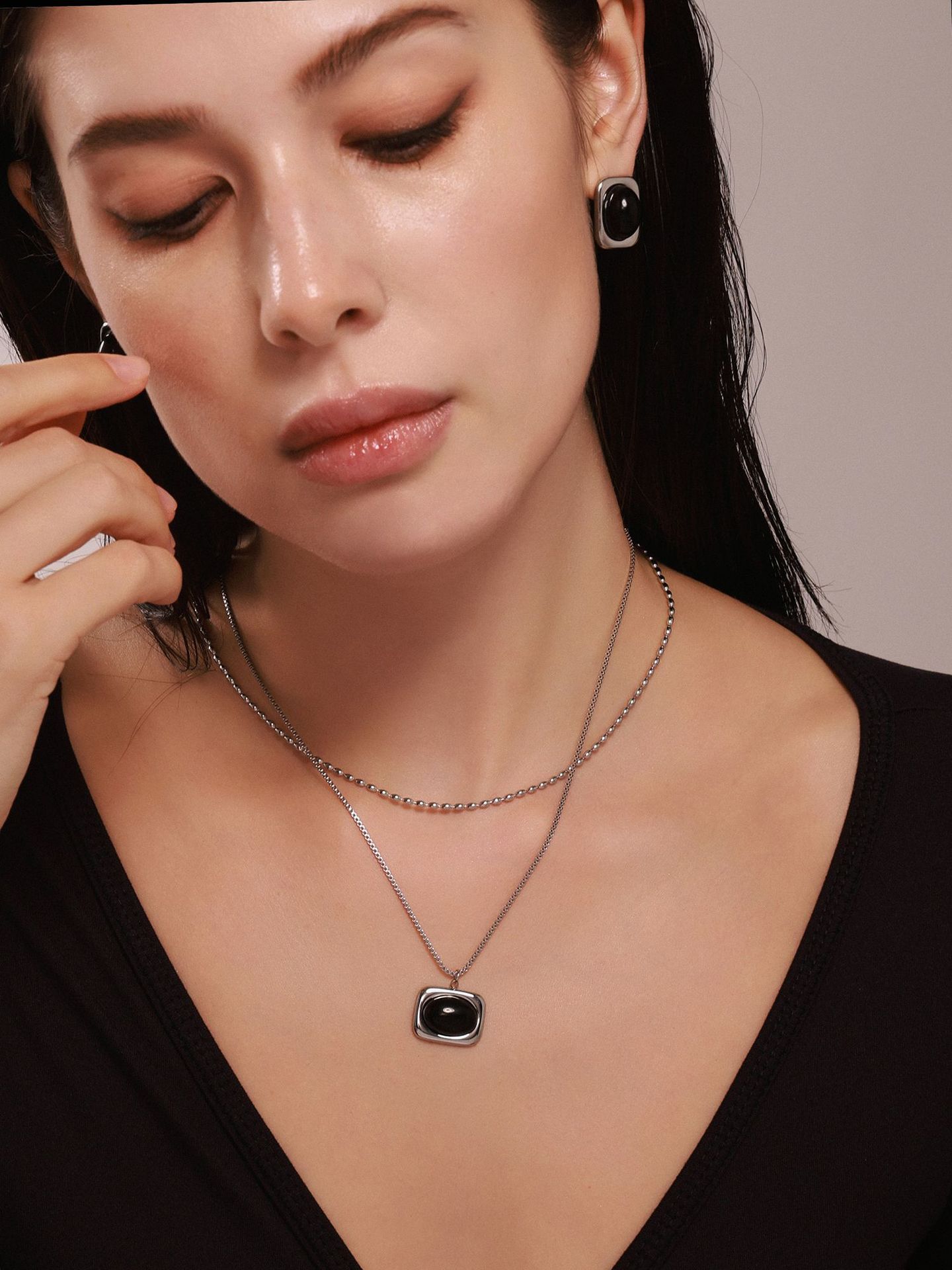 Color: P521-steel black agate necklace 40 5cm