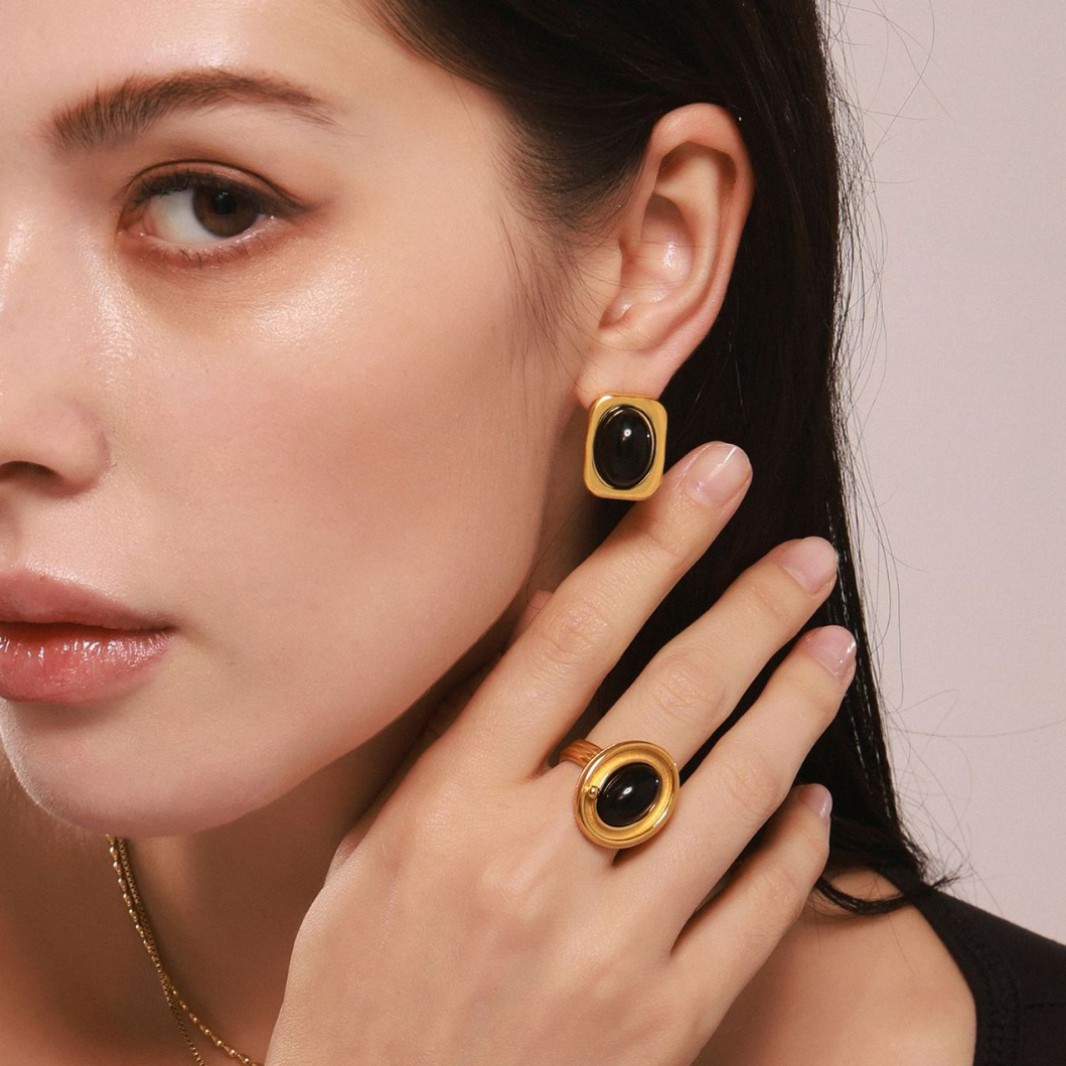 Material: Titanium steel black agate