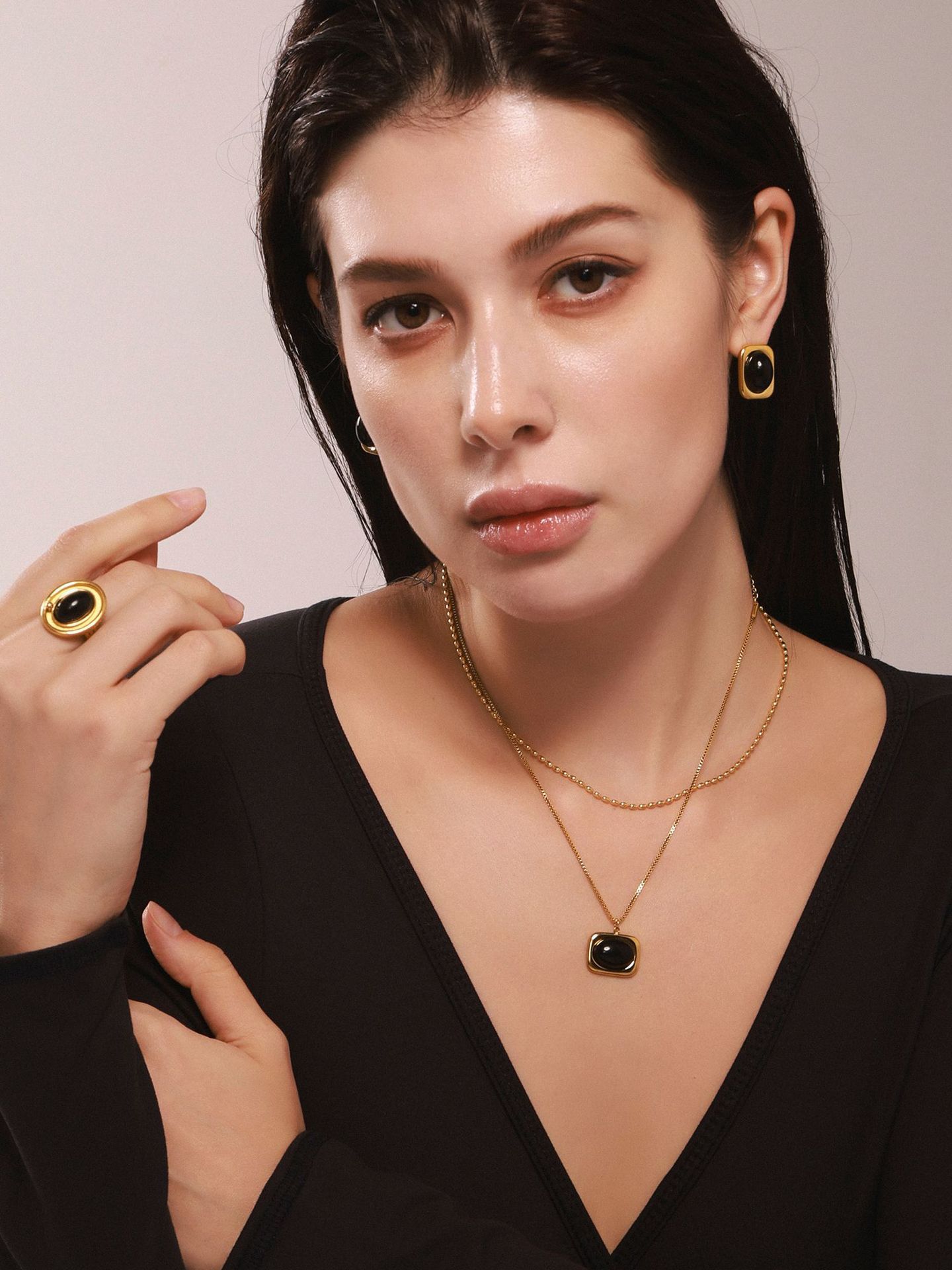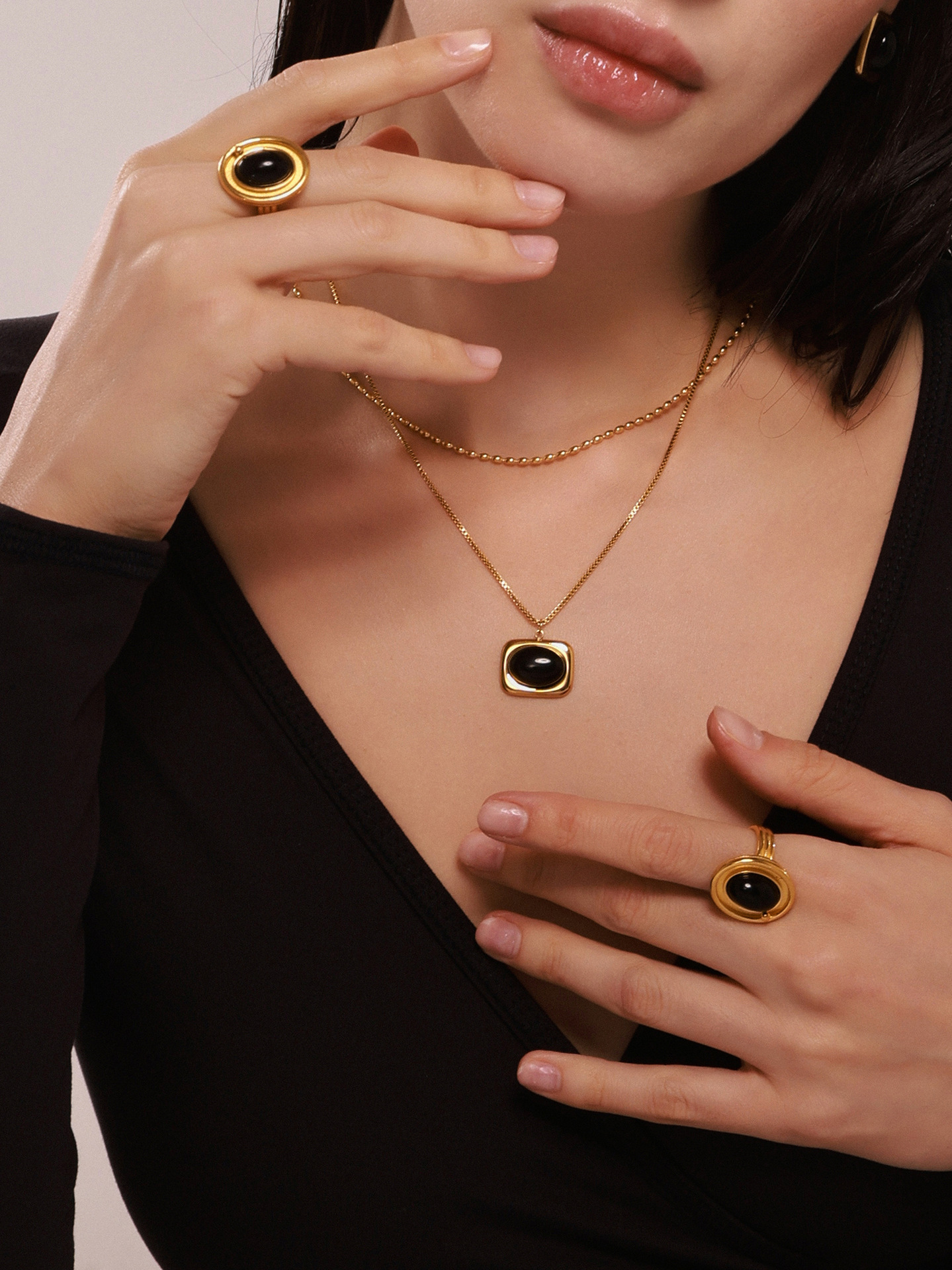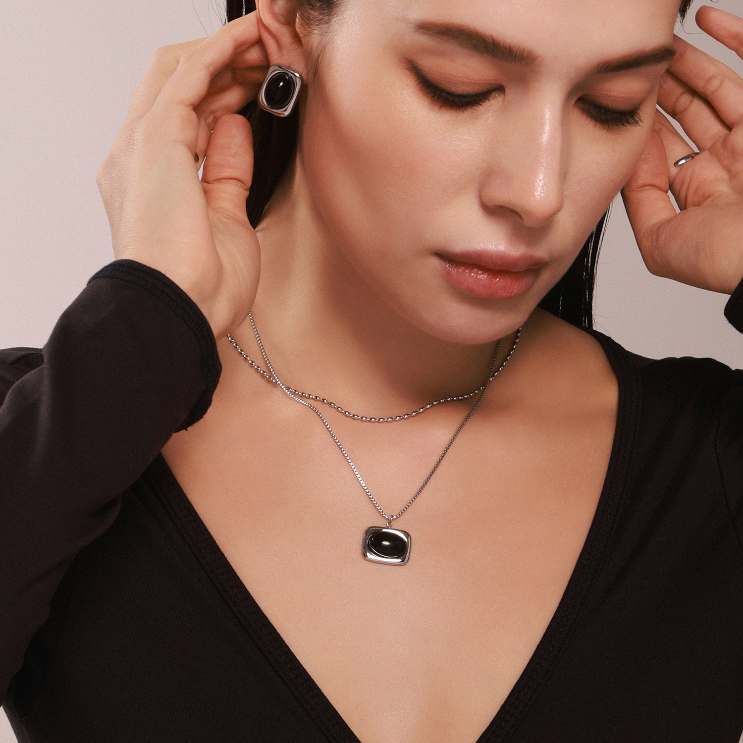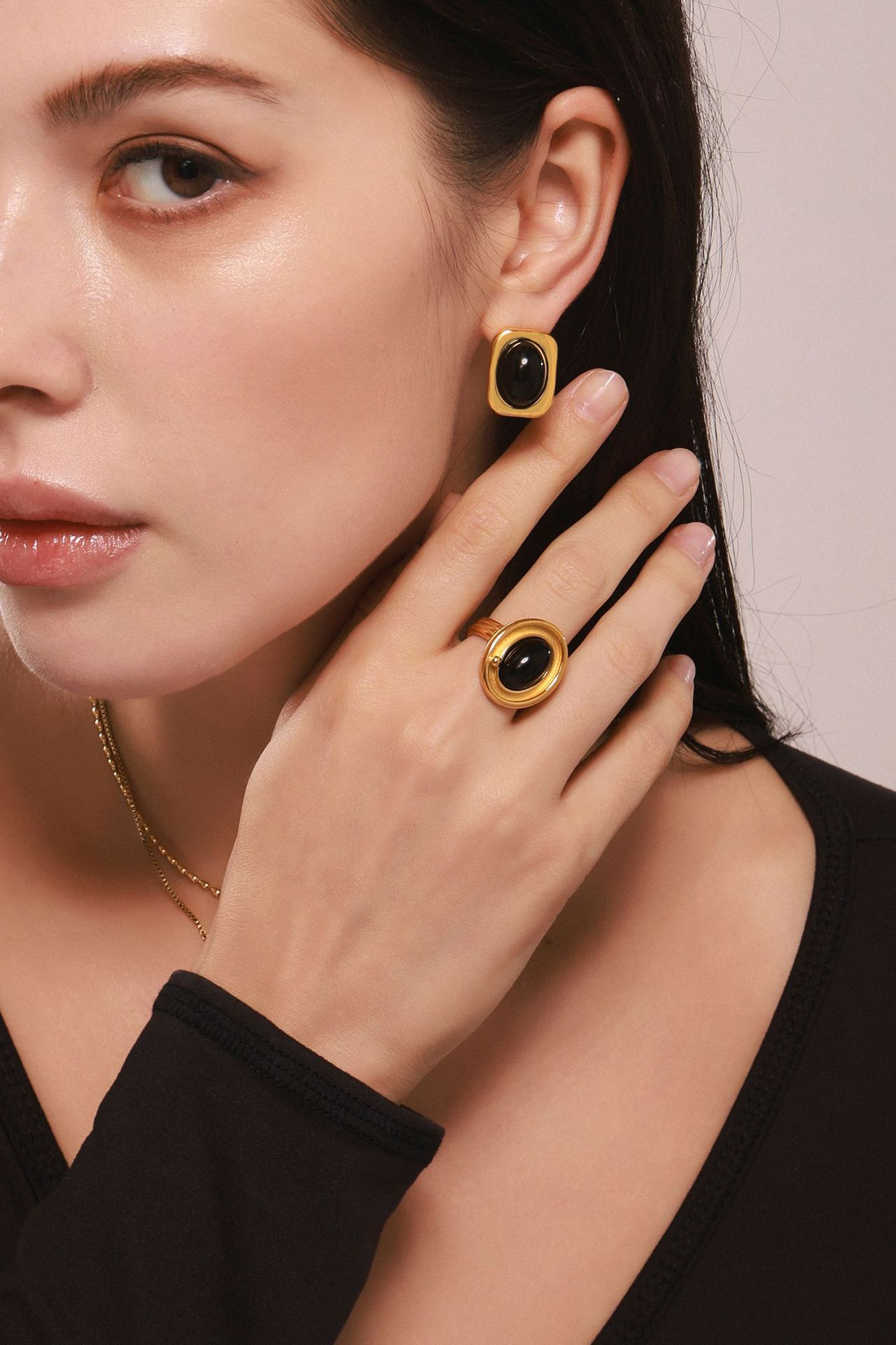 Material: Stainless steel black onyx