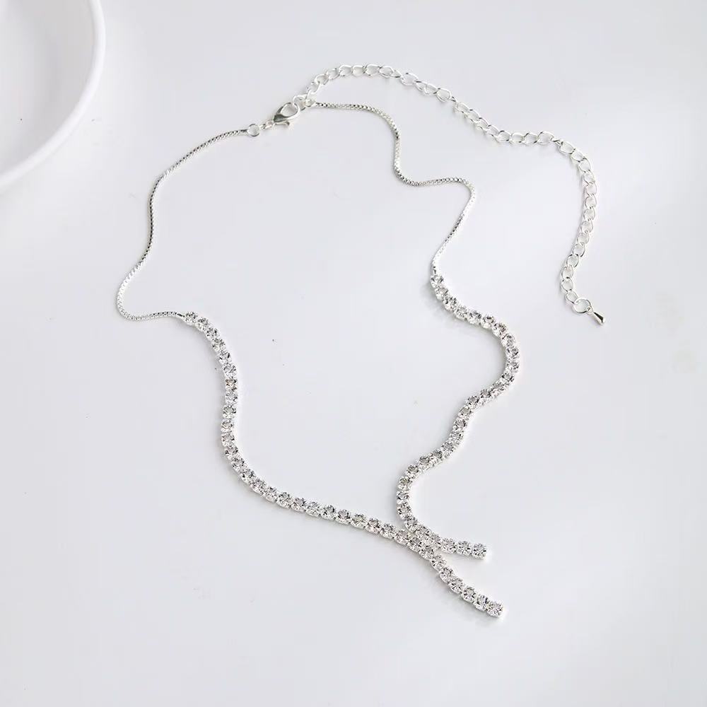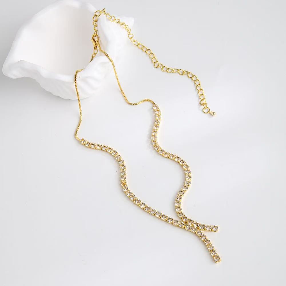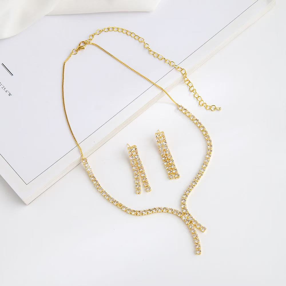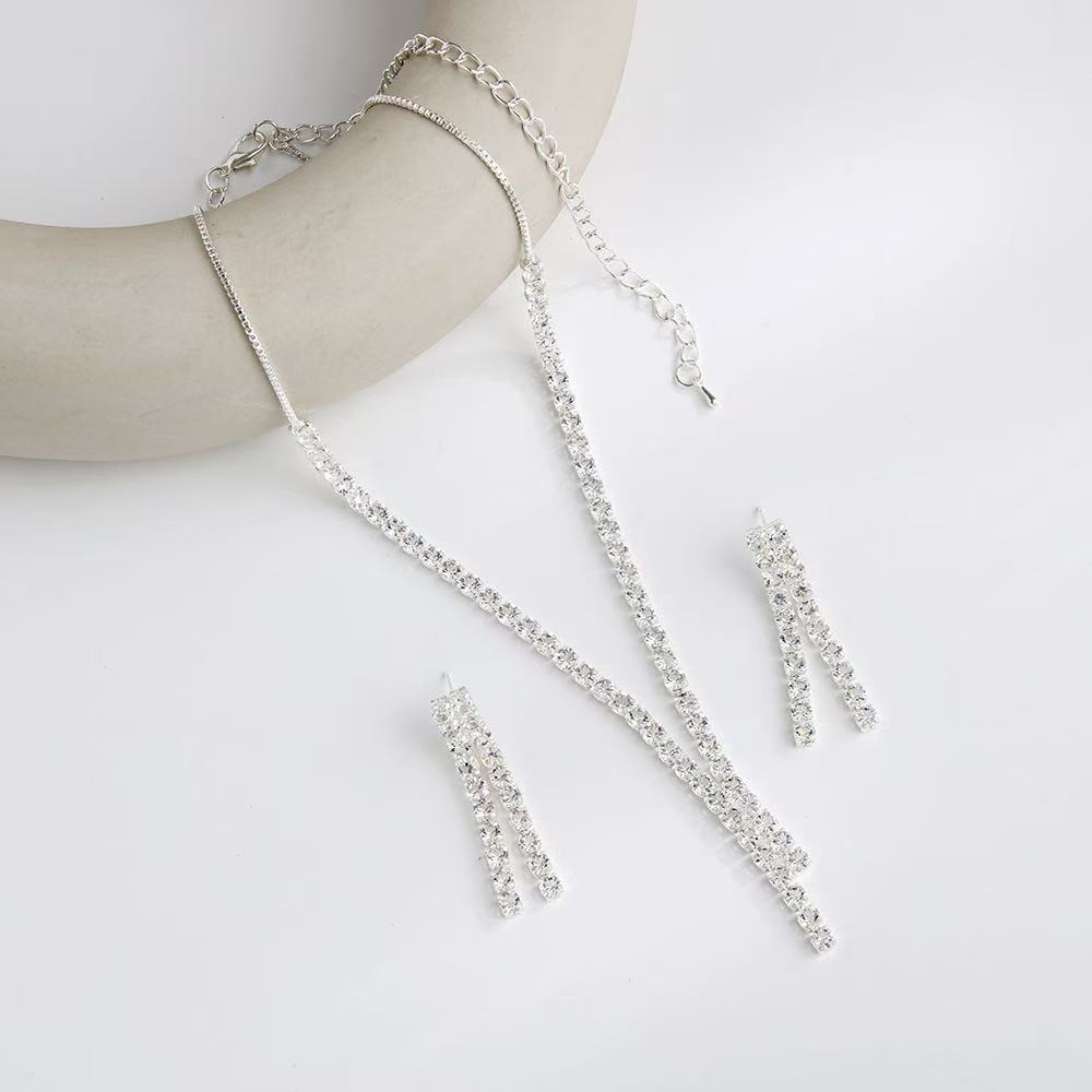 Wedding Dinner Naked Diamond Necklace Earrings 2 Piece Set Ladies Elegant European and American Cross-border Jewelry suit