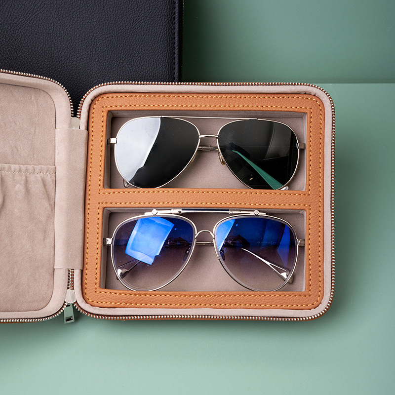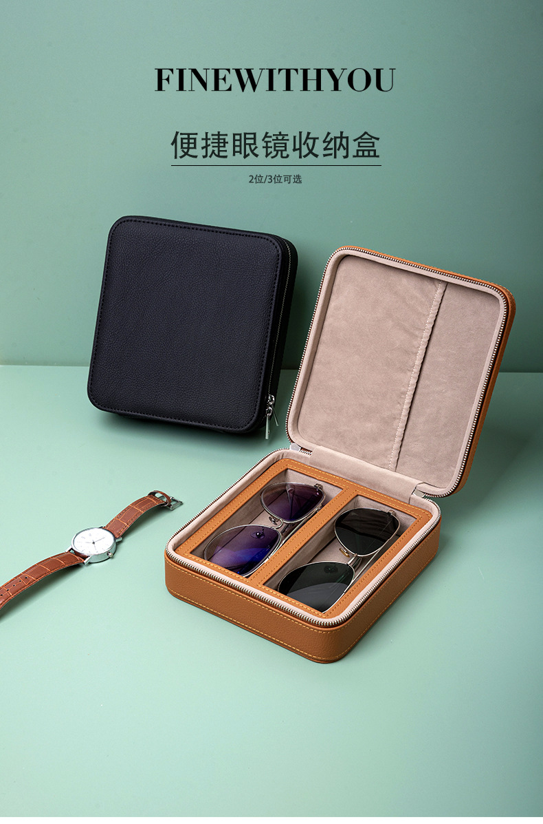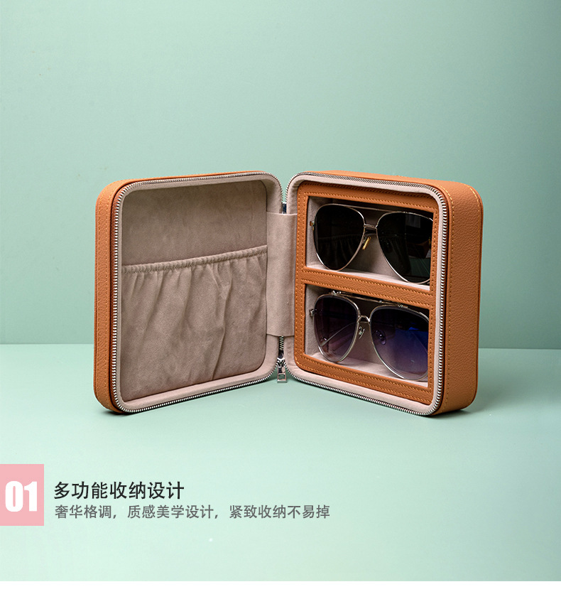 Cross-border portable leather glasses storage box multi-grid anti-pressure sunglasses storage and finishing display box