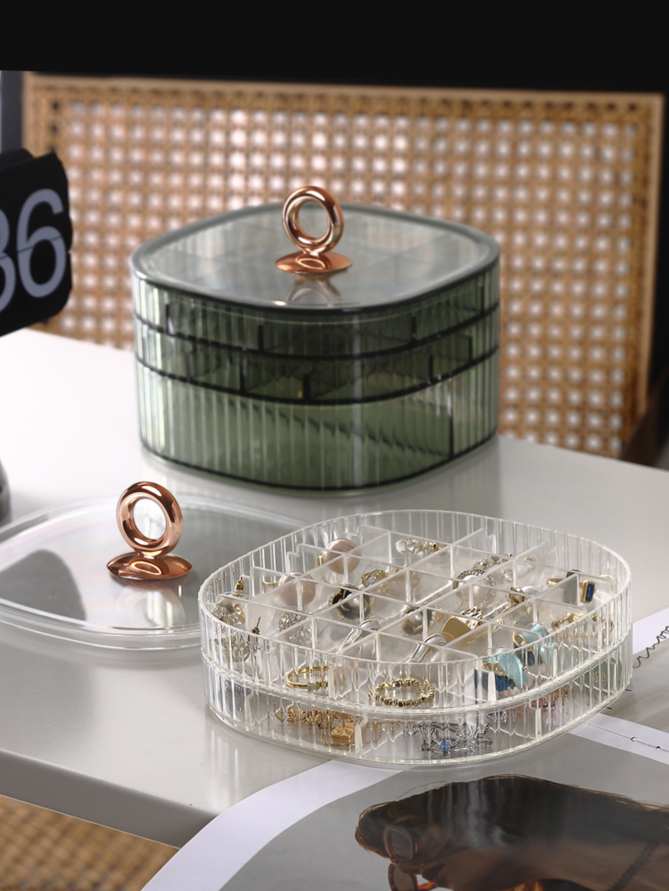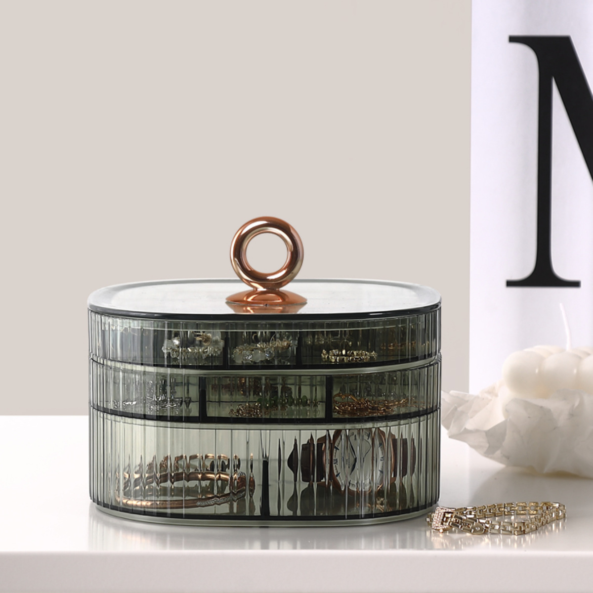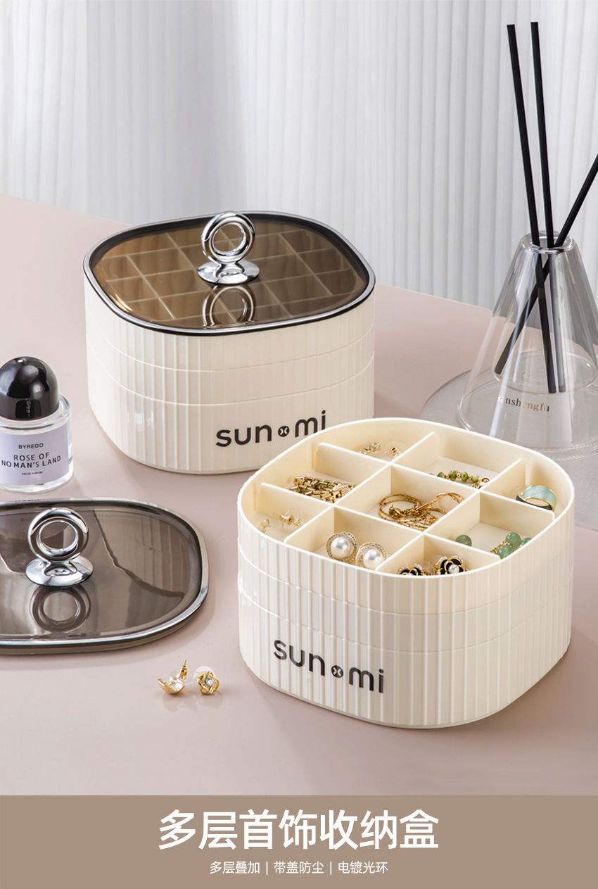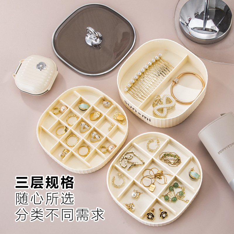 Cross-Border Jewelry Storage Box Ring Earrings Necklace Bracelet 3-Layer Jewelry Storage Accessible Luxury Dressing Table Storage Display