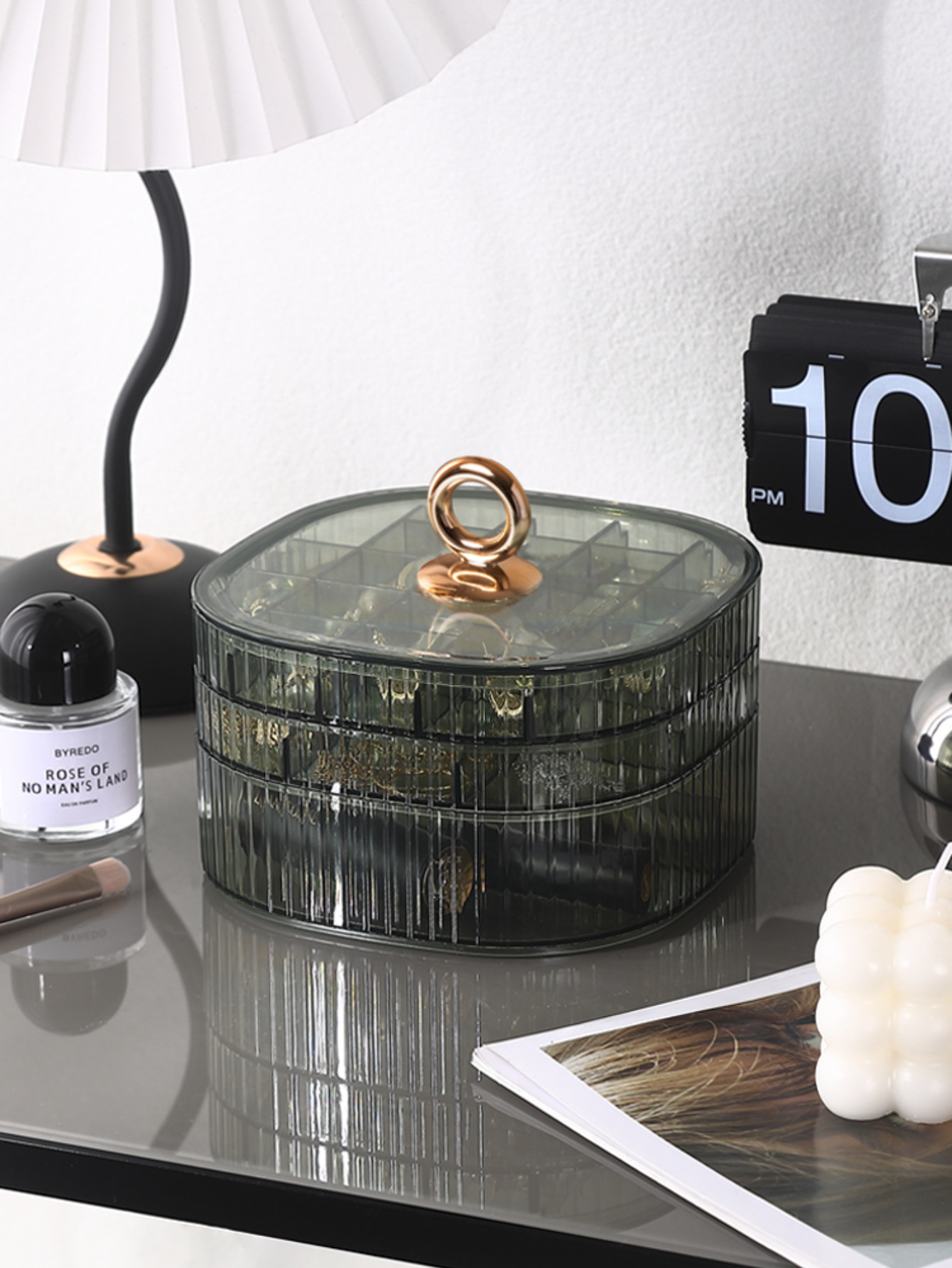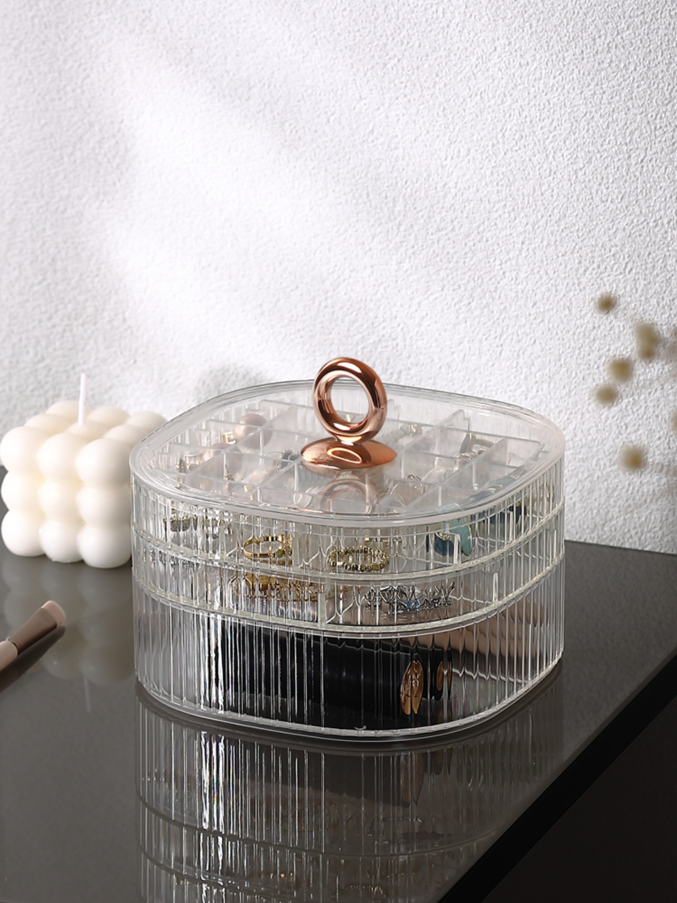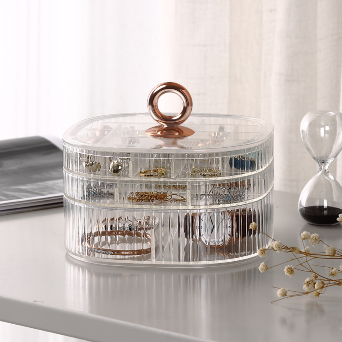 Cross-Border Jewelry Storage Box Ring Earrings Necklace Bracelet 3-Layer Jewelry Storage Accessible Luxury Dressing Table Storage Display