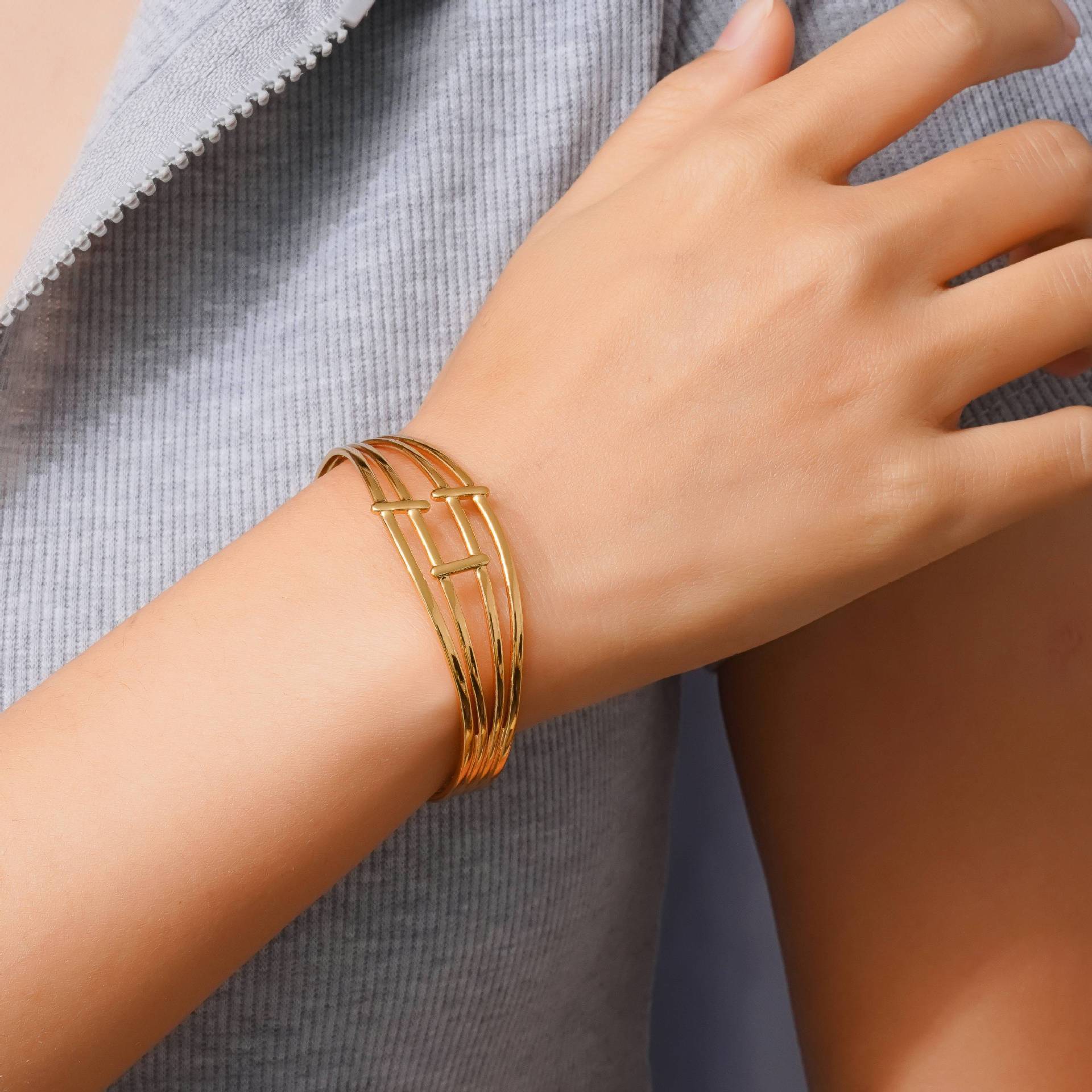 Ins Light Luxury Stainless Steel Bracelet Adjustable Opening Bracelet Women's Multi-Layer Fashion High-End Bracelet