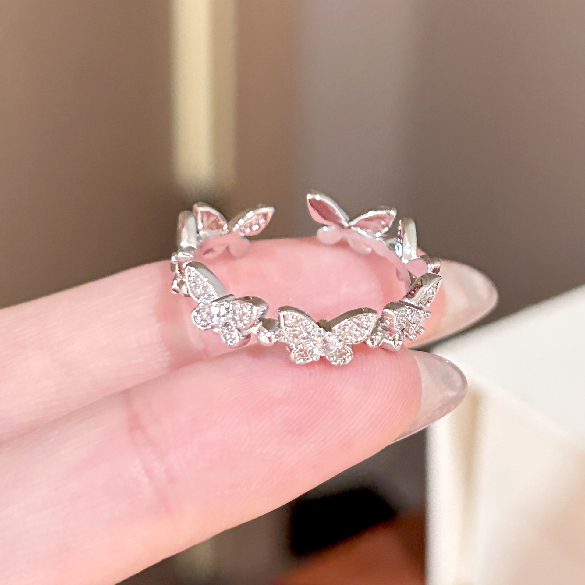 Wholesale Simple Zircon Plain Ring Women's Niche Light Luxury High-End Index Finger Ring Non-Fading Open Ring New Product