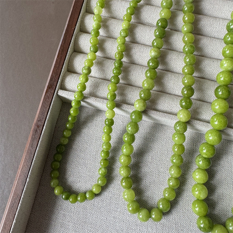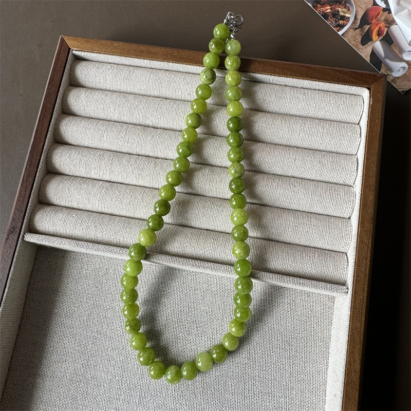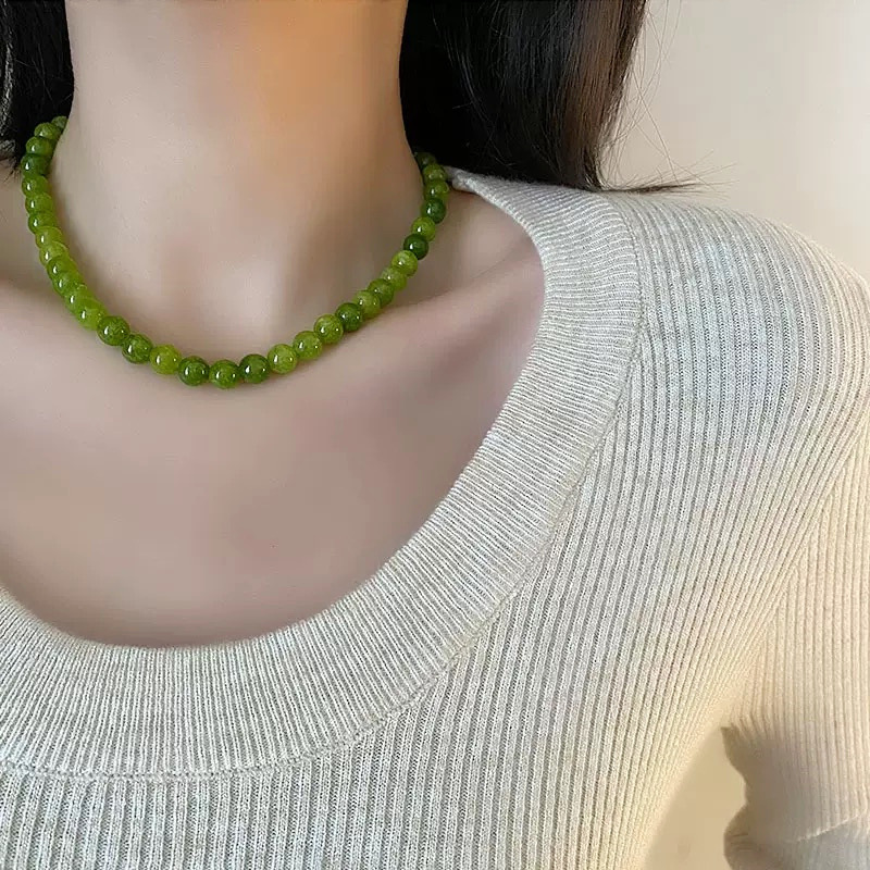 French Green Agate Green Tie Handmade Beaded Necklace Niche Summer Fresh All-match Green Natural Stone Clavicle Chain
