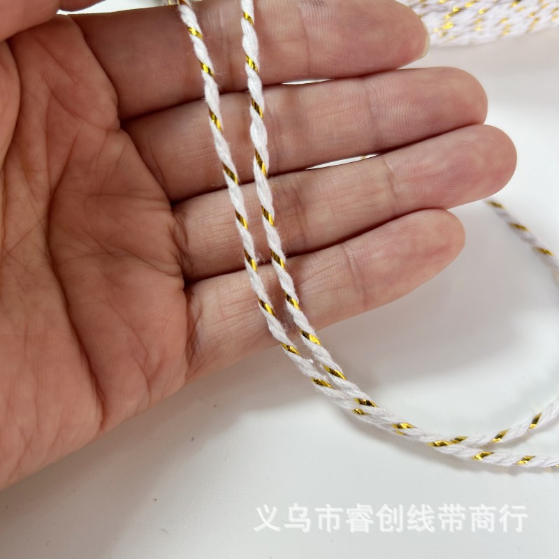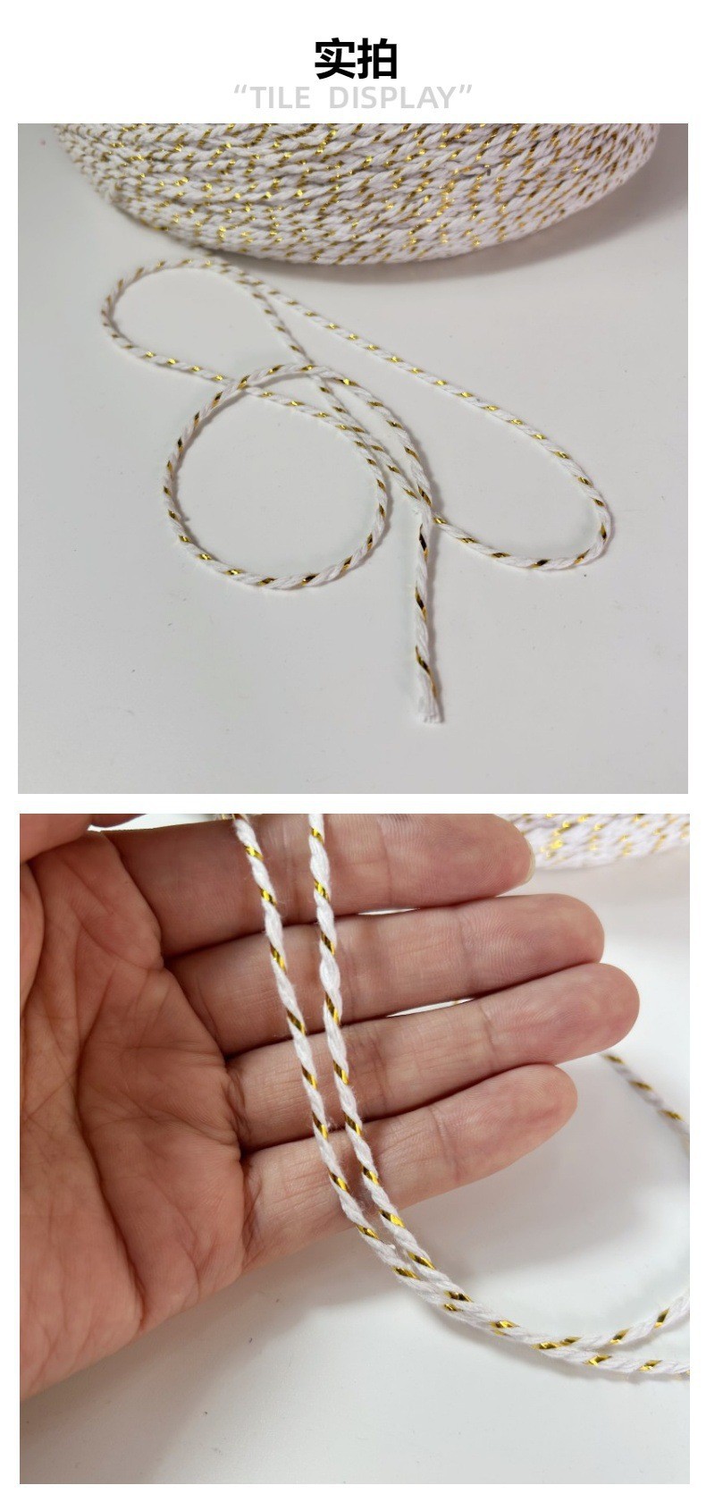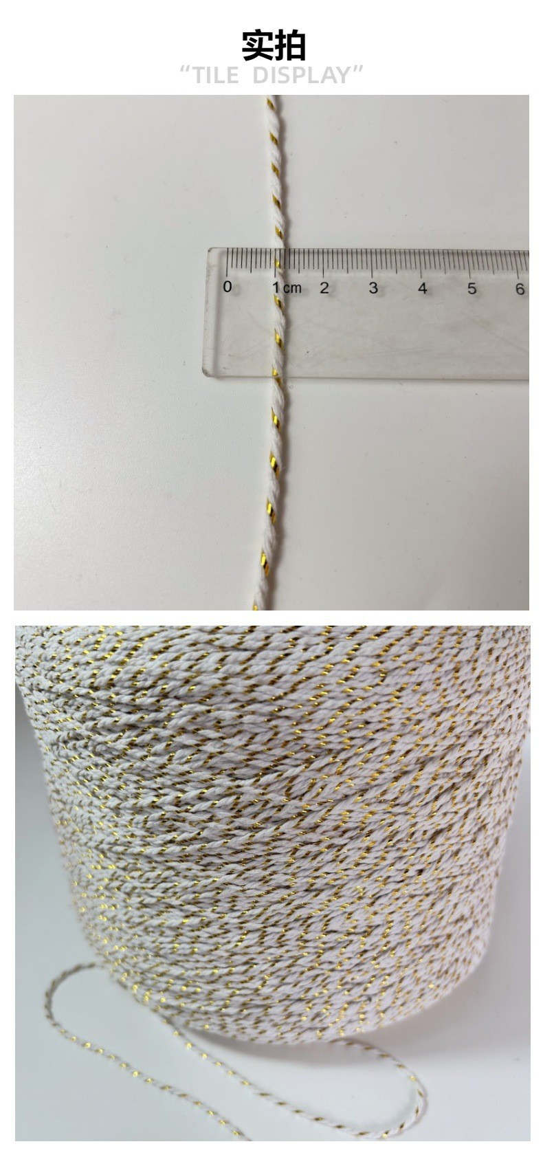 2mm Bleached Solid Round Three-Strand Cotton Rope with Gold Thread Tag Rope DIY Handmade Accessories Decorative Rope 100.1m Pieces