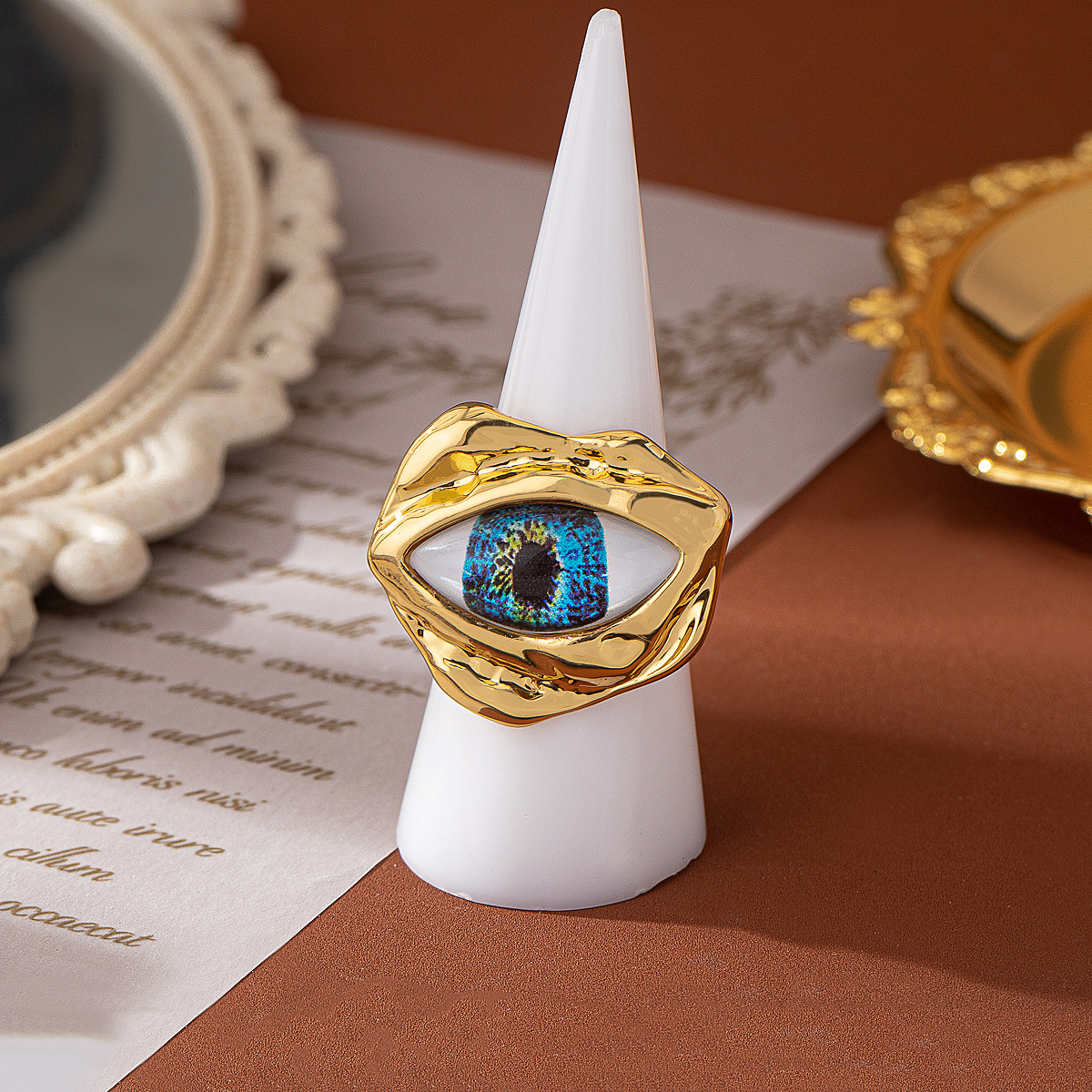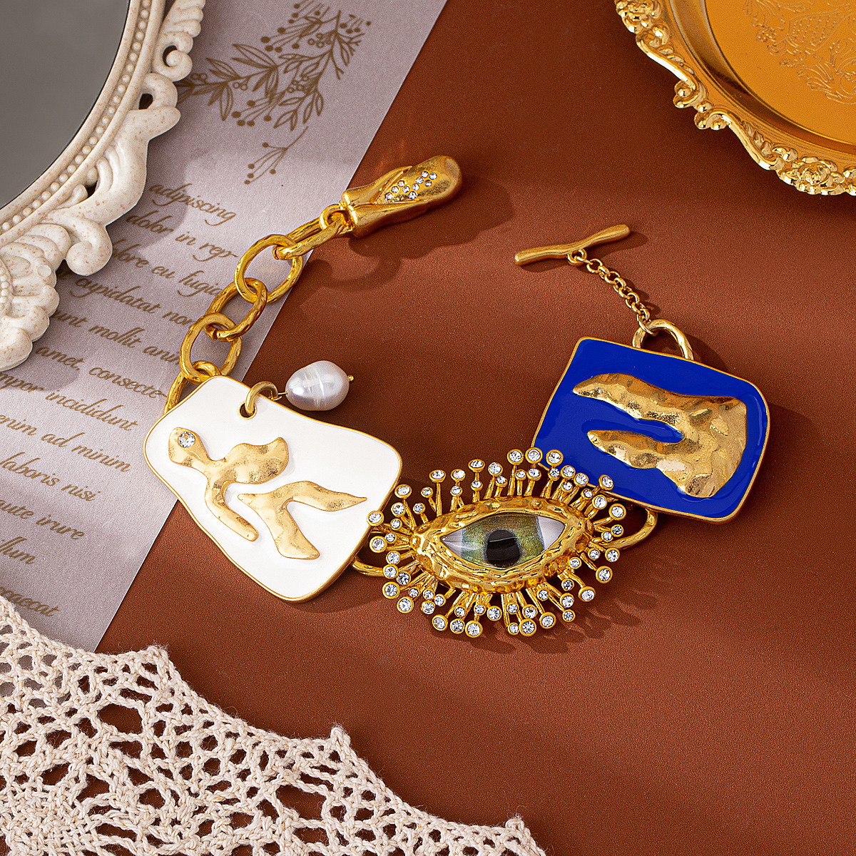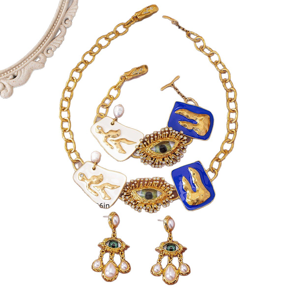 Vintage Gold Devil's Eye Copper Gold-Plated Enamel Necklace, Bracelet, Earring, and Ring Set