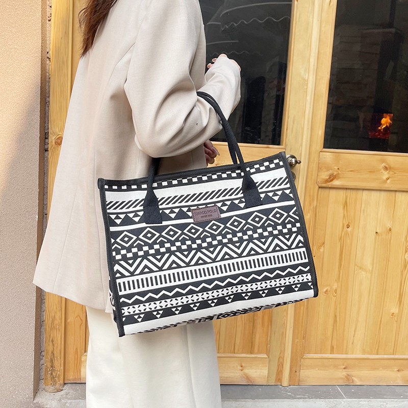 New Large Capacity Women's Tote Bag Handbag Ethnic Style Practical Commuter Student High-Level Mommy Bag Shoulder Bag