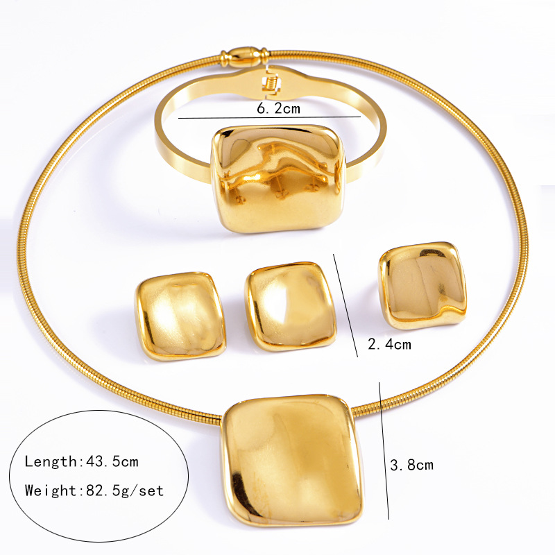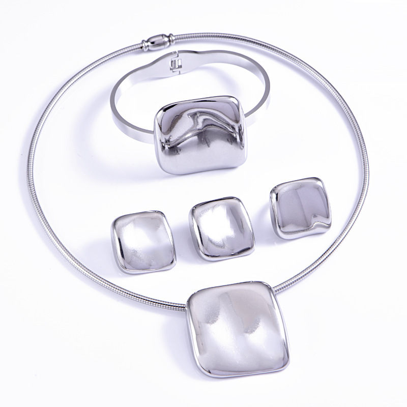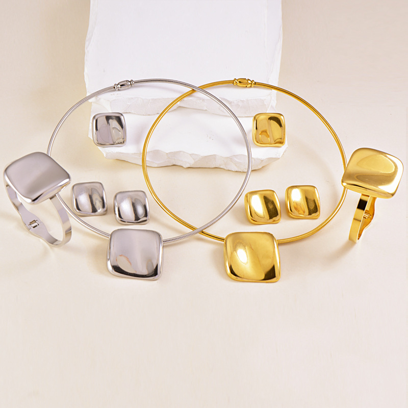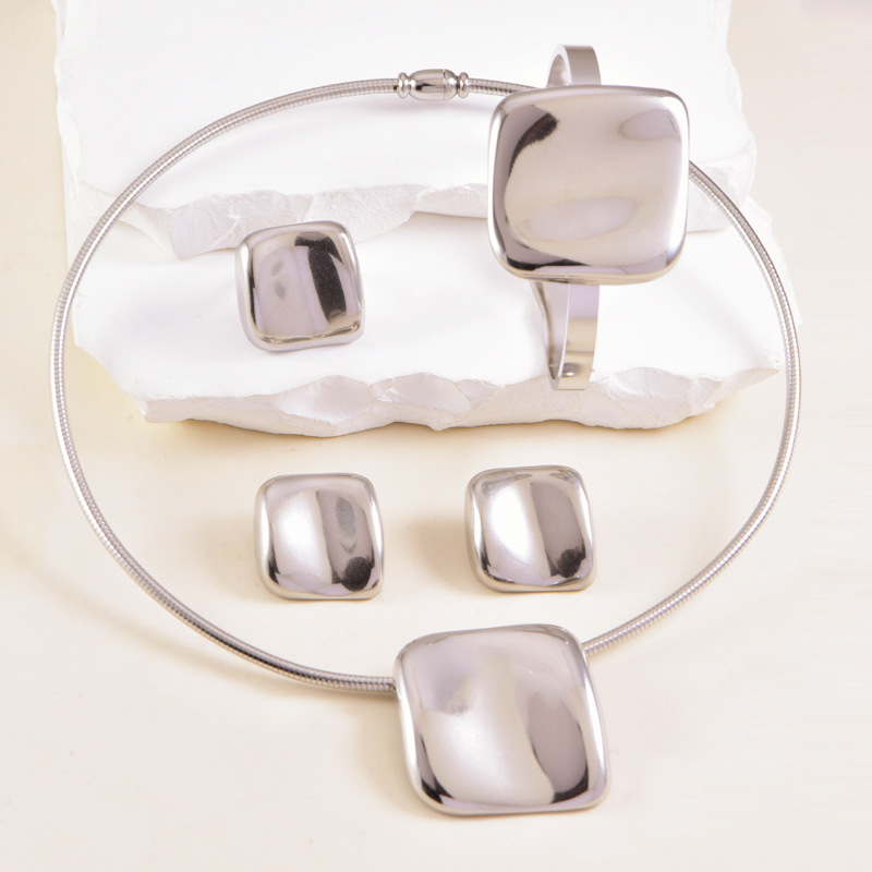 Europe and the United States exaggerated simple smooth geometric square stainless steel collar bracelet suit women light luxury Joker accessories wholesale