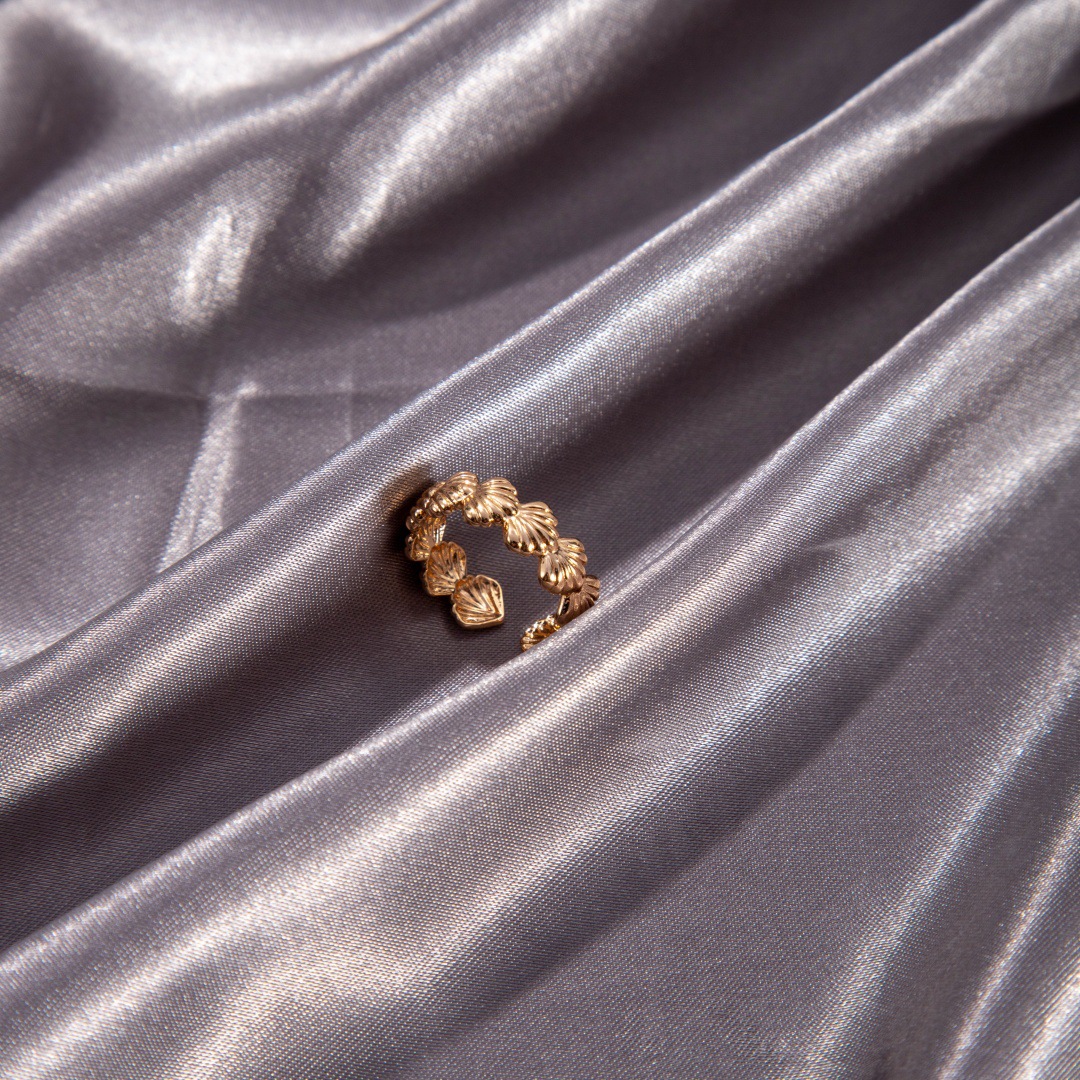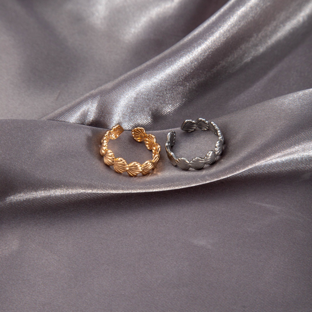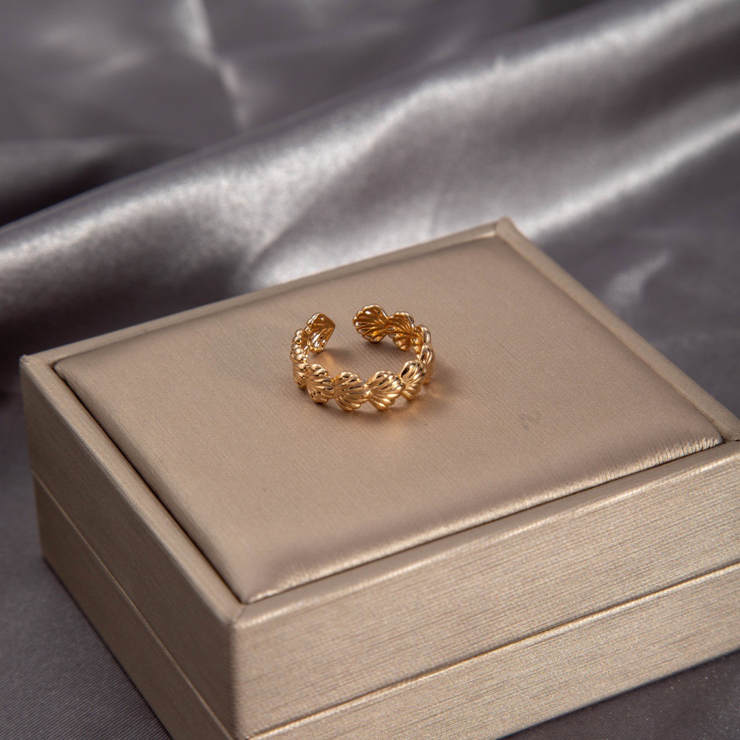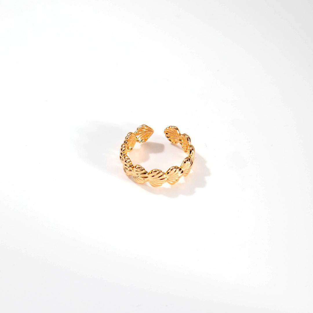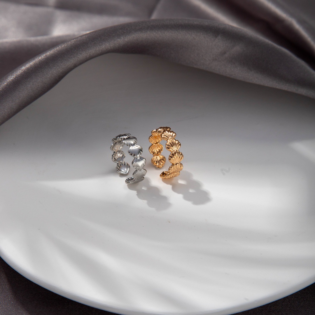 Cross-border fashion ocean style shell ring opening does not fade ins style design niche stainless steel ring for women