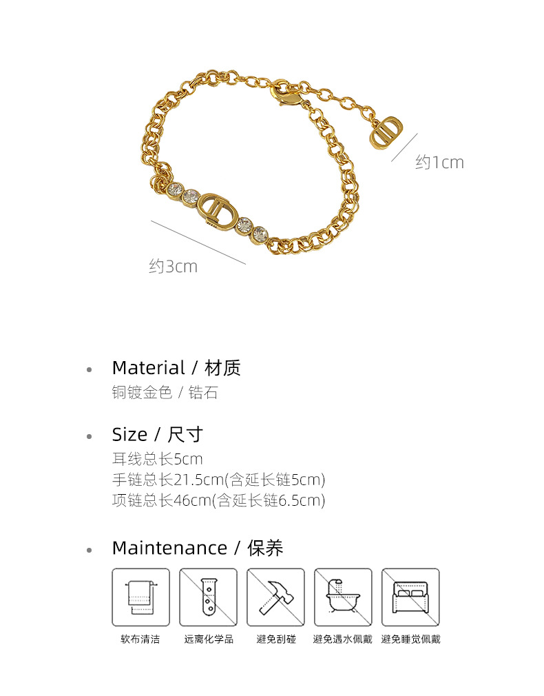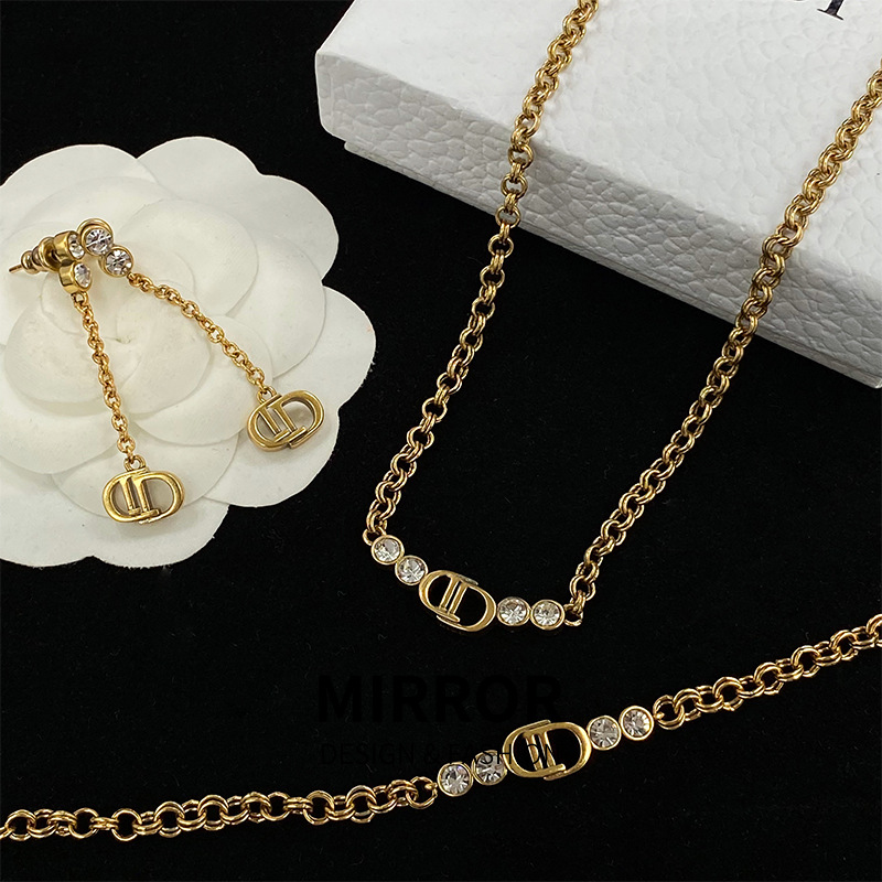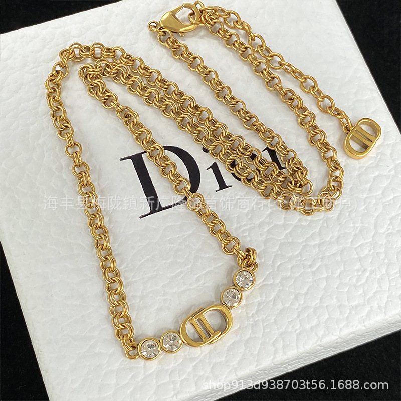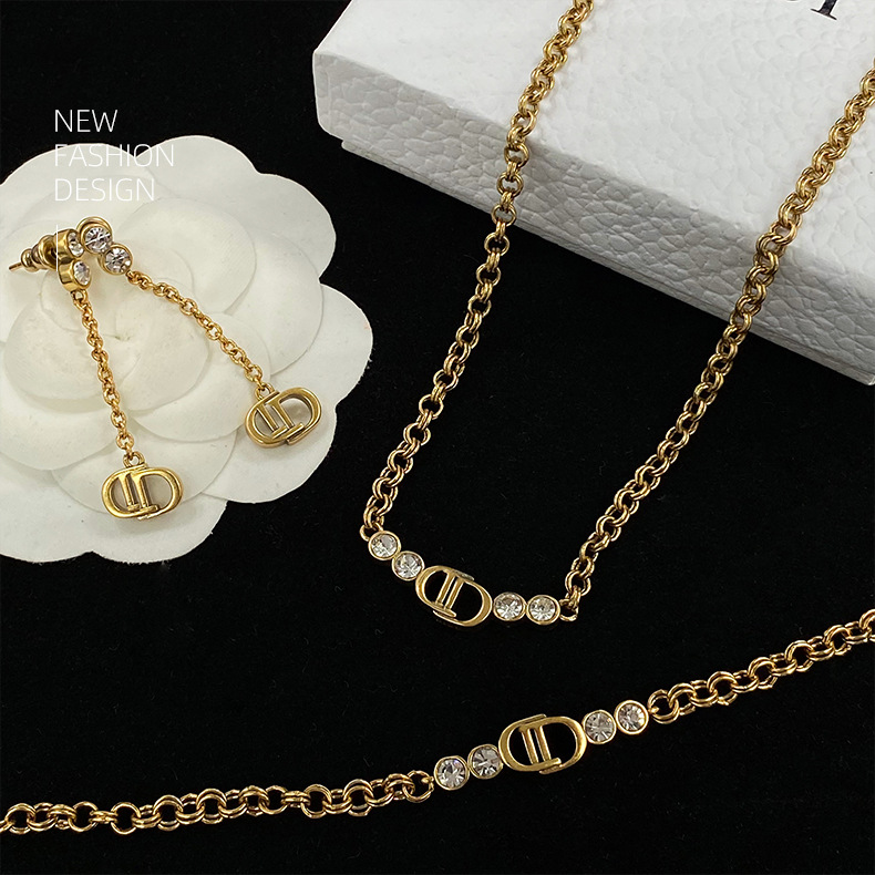 Dijia suit Letter CD Necklace Bracelet Female Rhinestone High Sense Retro High Sense Temperament Net Red Ear Line Wholesale