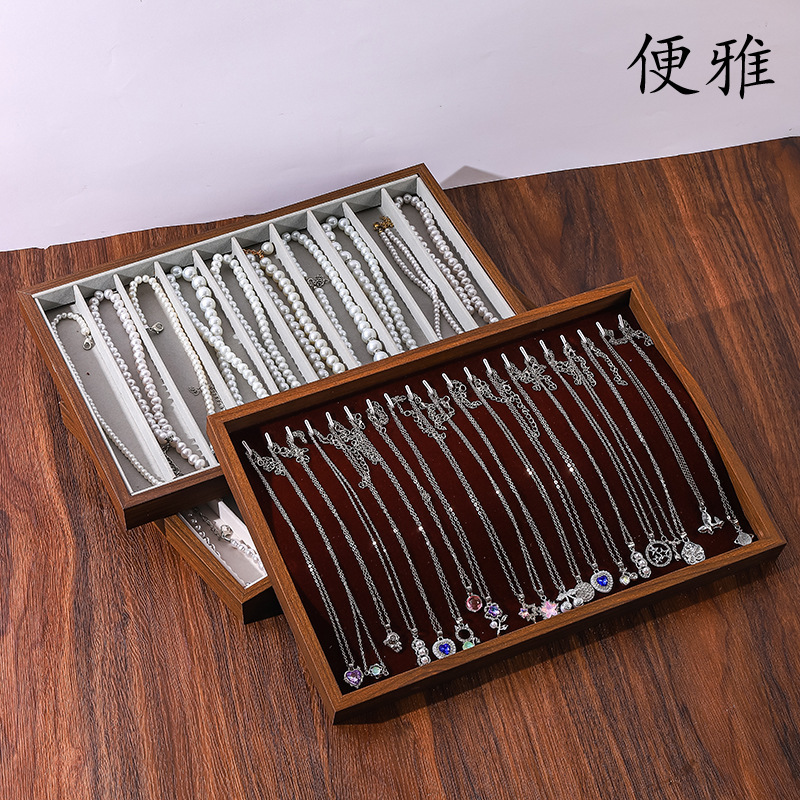 in stock Black Walnut Color Necklace Jewelry Plate Pearl Necklace Storage Plate Collarbone Chain Necklace Jewelry Display Plate