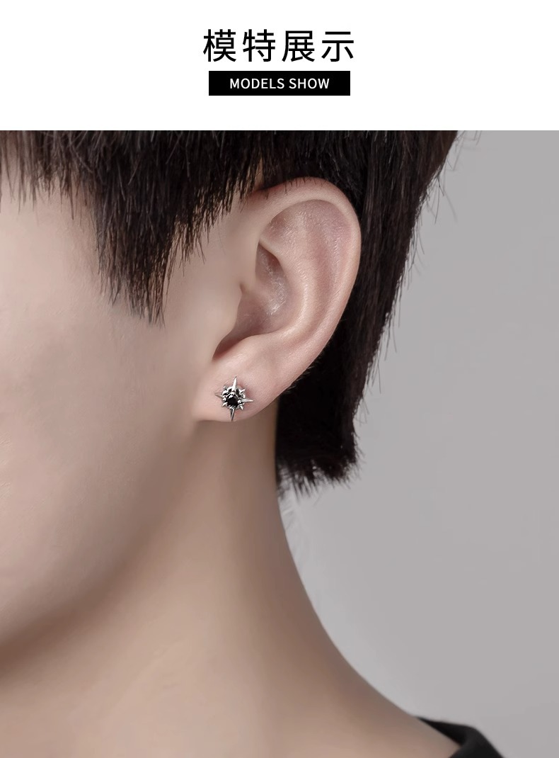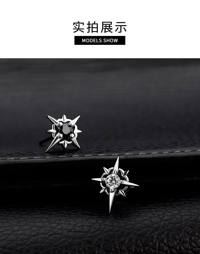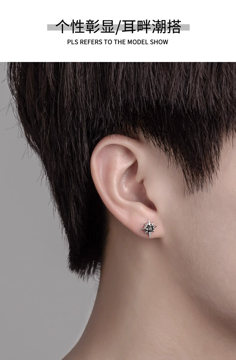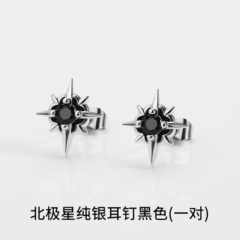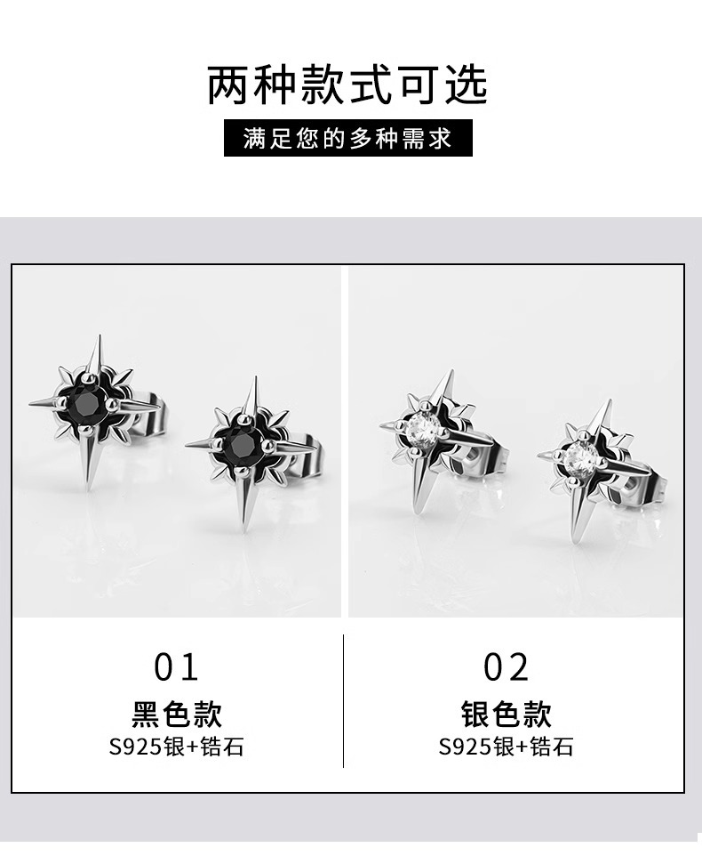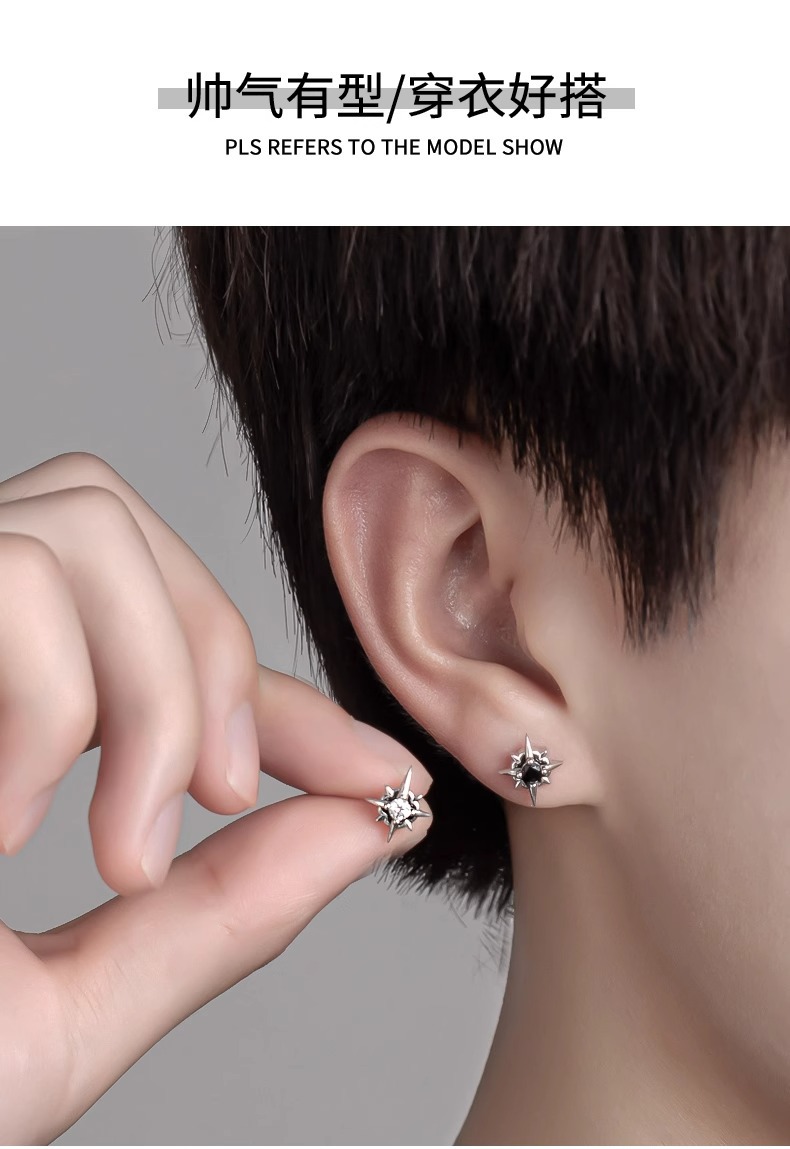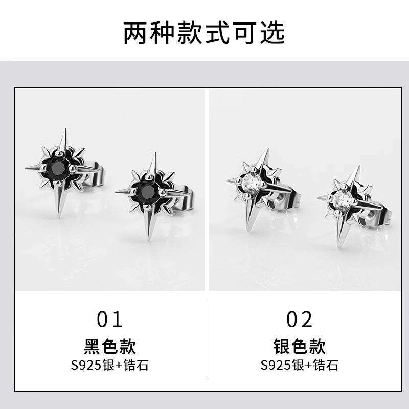 925 Silver Needle Polaris Earrings for Men High-end Simple Cold Style Fashionable Black and White Zircon Star Earrings for Women
