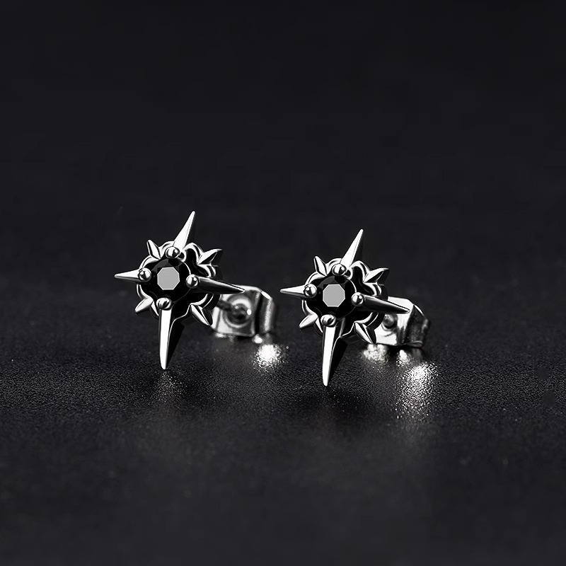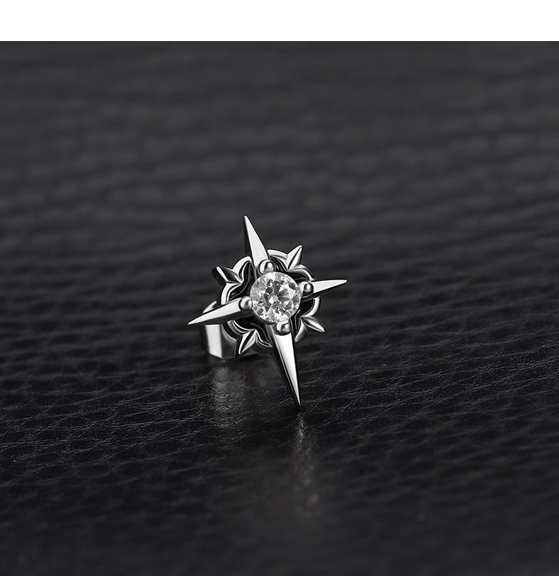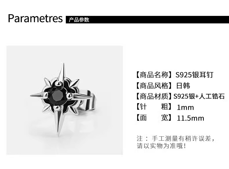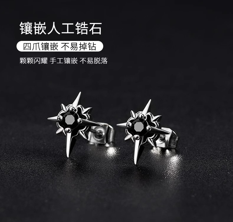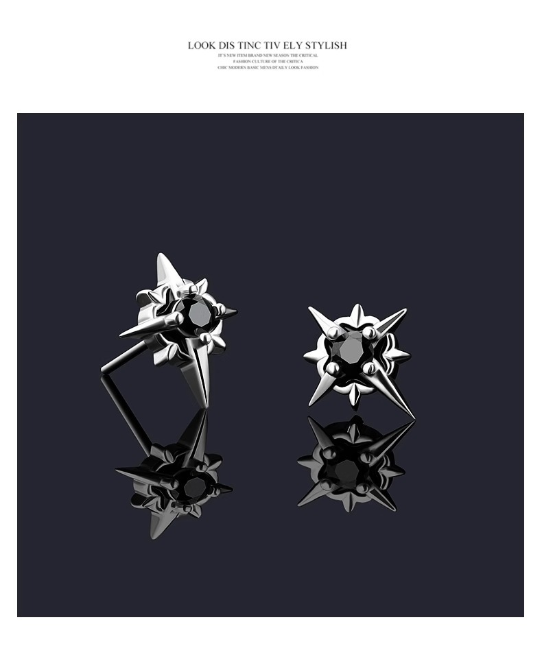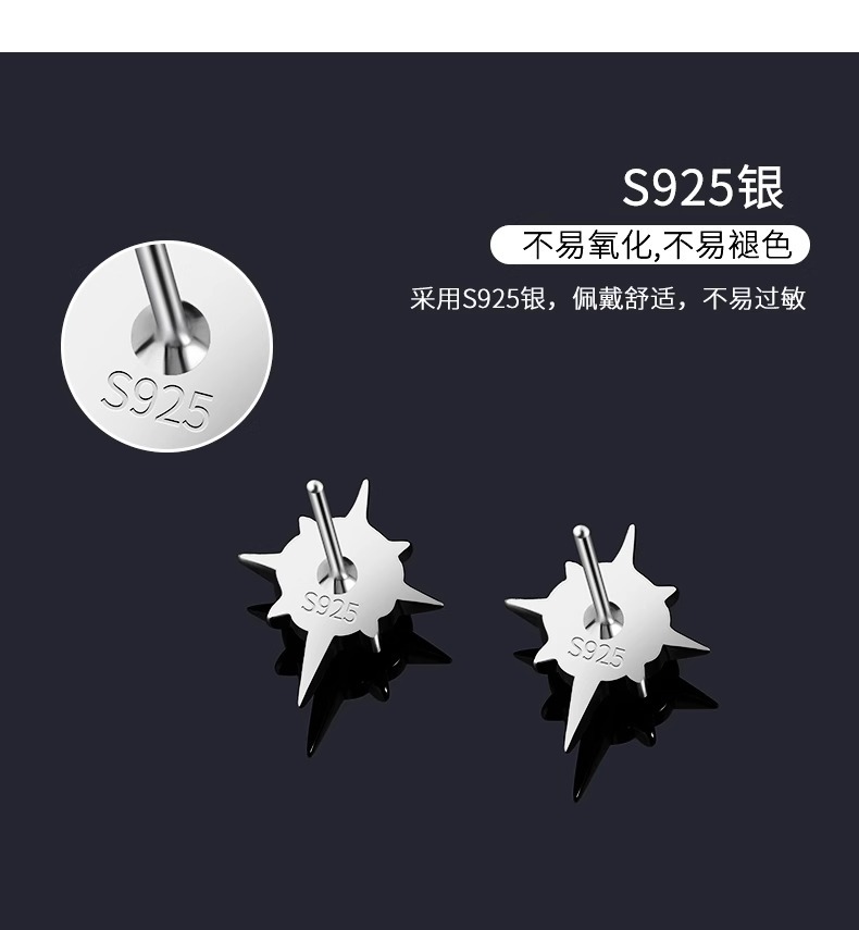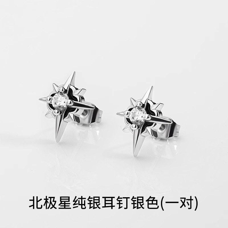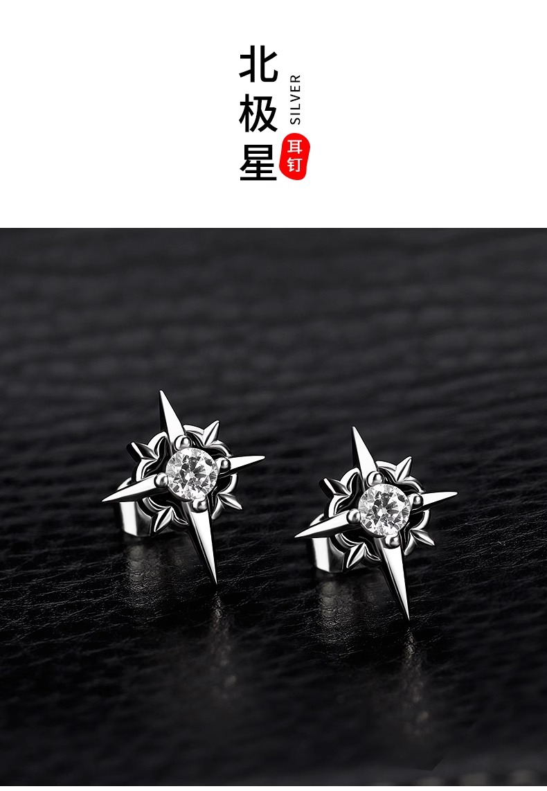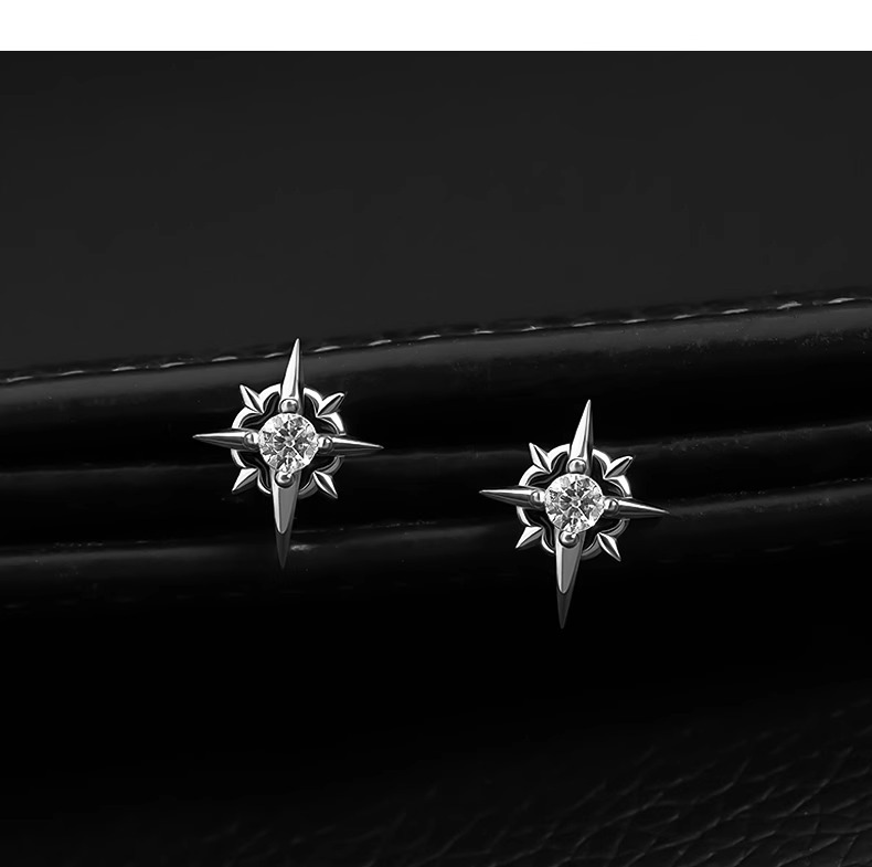 925 Silver Needle Polaris Earrings for Men High-end Simple Cold Style Fashionable Black and White Zircon Star Earrings for Women