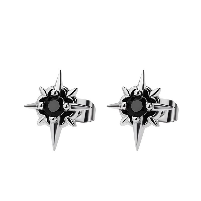 Color: Sterling silver needle polaris stud earrings - silver & black