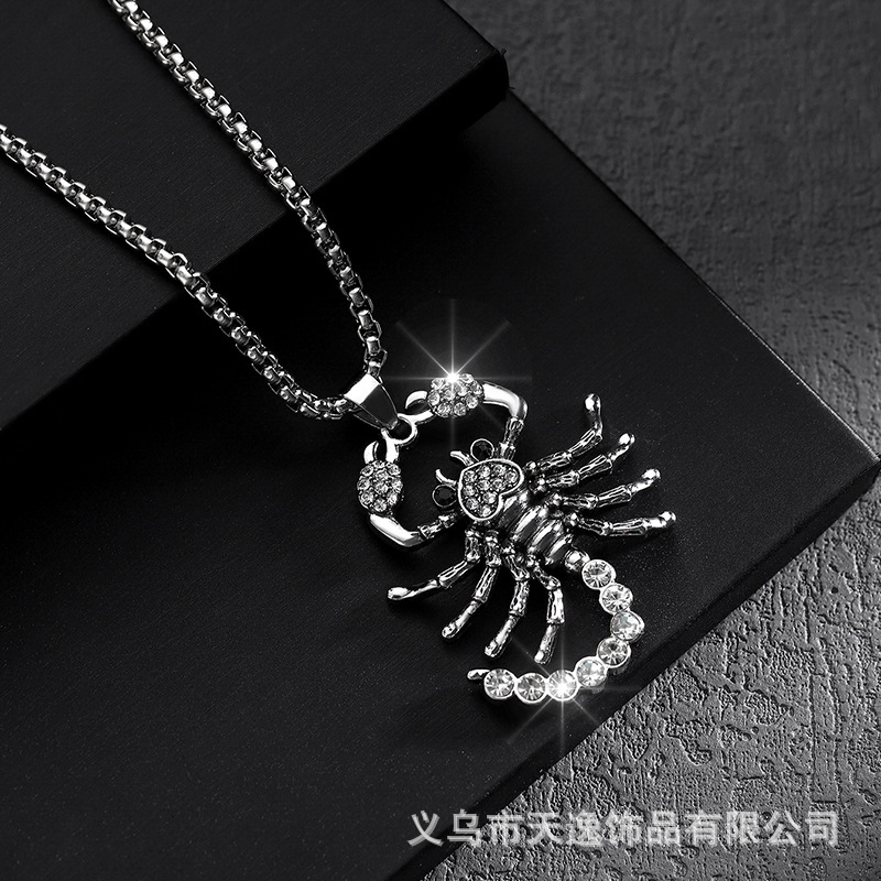 Hip Hop Nightclub Street Dance with Rhinestone Scorpion Pendant Personalized Design European and American Men's Necklace Jewelry in stock Straight Hair