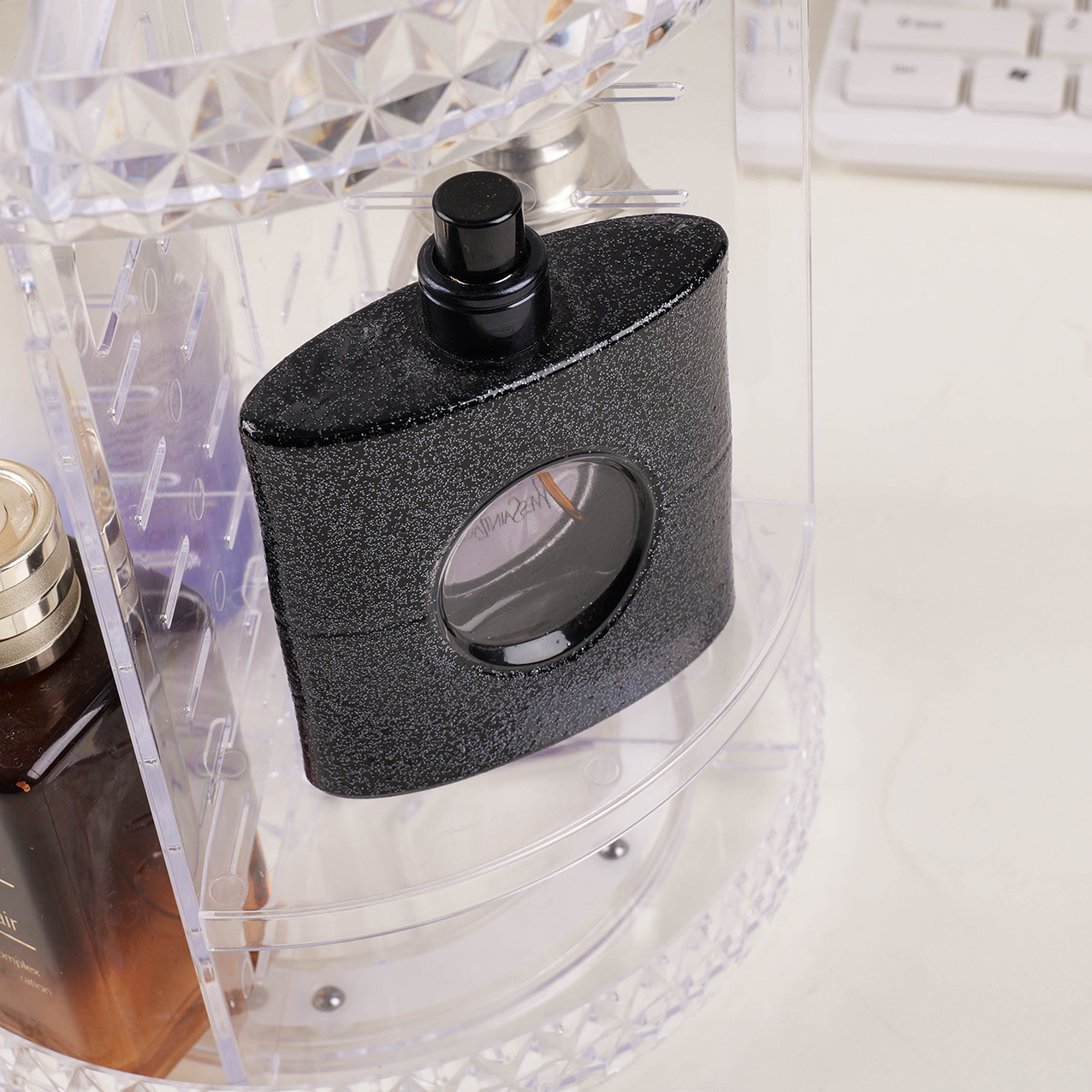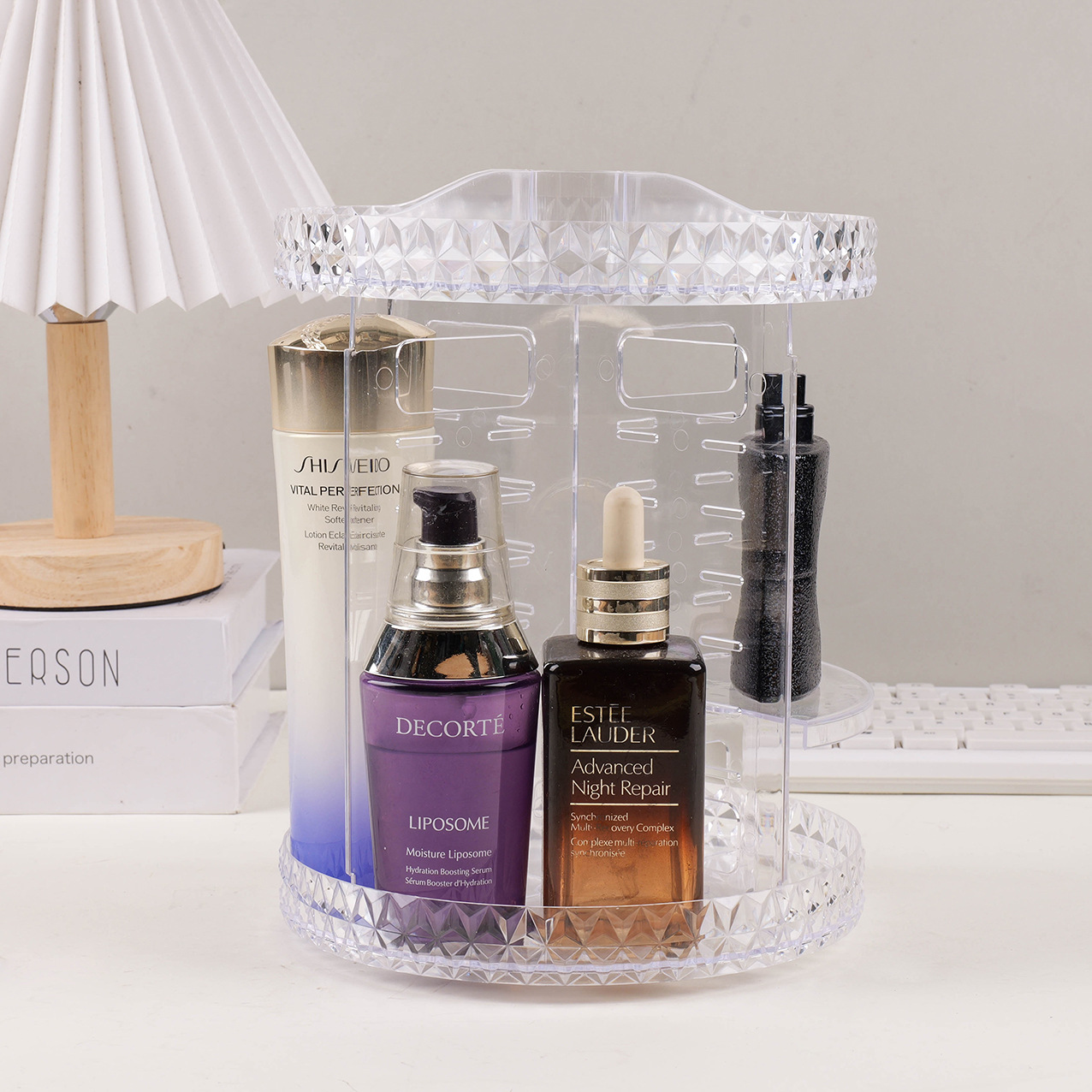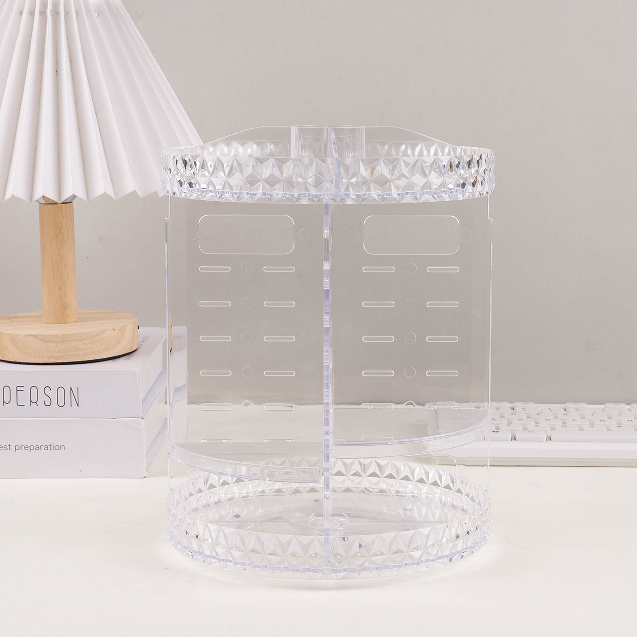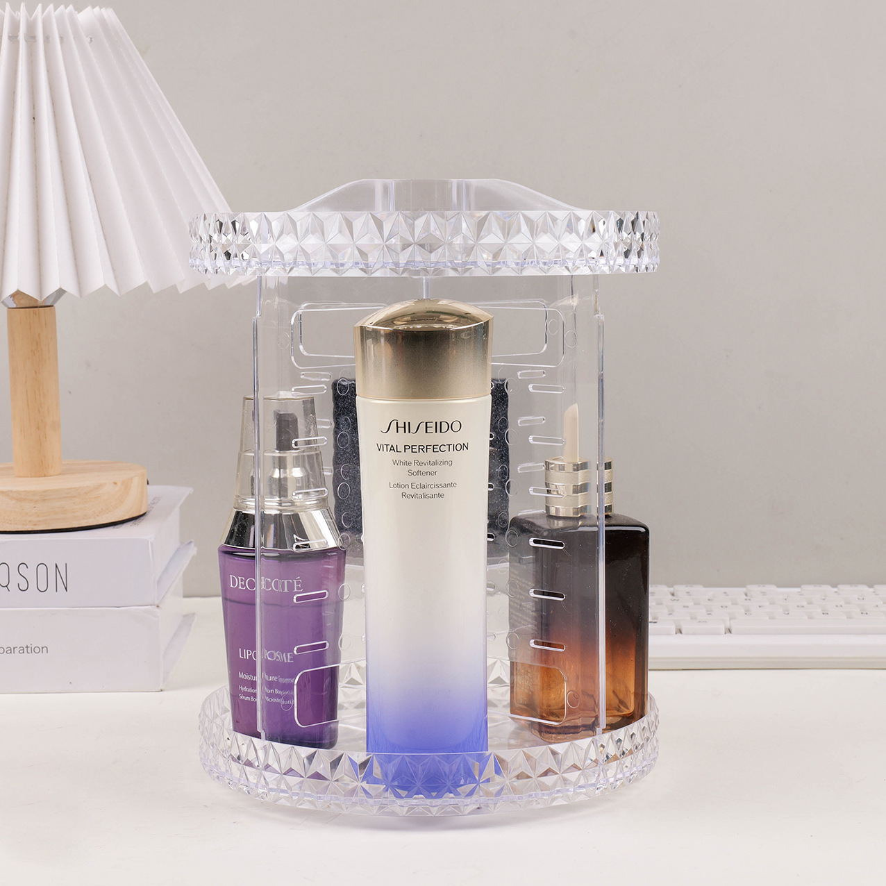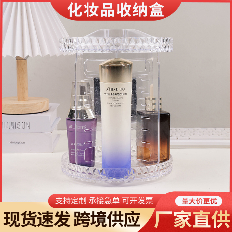 Acrylic Storage Box Home Dressing Table Desktop Compartment Storage Transparent Rotating Diamond Cosmetics Storage Rack