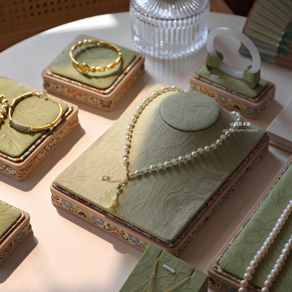 New Chinese Jewelry Fabric Display Rack Tray for Jewelry and Jade Gold Bracelet Photo Props