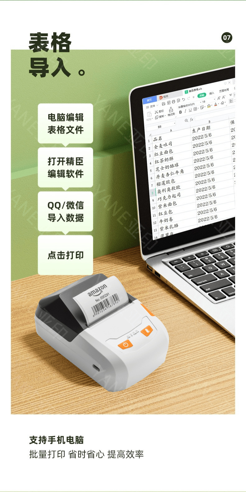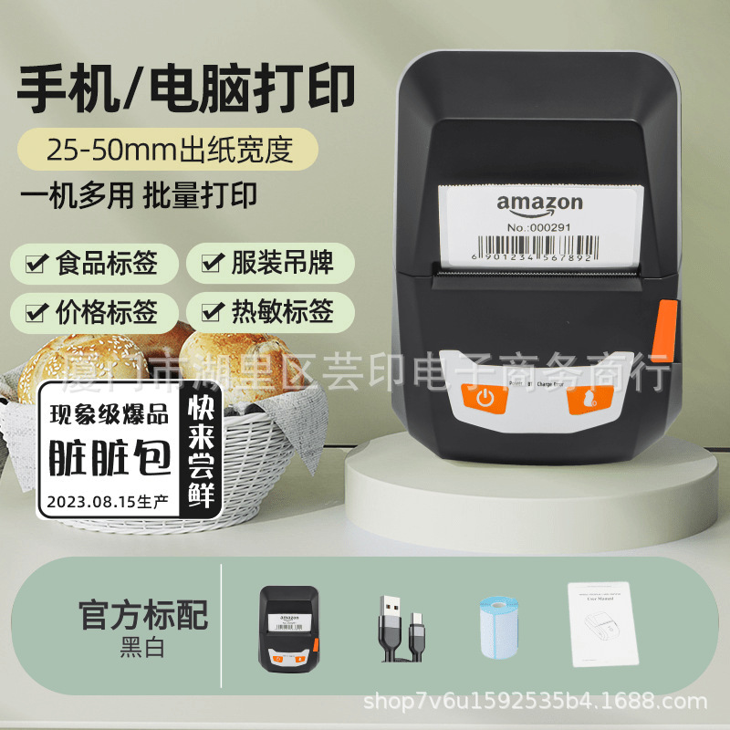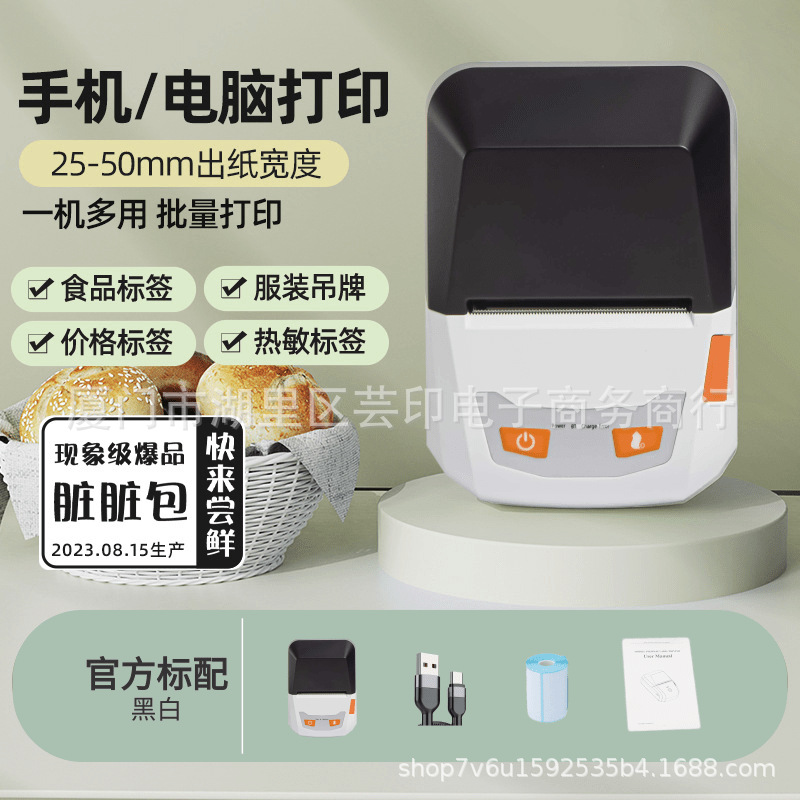 Self-Adhesive Handheld Supermarket Clothing Jewelry Tags Food Production Date Pricing Barcode Bluetooth Printer