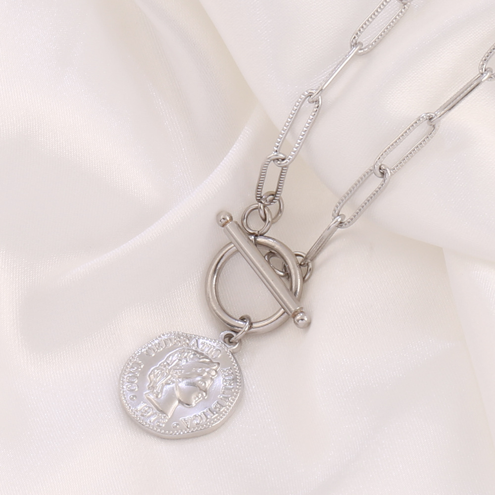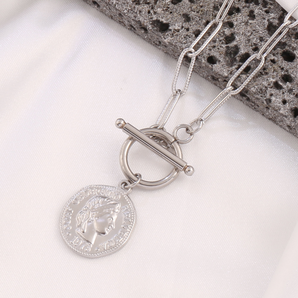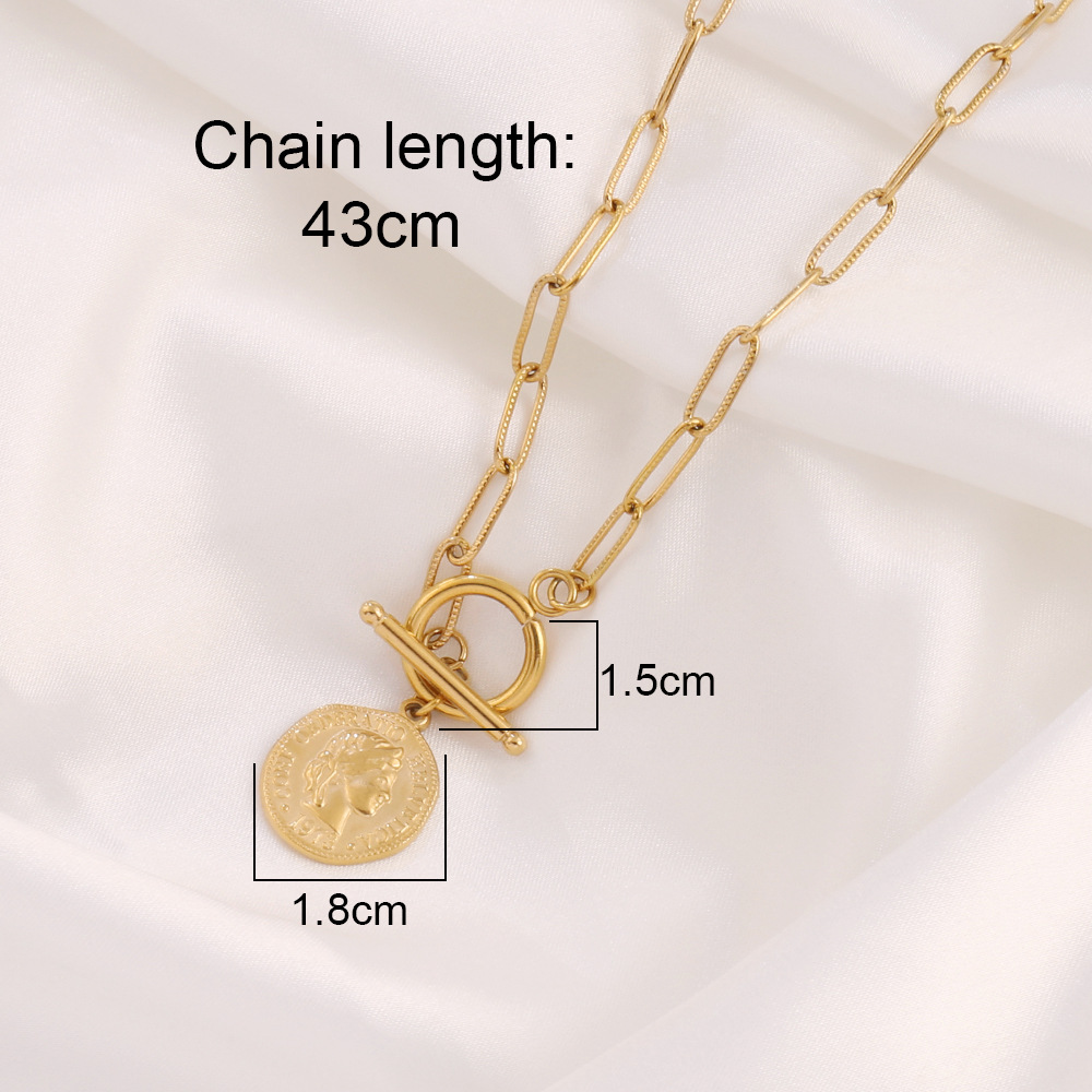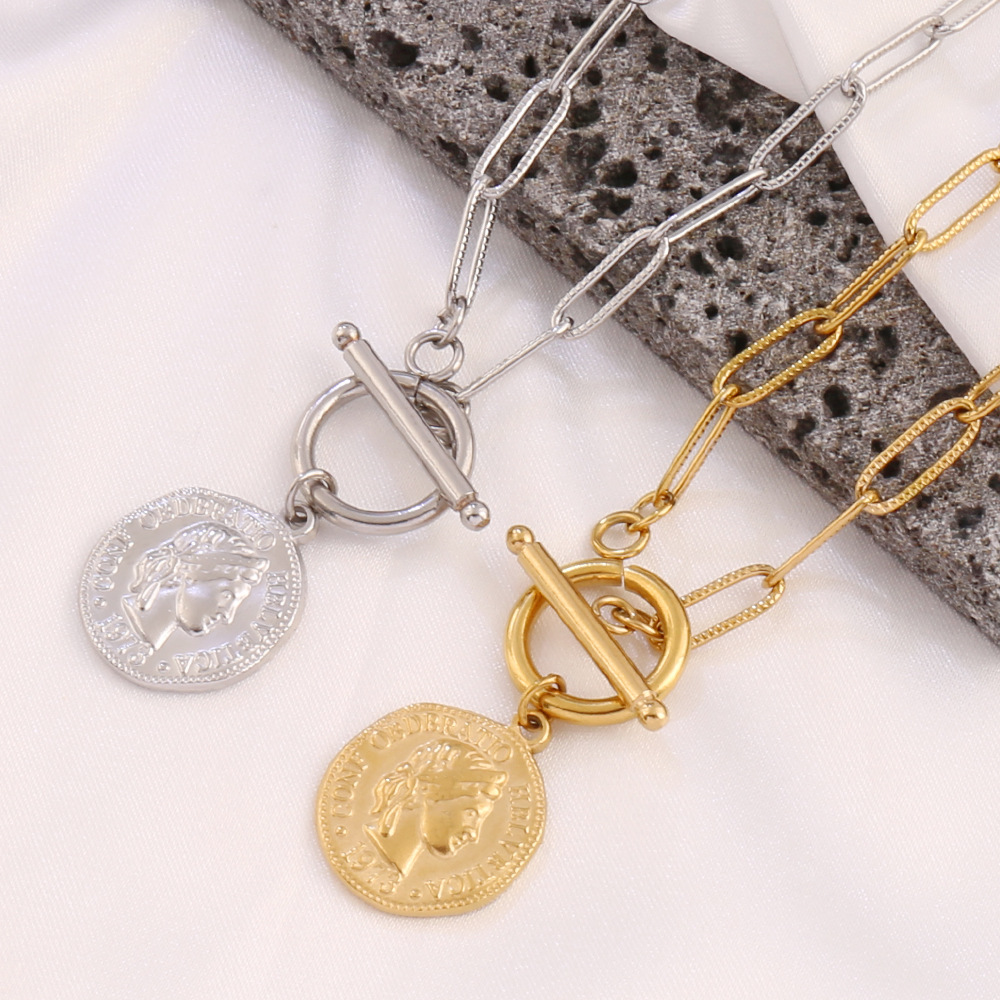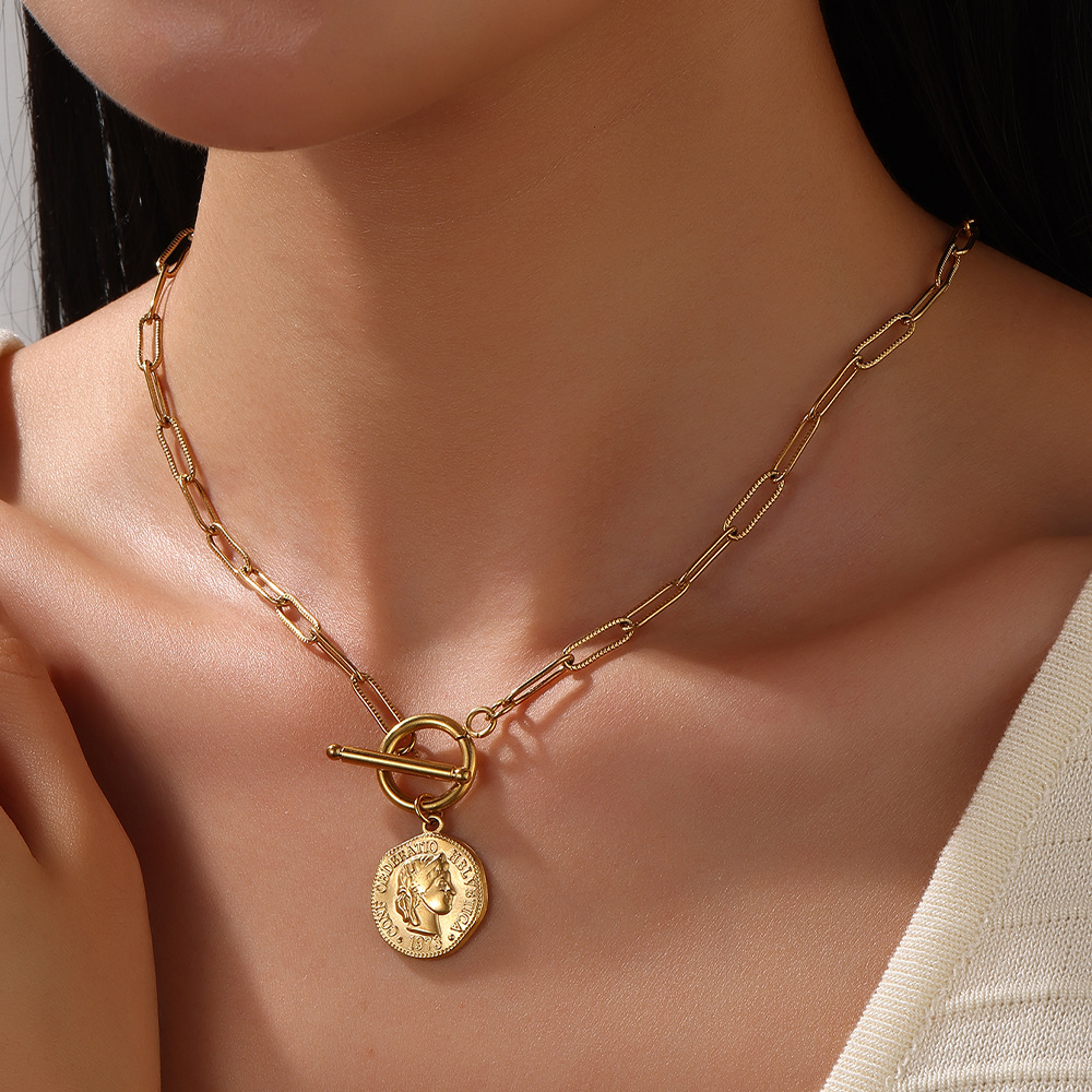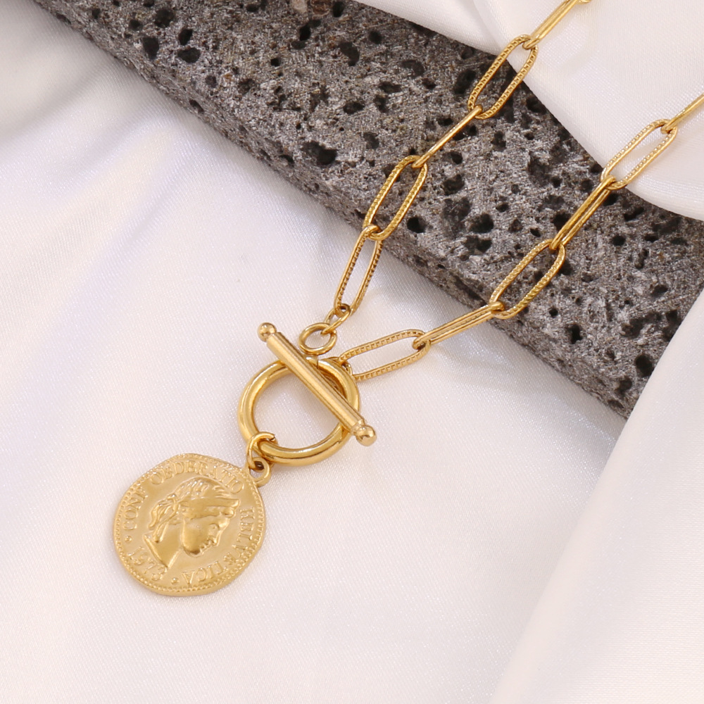 European and American Fashion Retro Figure Avatar Coin Pendant Necklace Design Sense 18K Gold Plated Stainless Steel Ot Buckle Necklace