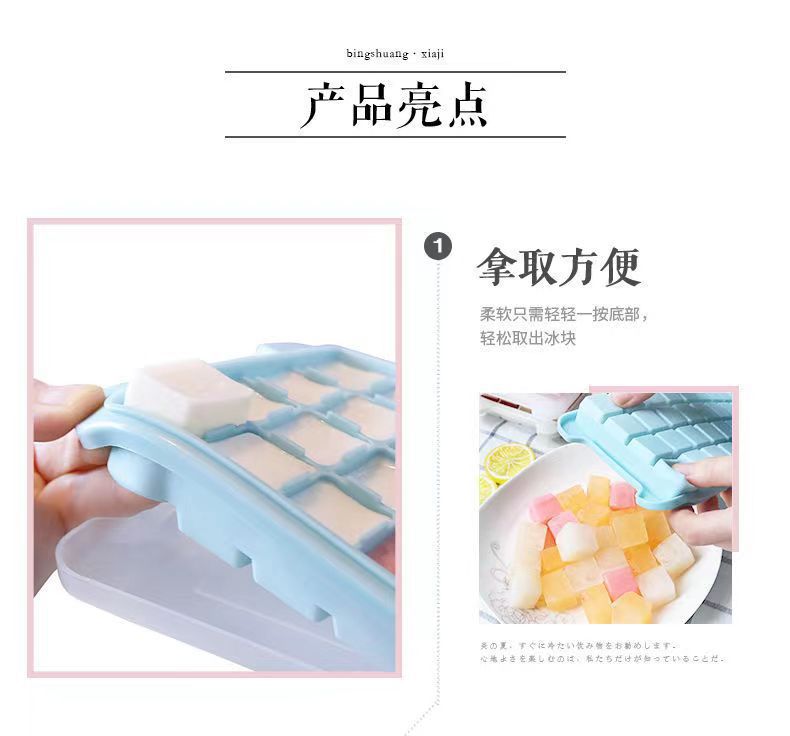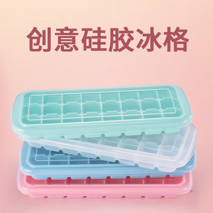 Silicone Ice Tray Ice Cube Mold Homemade Ice Cube Box with Lid Ice Tray Kitchen Creative Household Commercial Ice Storage Box